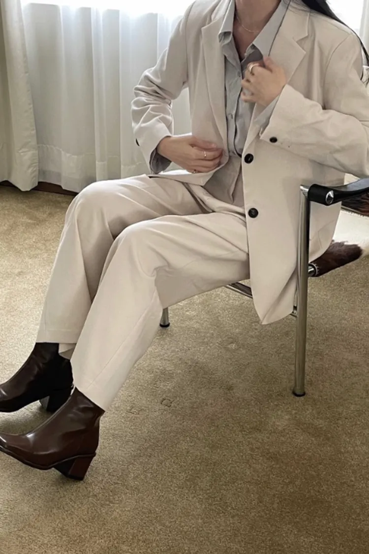 最完整的西外套裝組合! 西褲單穿也超級好看~~搭毛衣、背心類都可以 趁優惠價格大家趕緊收下!! S size:腰寬33/臀寬46/褲襠長35/大腿寬30/全長98/褲腳寬25 M size:腰寬36/臀寬50/褲襠長35/大腿寬30/全長98/褲腳寬26