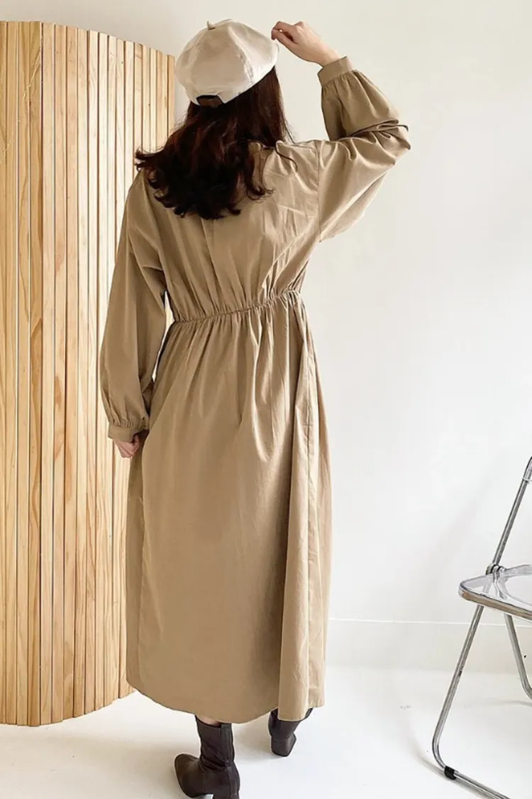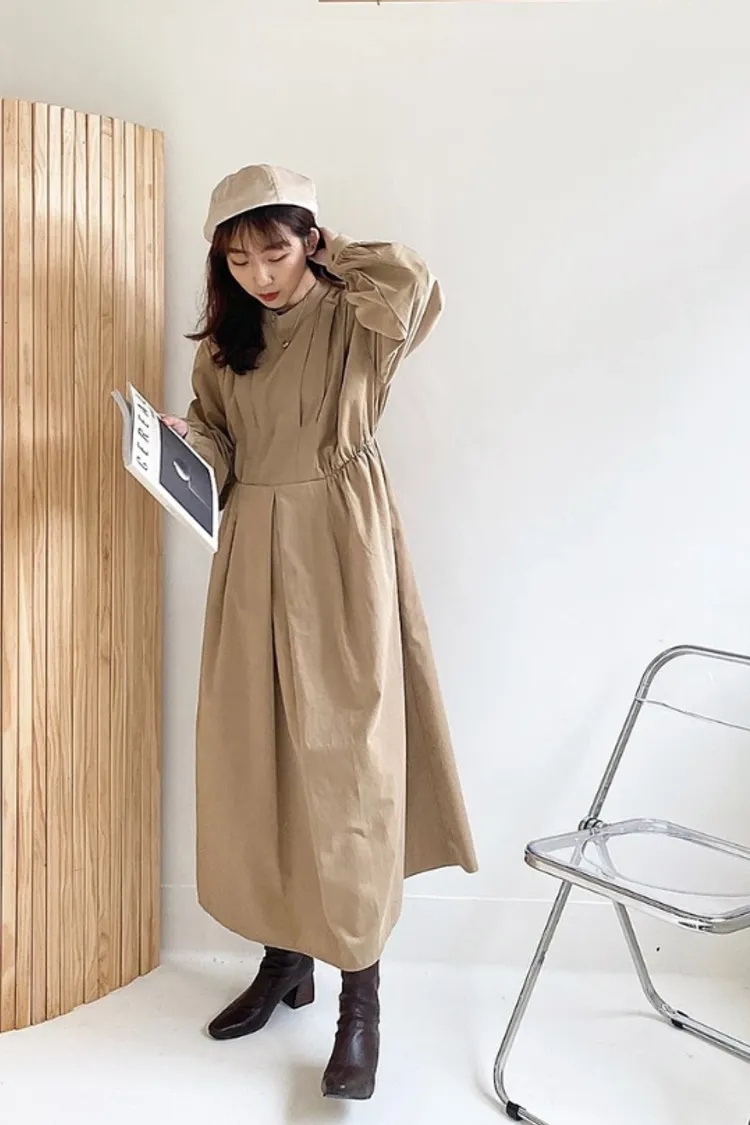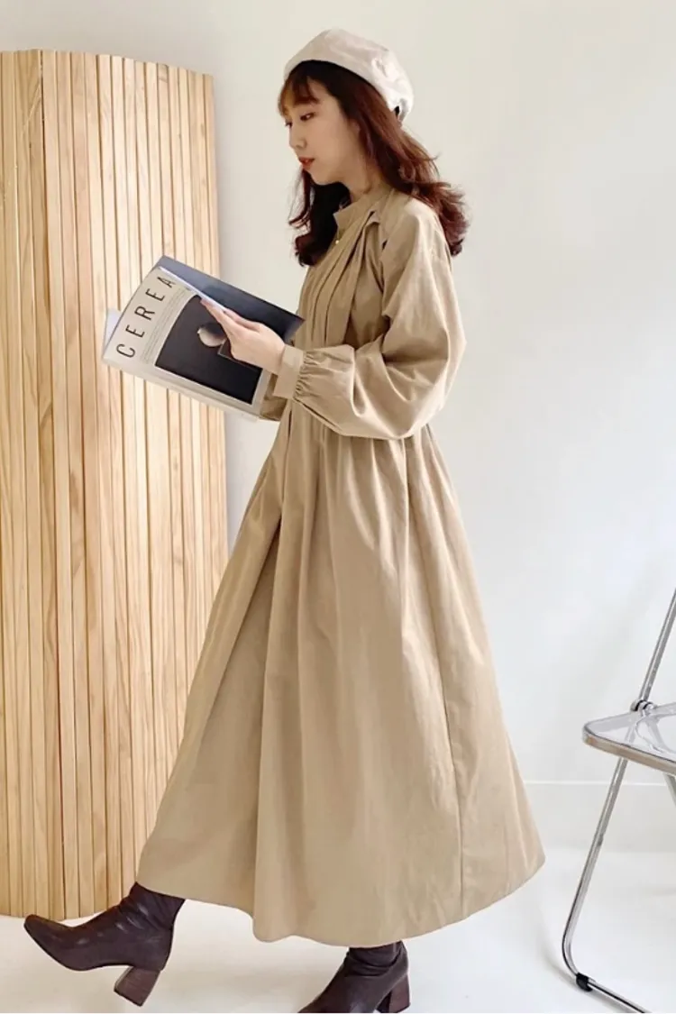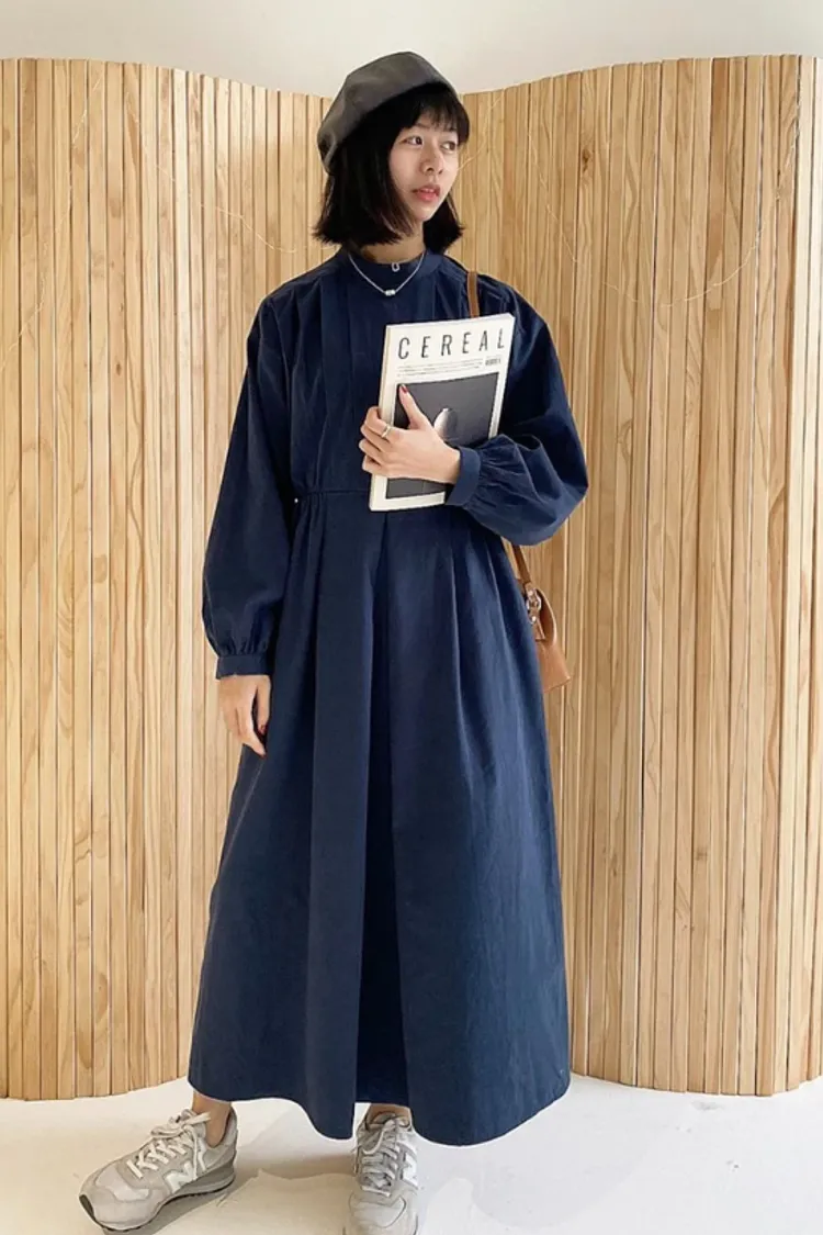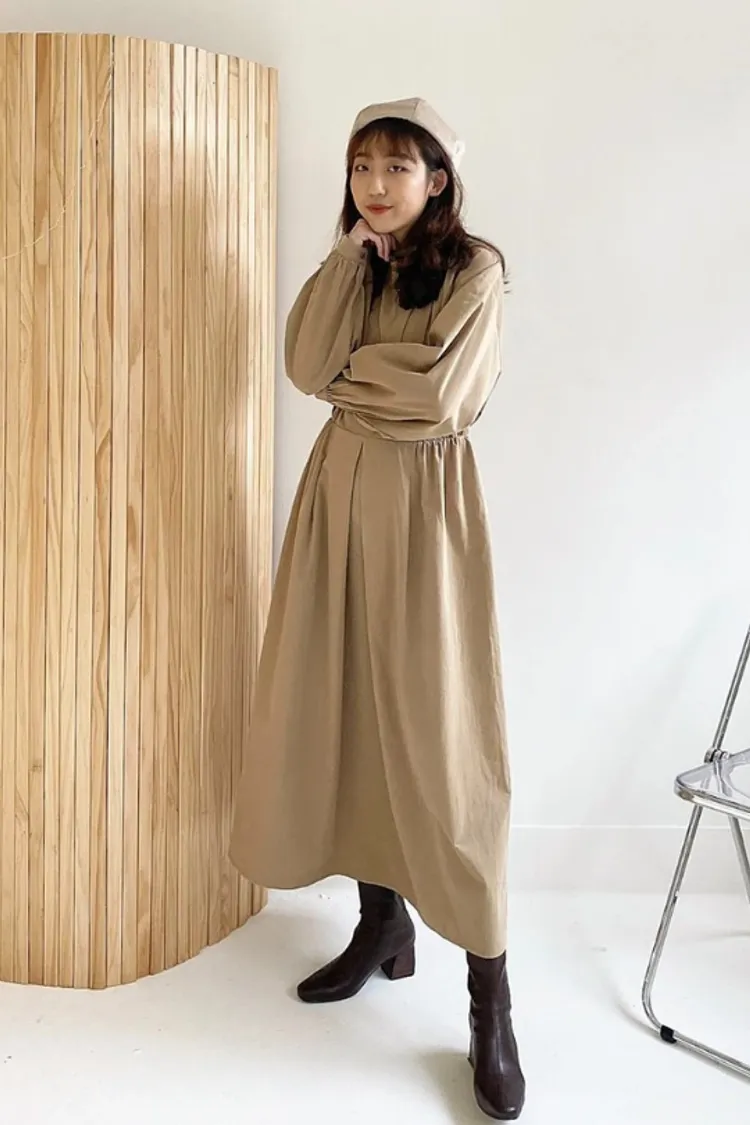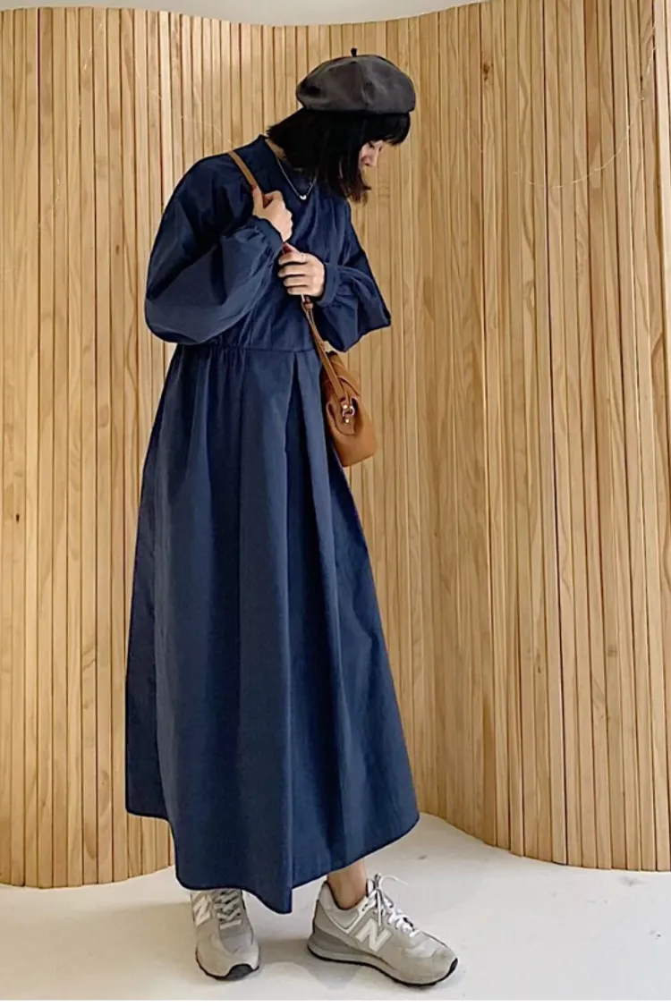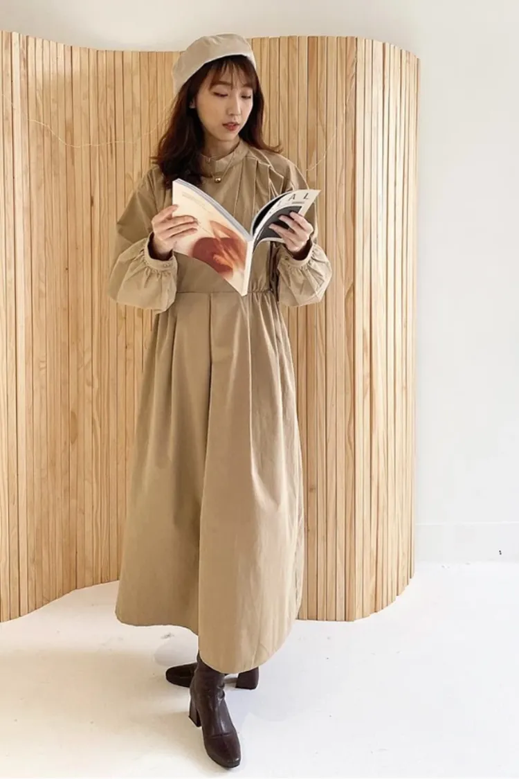 氣質滿分的長洋裝!! 布料表面是稍微絨面的,摸起來非常滑順 長版的樣式長度剛剛好, 版型穿著起來很舒適,有小小厚度和挺度,超喜歡!!! Size:領口寬13/落肩肩寬52/胸寬46/腰寬36/下擺寬86/前衣長130/後衣長130/袖長53/袖口寬13