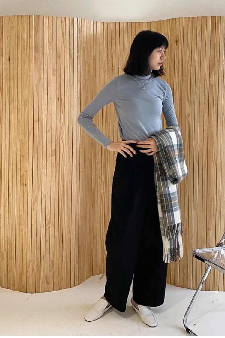 版型也是特殊的錐形,搭配長版或是把衣服扎進去都好好看
