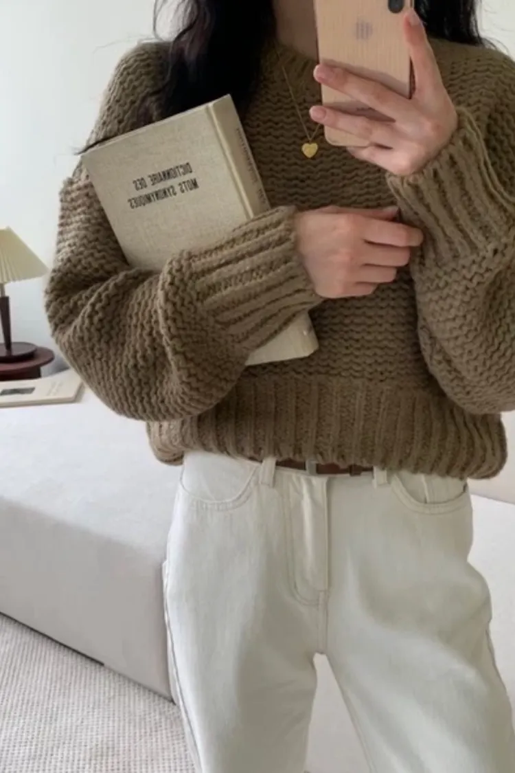 厚實的針織感 讓整件毛衣都澎澎的 好像泰迪熊🧸🤎