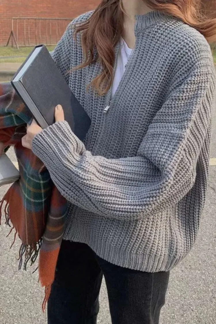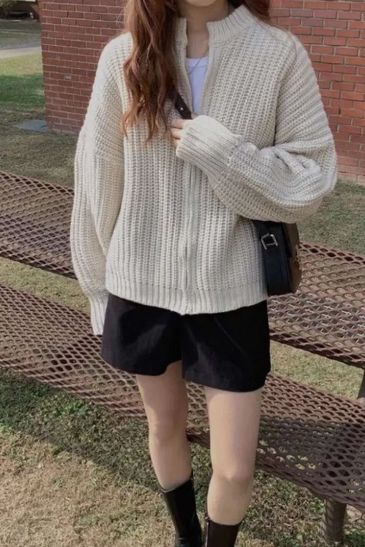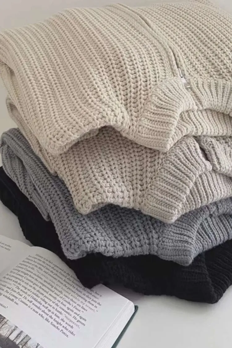 只剩下黑色囉!!一直想收一款慵懶又舒服的針織外衣~~ 這款完美的實現了! 中間有拉鍊的款式更有隨性感 可以單穿也可以當外套 去超市隨手抓這件就很美很好看🌷 超彈性針織布料 Size:領口寬17/肩寬70/胸寬62/腰寬60/下擺寬56/全長61/袖長75/袖寬11