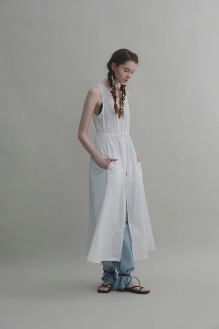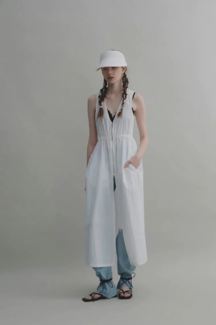 充滿濃濃日系加上法式感的設計師單品!! 寬肩帶造型 搭配長版版型遮肉又顯瘦 前面是做拉鍊設計 可以整片拉起當成洋裝穿著 也可以自由調節開的長度 當成罩衫內搭長褲✨ 材質是夏季面料輕輕柔柔 ・尺寸 Size:領口寬18/肩寬30/胸寬40/腰寬35/下擺寬92/全長124
