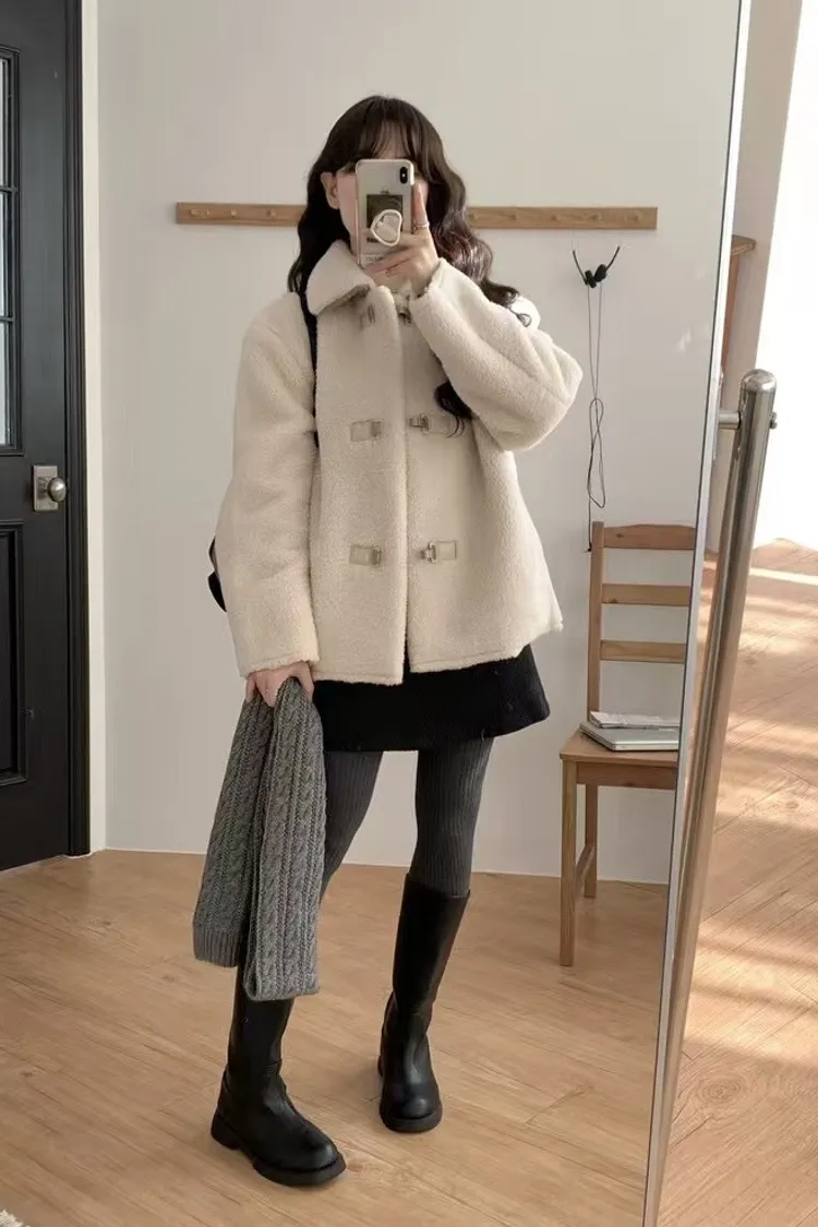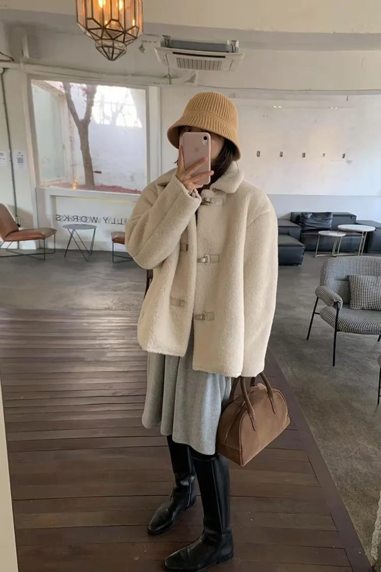 高級毛茸茸感中長版大衣外套