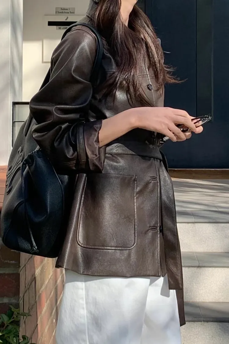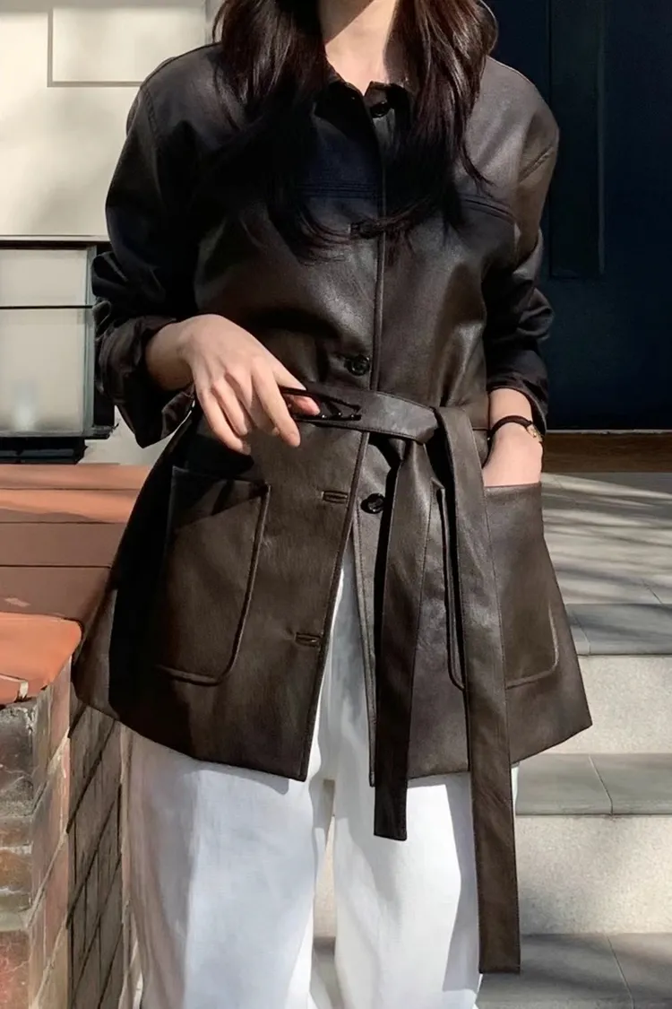 俐落的中長版版型 不退流行又很好駕馭不挑人 附上腰帶很特殊 也更方便當成洋裝腰帶穿著.ᐟ.ᐟ