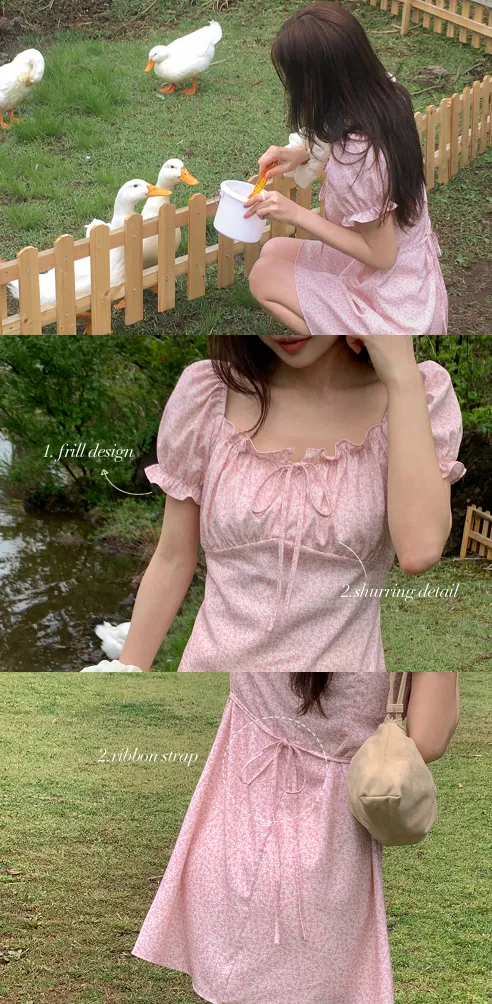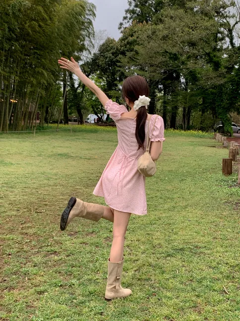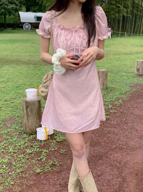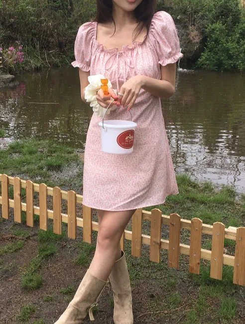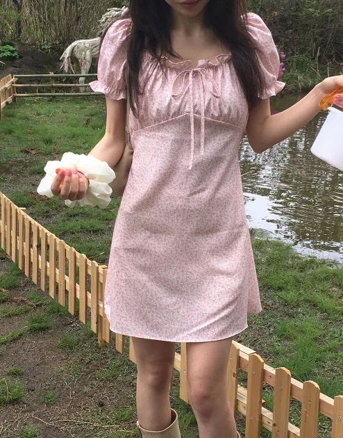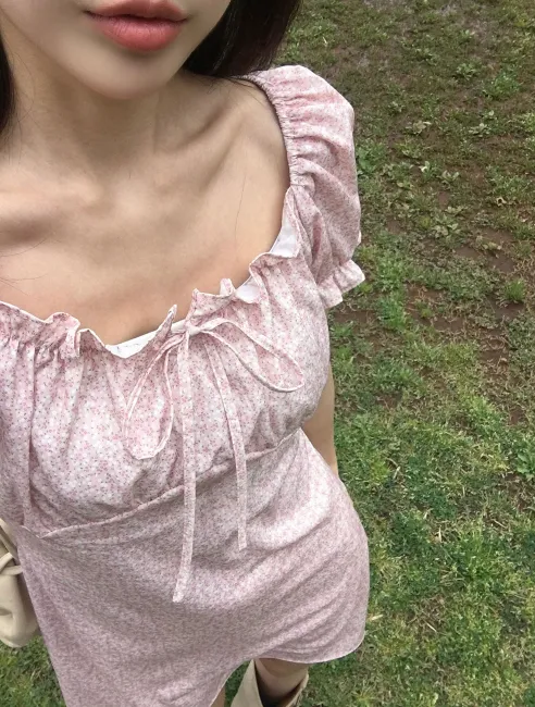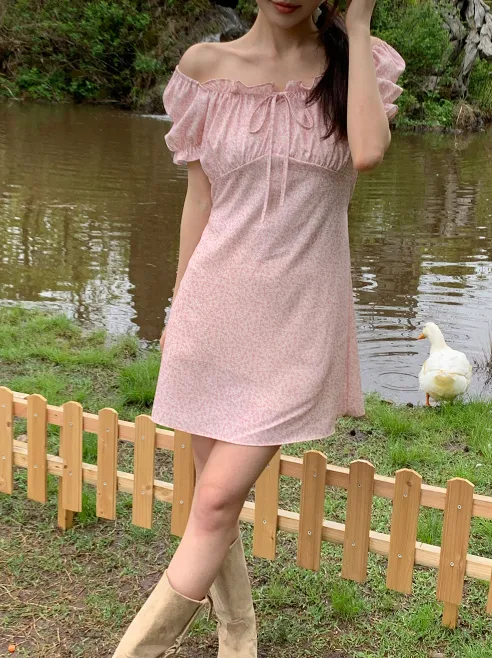 ˖ ꒰ 🇰🇷韓國品牌 ꒱ ˖ 一字領少女感碎花洋裝