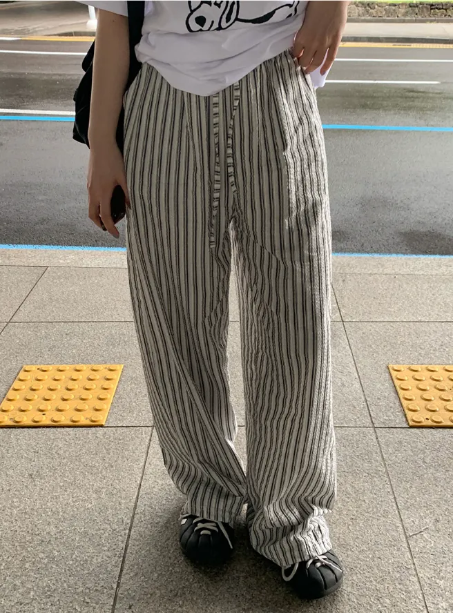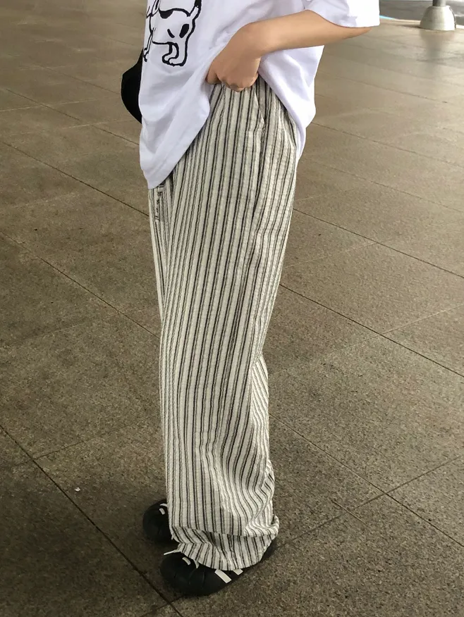 ˖ ꒰ 🇰🇷韓國品牌 ꒱ ˖ 隨性冰涼感條紋長褲