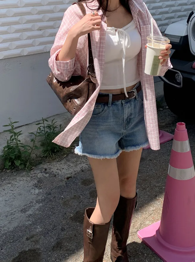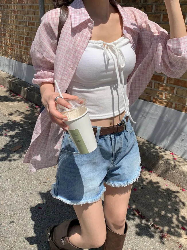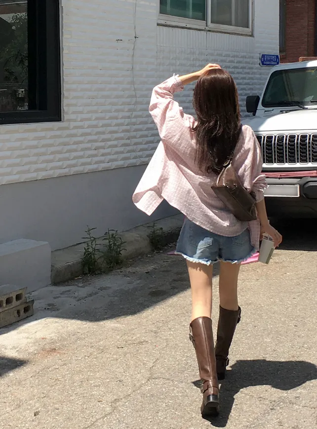 ˖ ꒰ 🇰🇷韓國品牌 ꒱ ˖ 棉質格紋夏面料襯衫