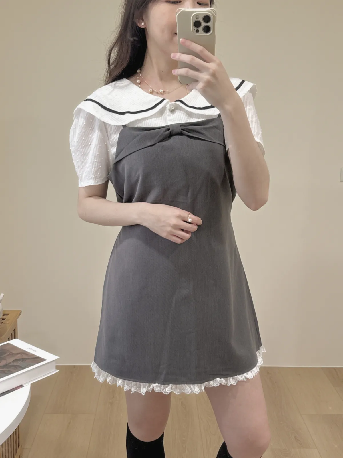 胸前做成蝴蝶結輪廓線條的優雅洋裝