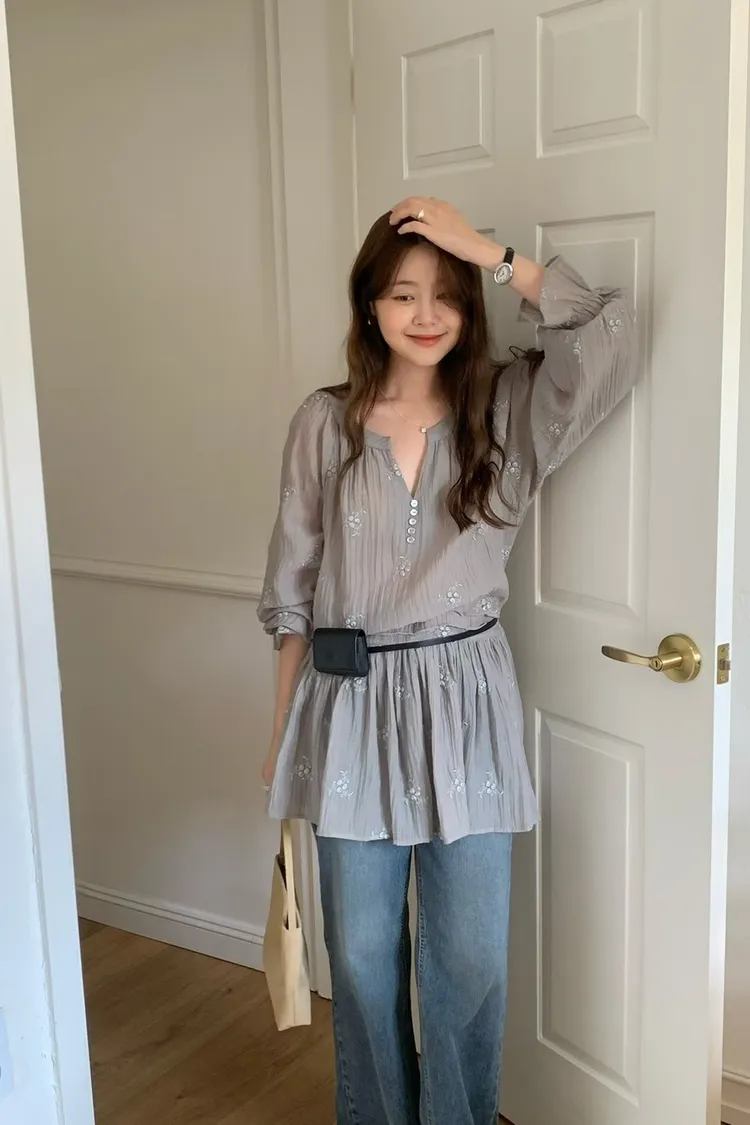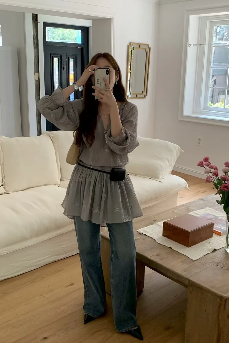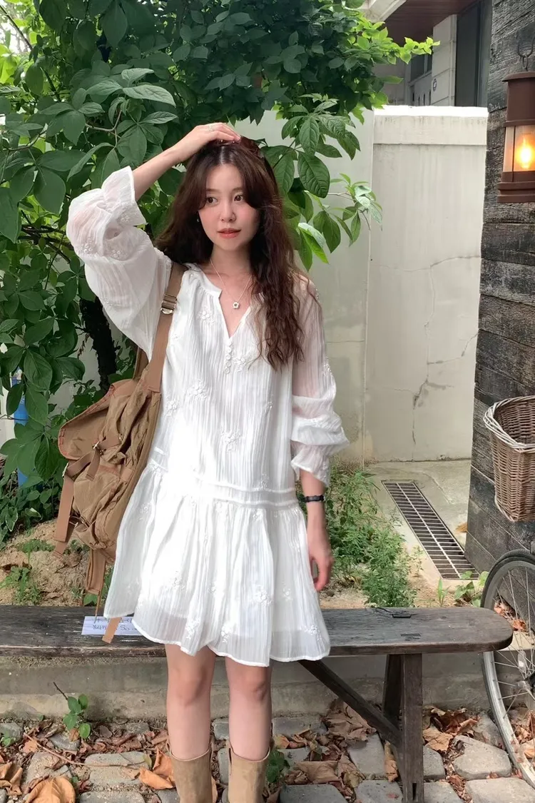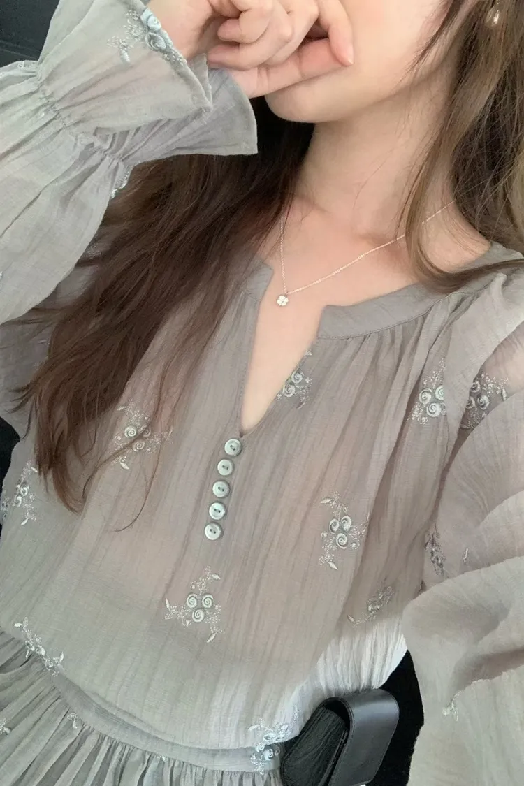細緻的刺繡搭配鬆鬆飄逸的布料 超級人氣款實至名歸✨✨