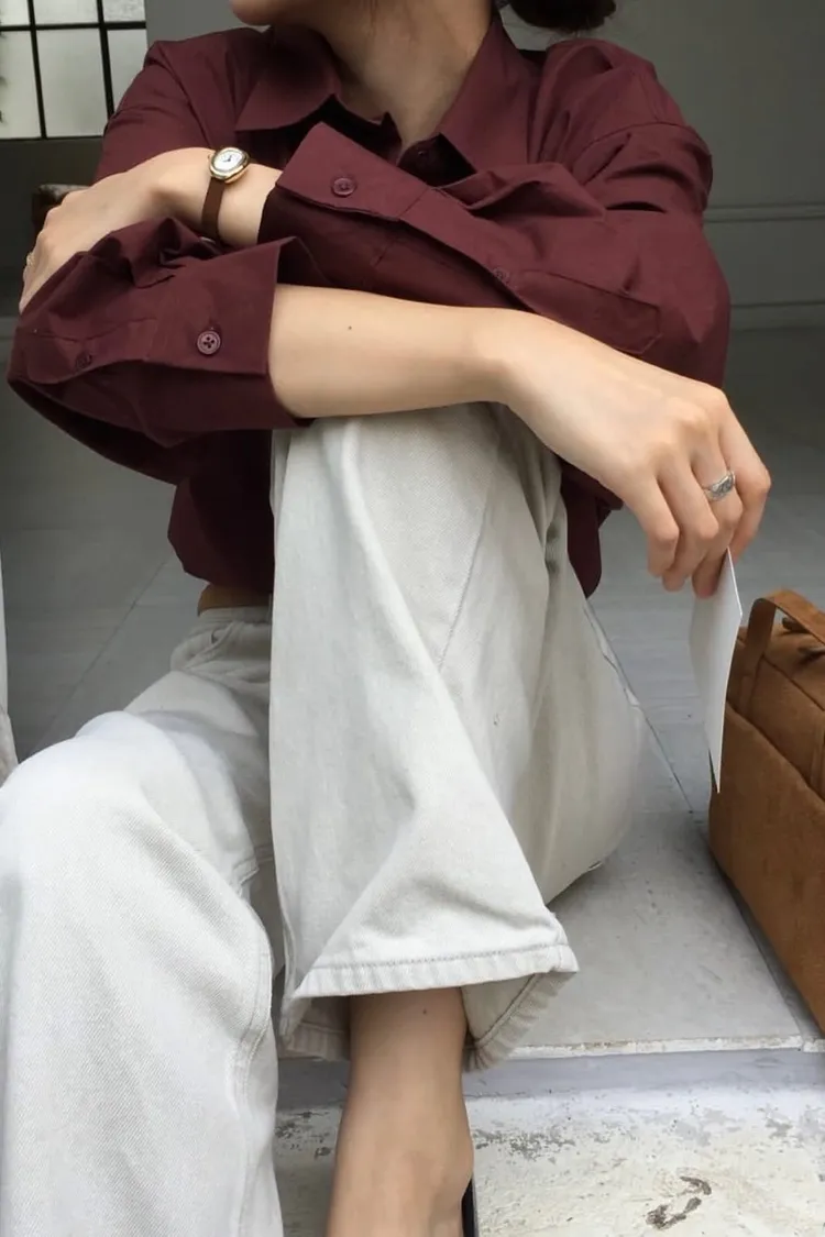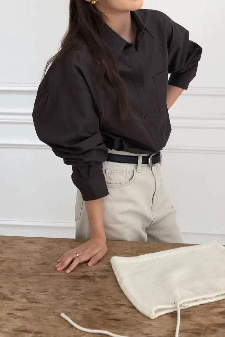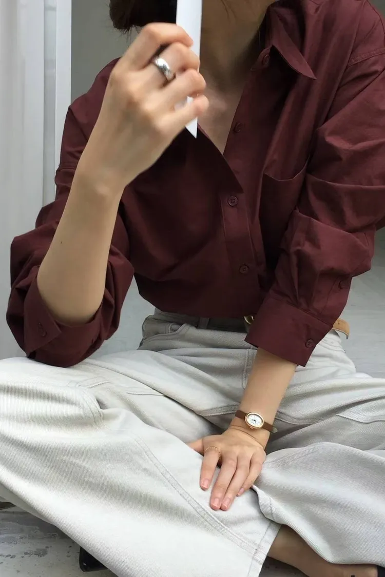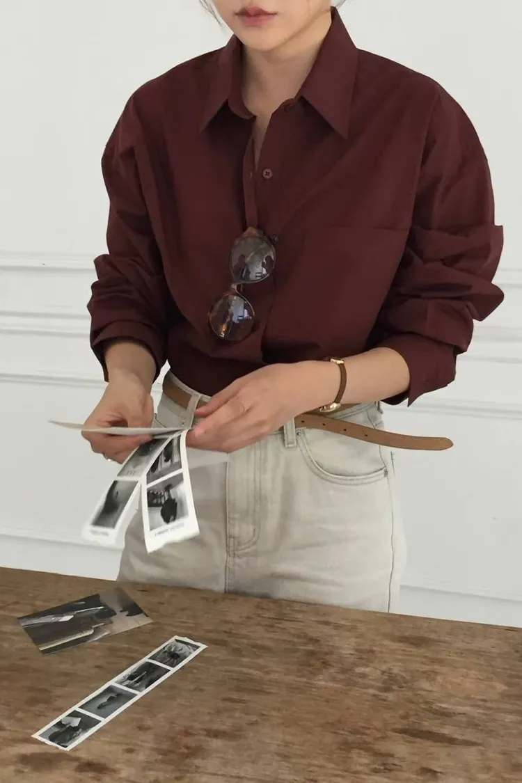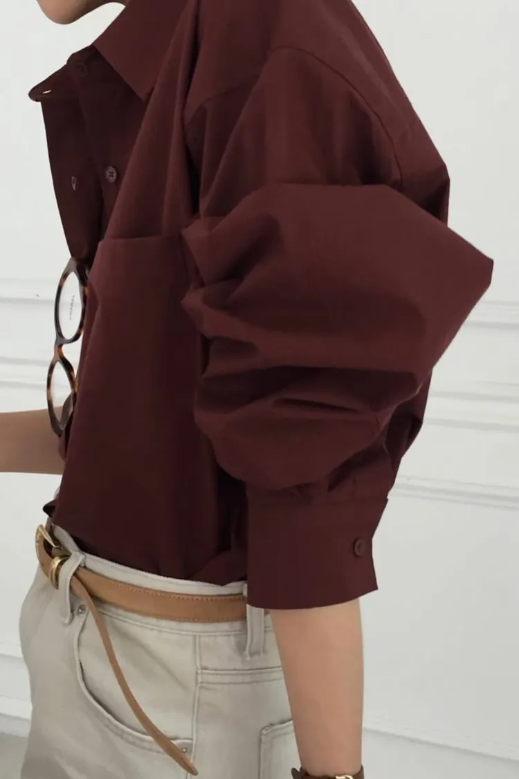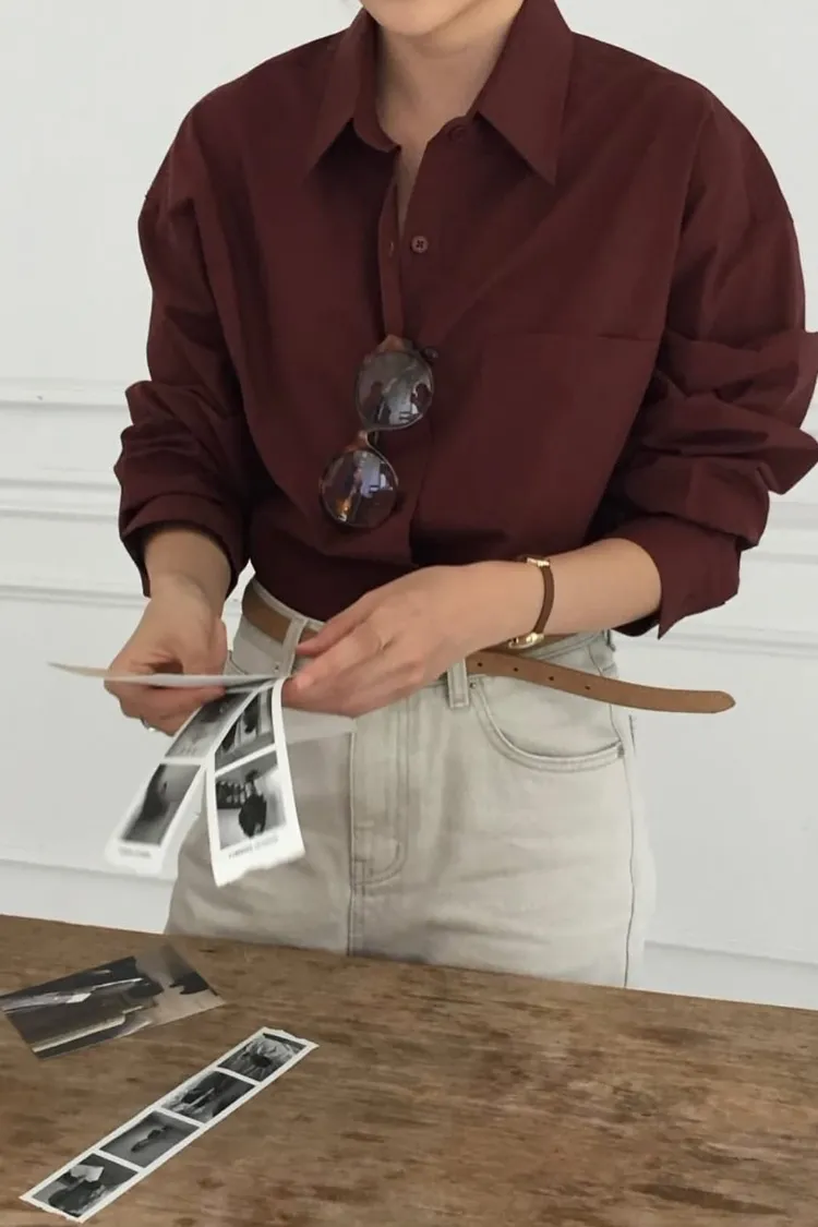 栗子色系質感寬鬆襯衫