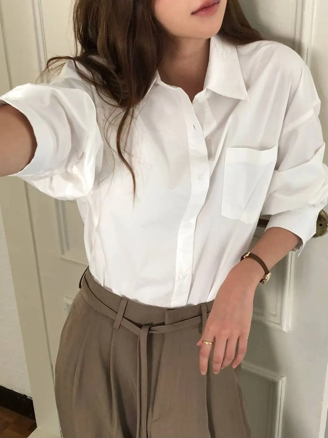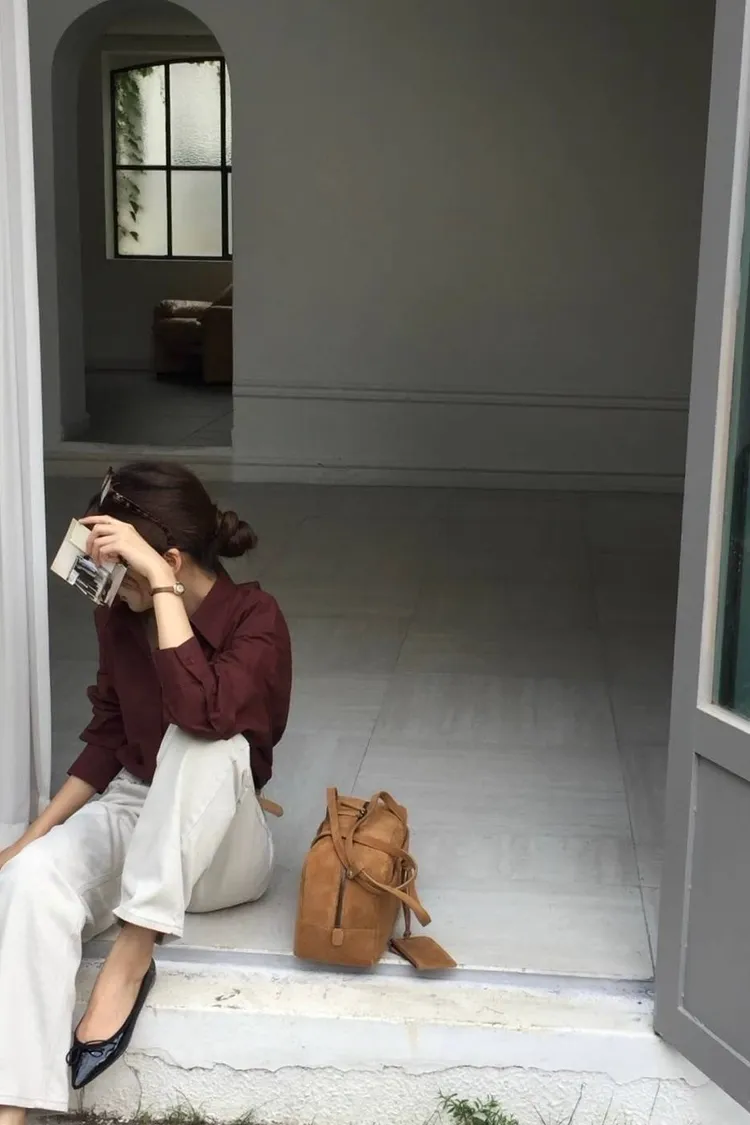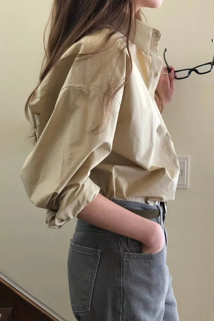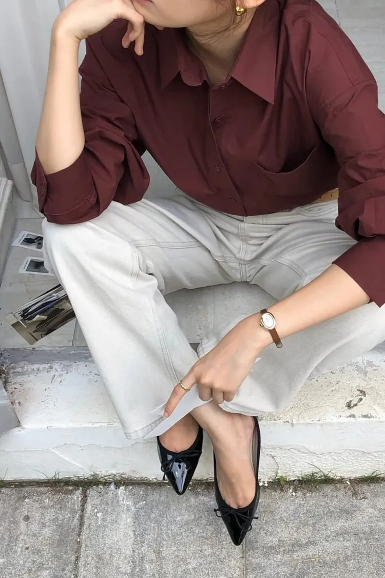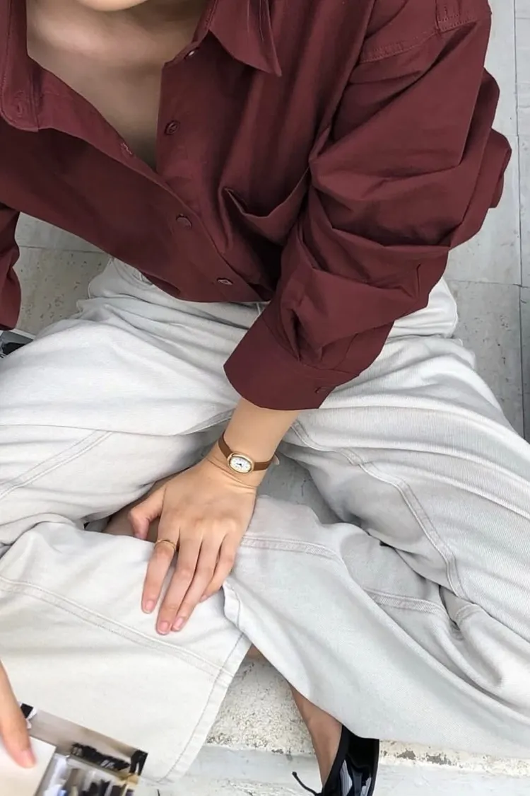 栗子色系質感寬鬆襯衫
