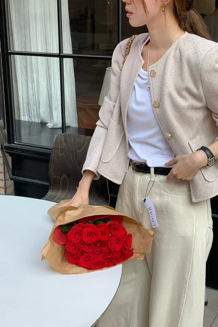 有編織紋理感 和漂亮的金釦點綴 澎澎的讓頭型更完美了🧡🧡