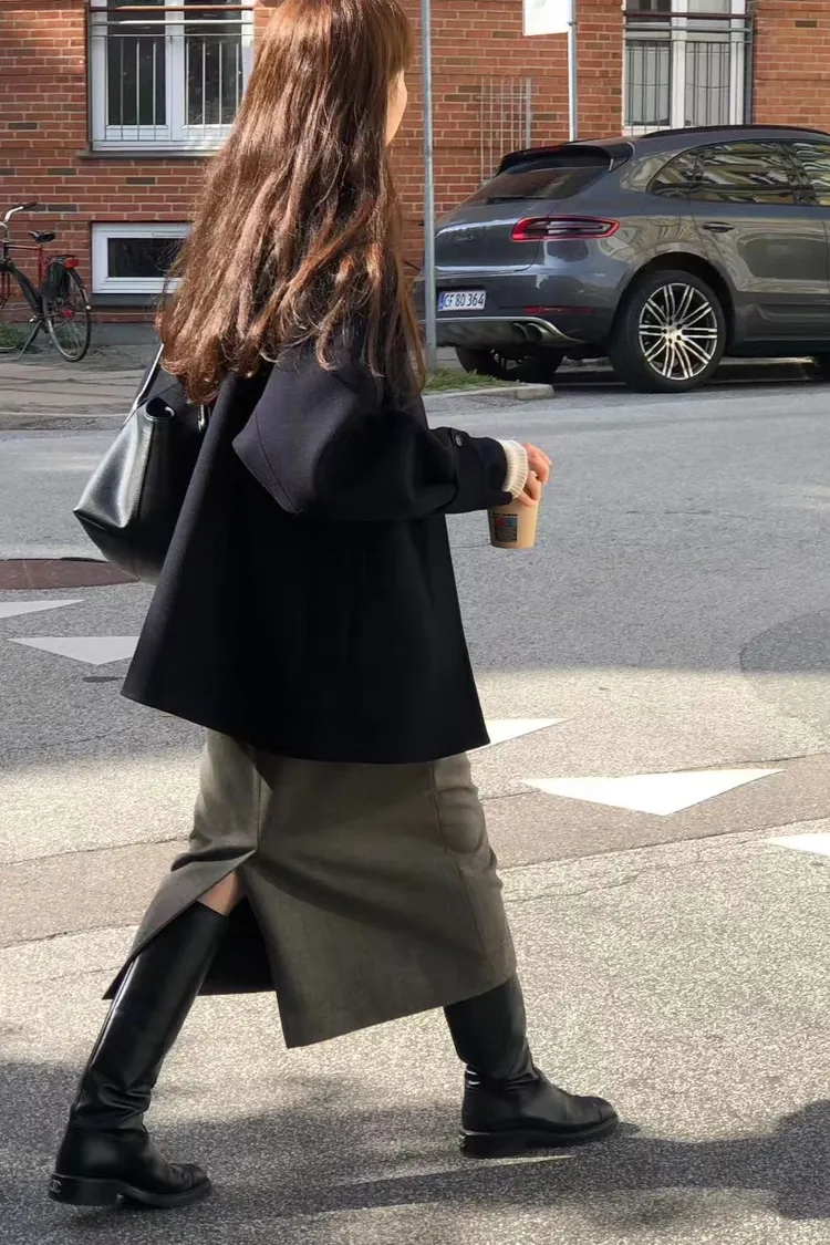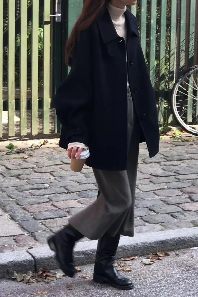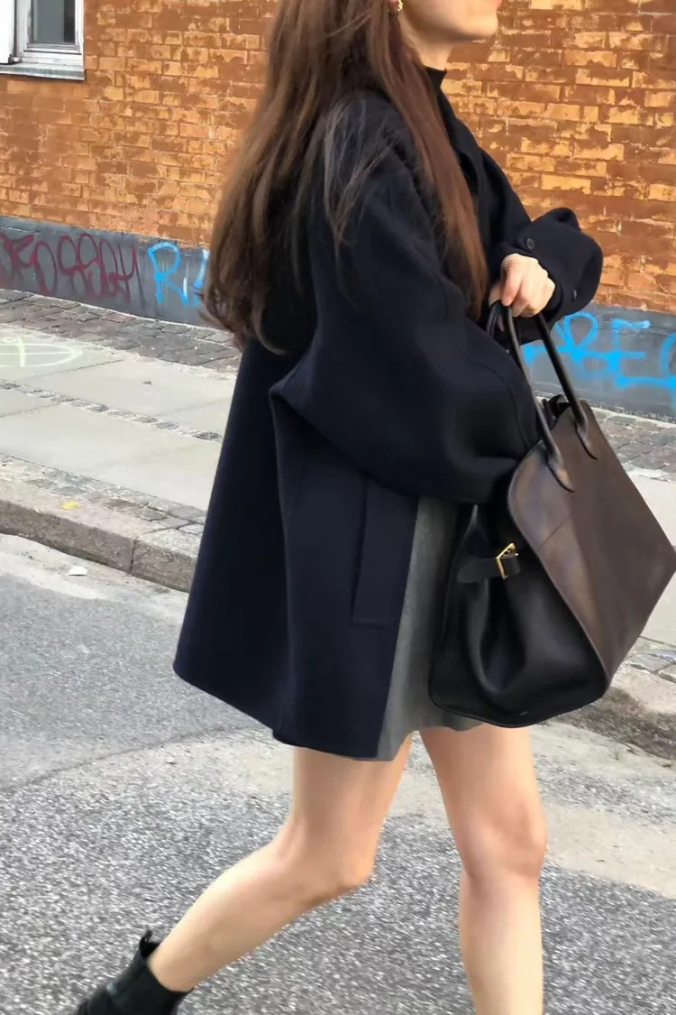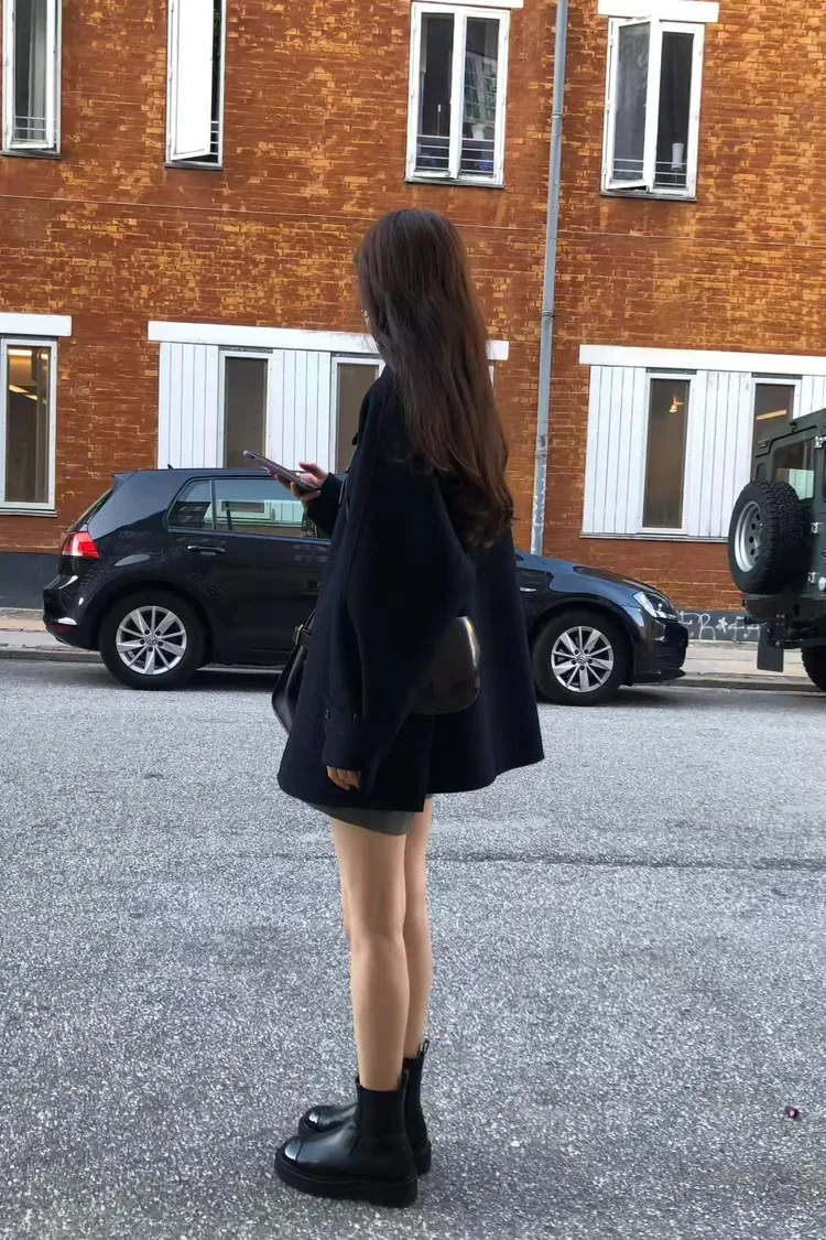 時髦的中長版版型 剛好落在大腿的部分足夠保暖也適合搭配靴子