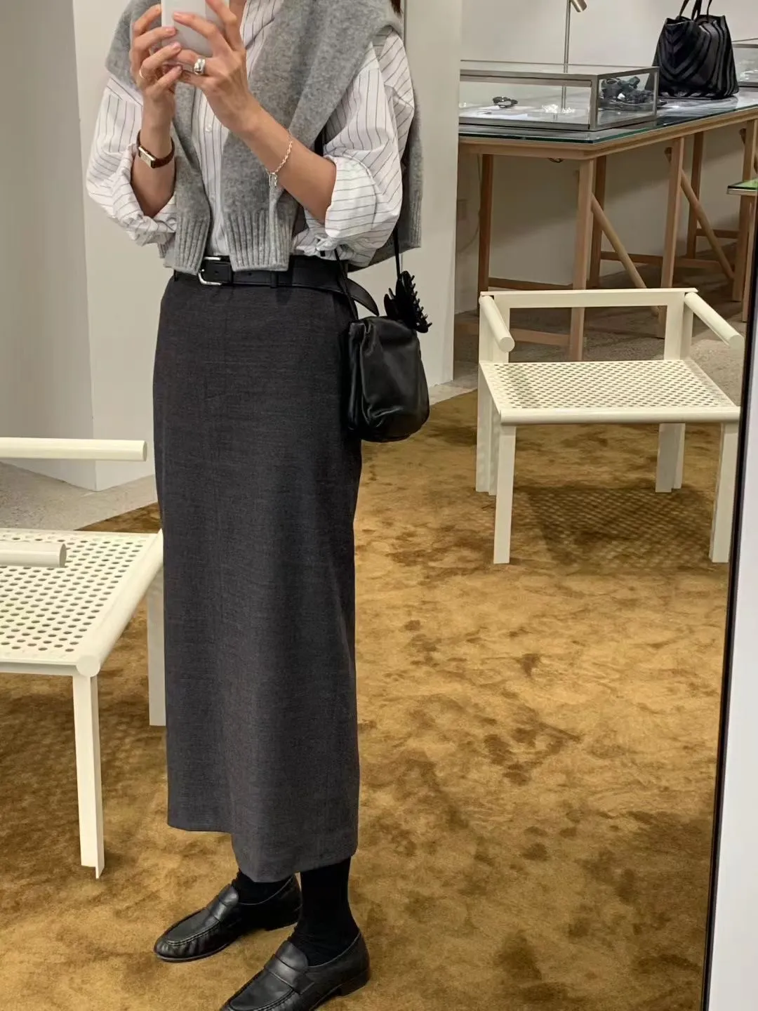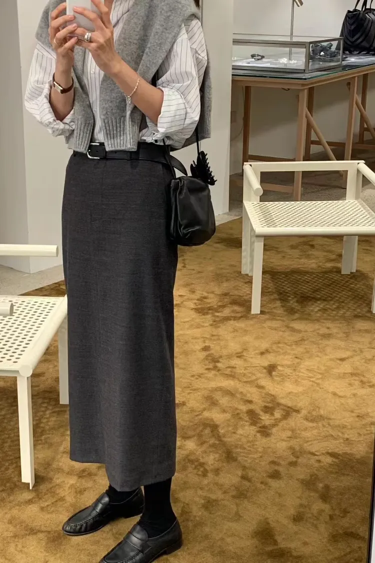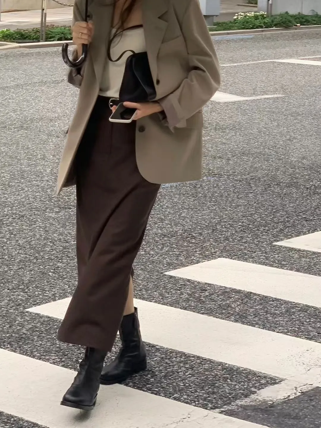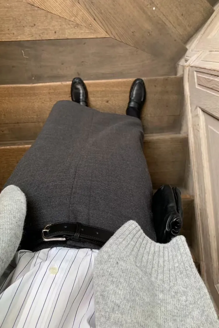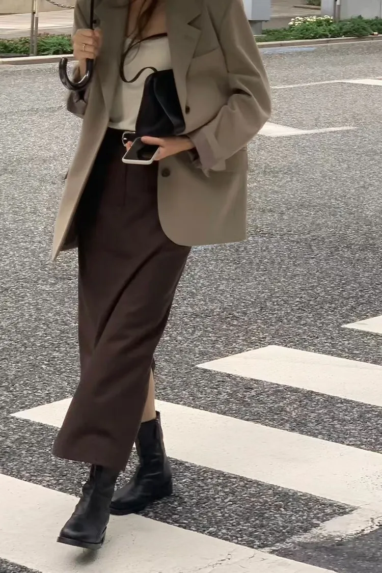 80%羊毛的保暖長裙 搭配腰帶更加幹練