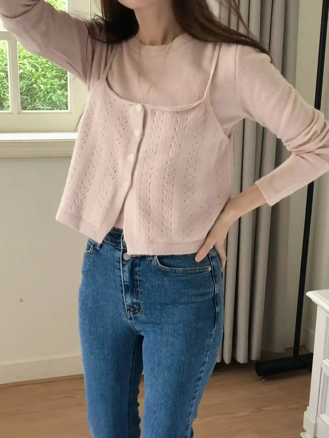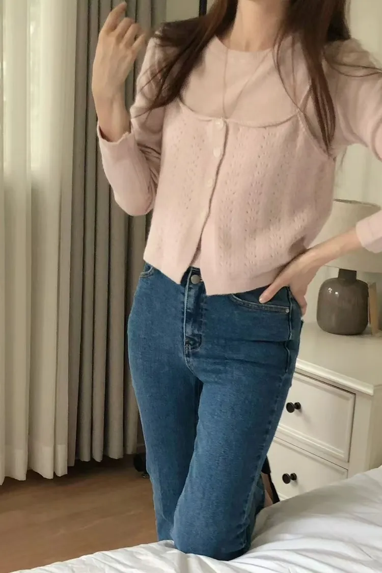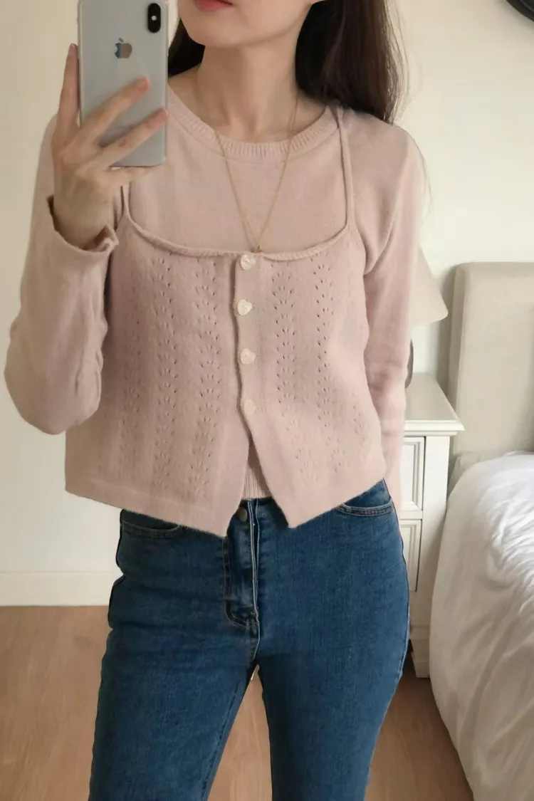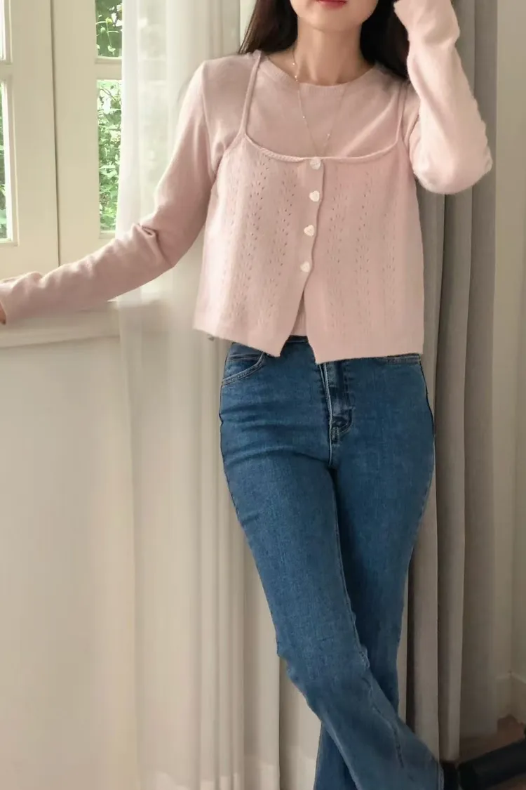 是我很喜歡的雅緻嫩色系 愛心釦和織紋都非常細節可愛呦💕🍓