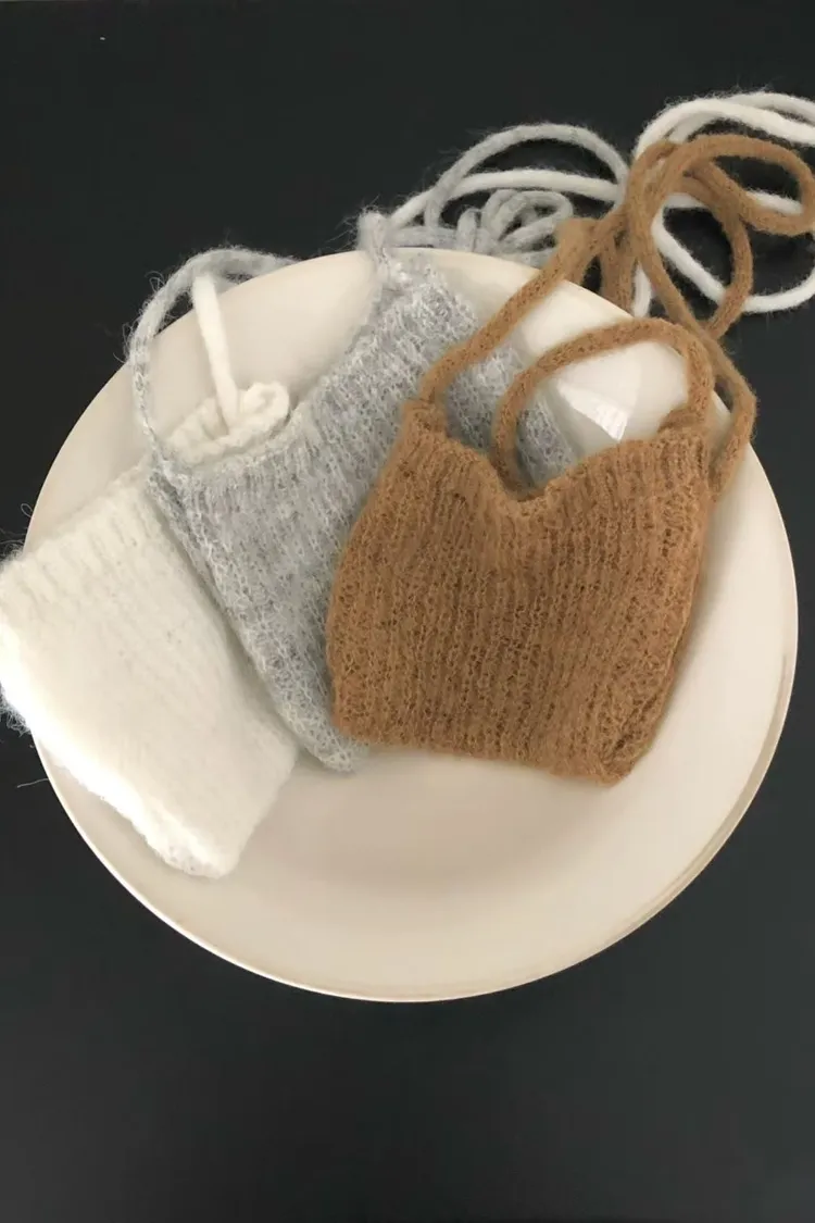 搭配同款毛線小背包 可以當包包也能綁著當腰帶造型 非常可愛呀💛✨