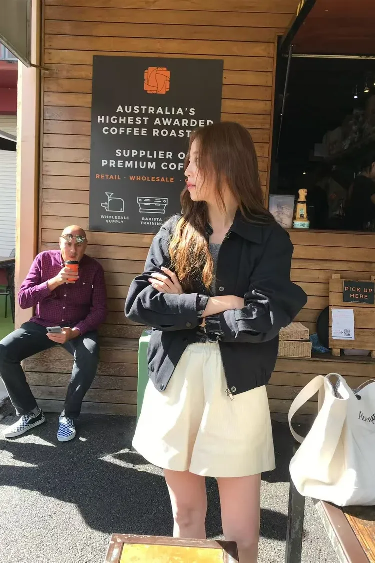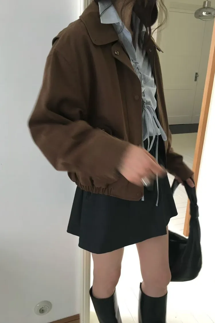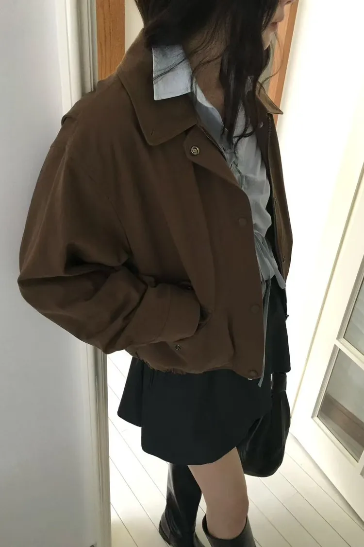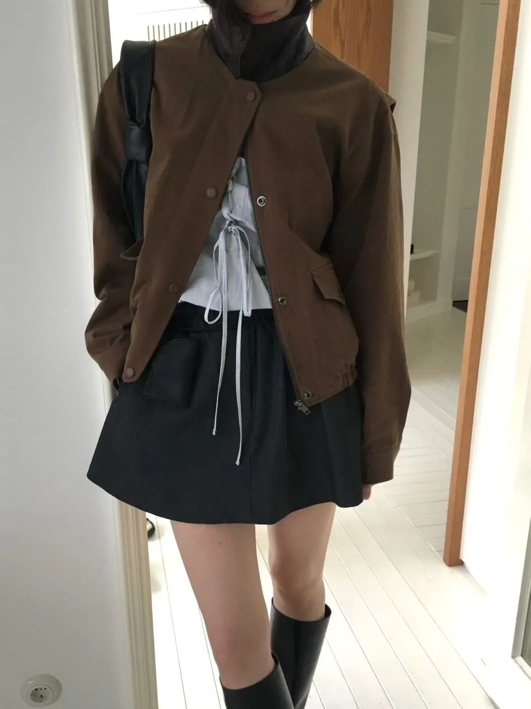 時髦拼接袖設計讓整體更特別 拉鍊和雙口袋又增加了輕鬆慵懶感🌰🤎