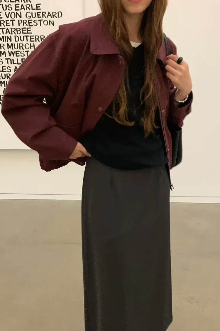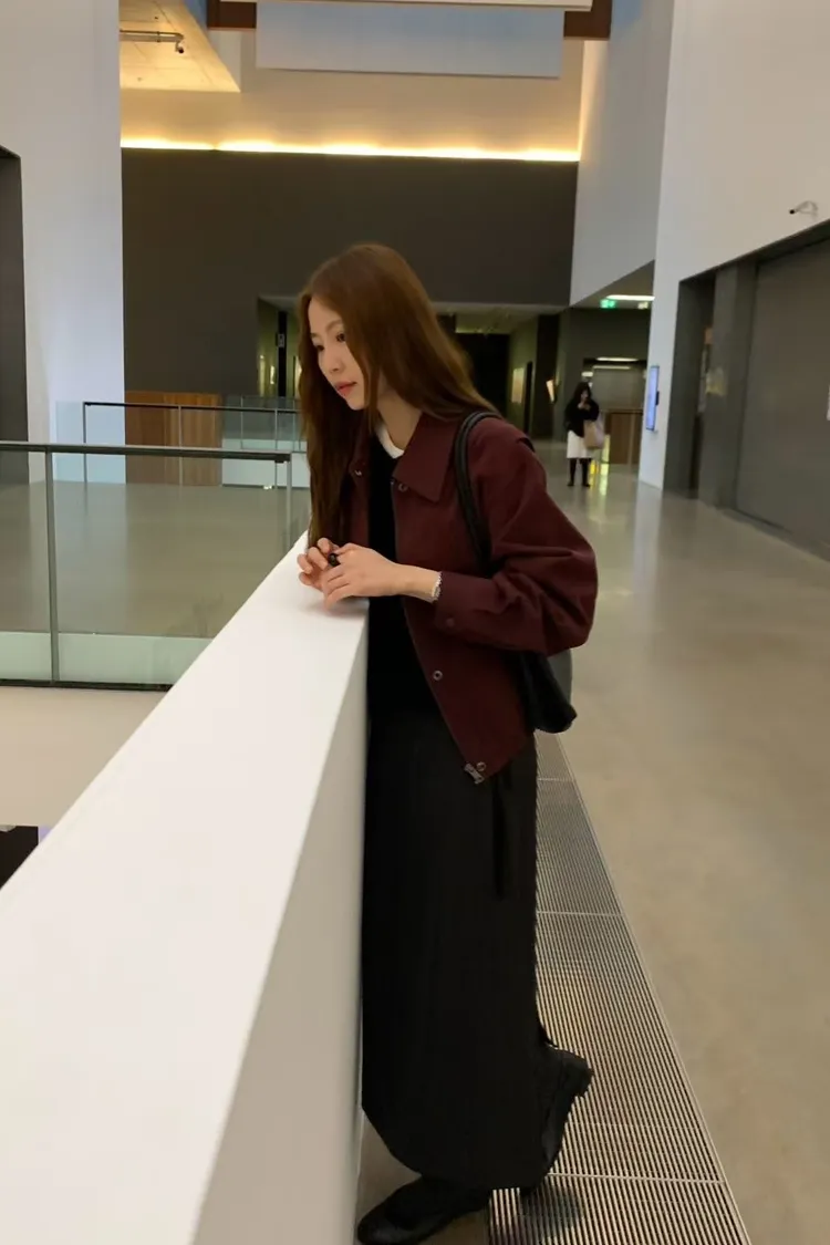 完美呈現韓國秋天的烤糖酒紅色搭配