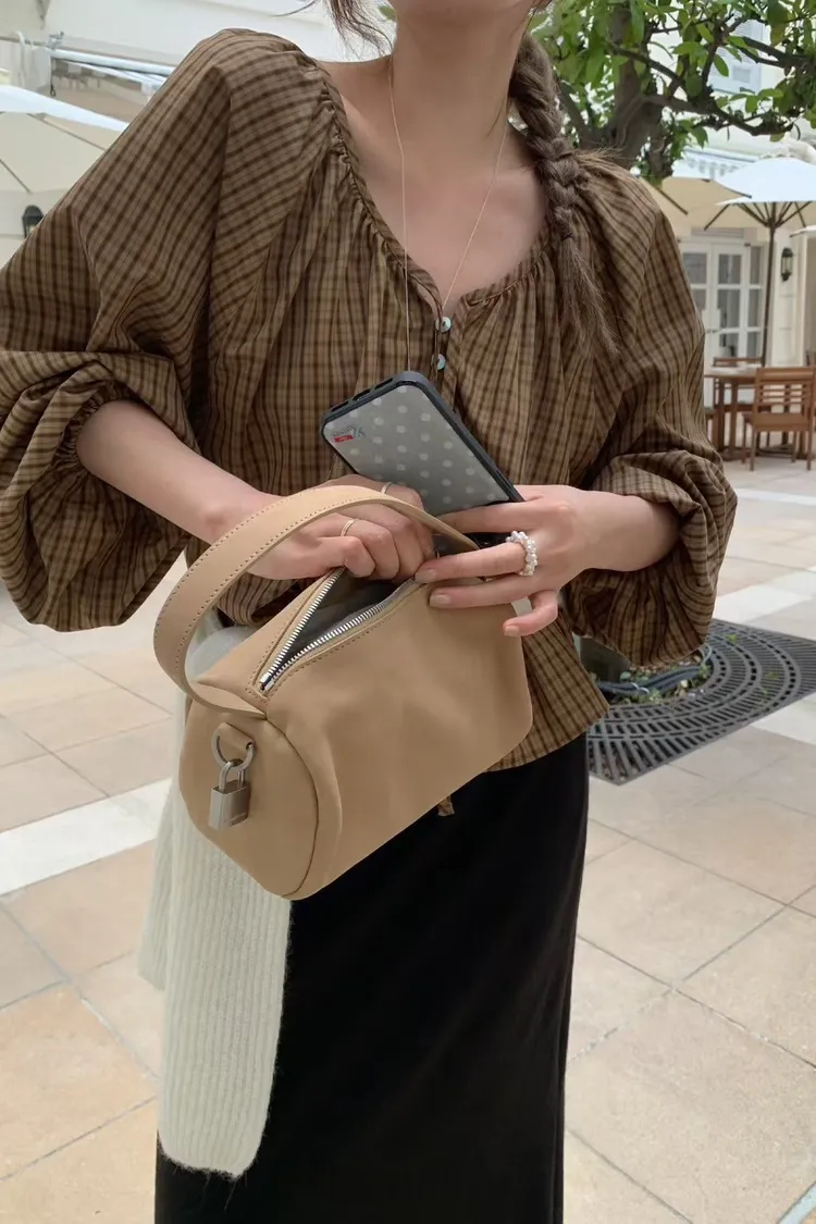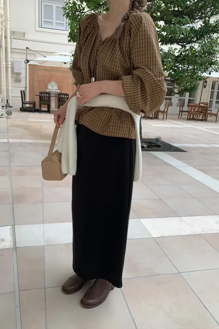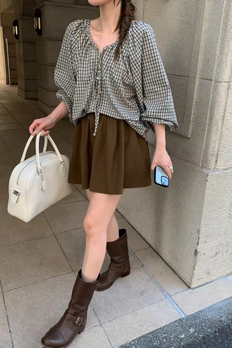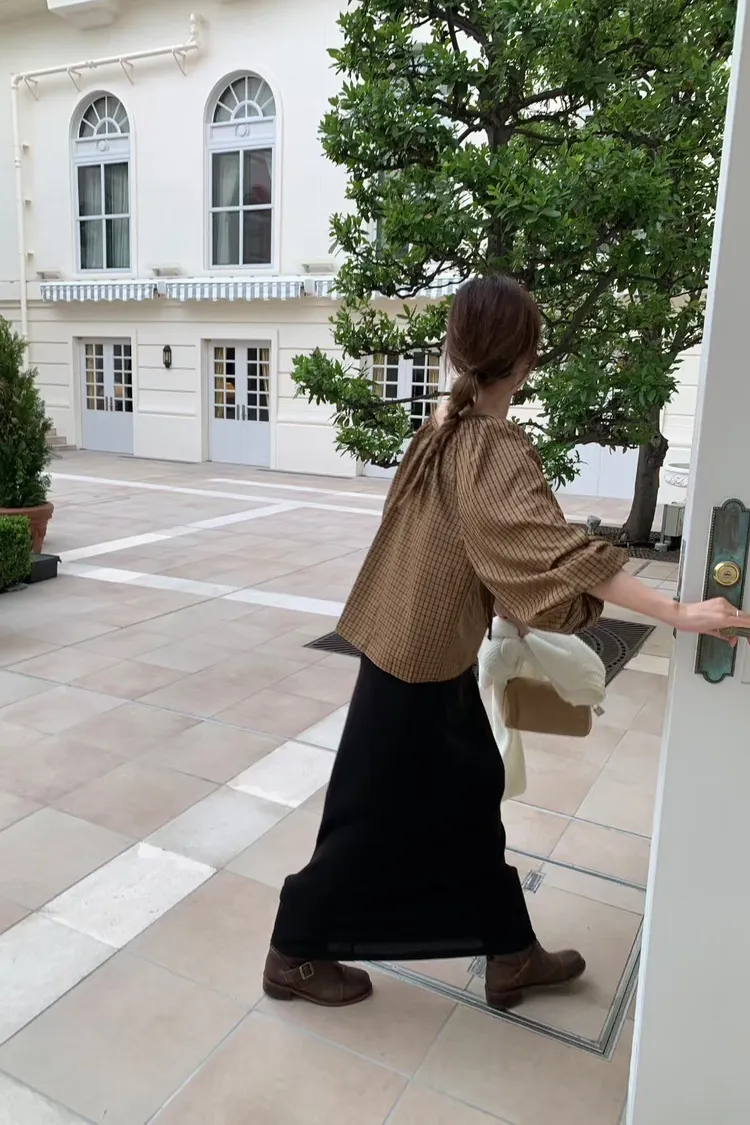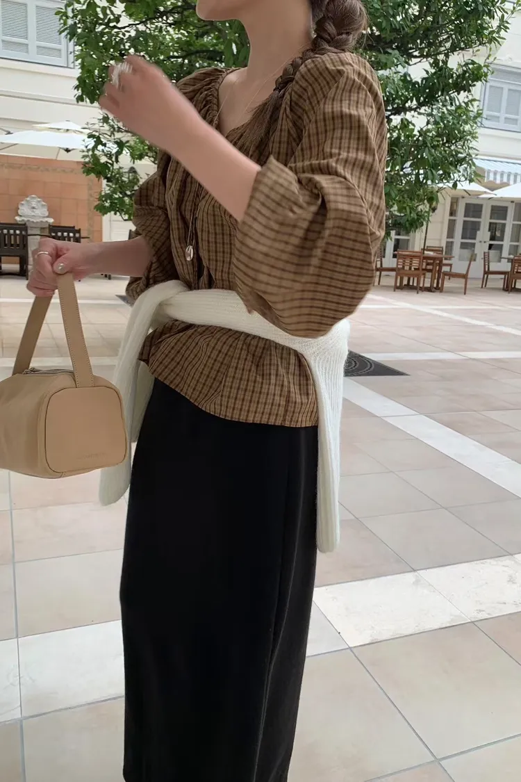 維亞那格紋小澎袖氣質上衣