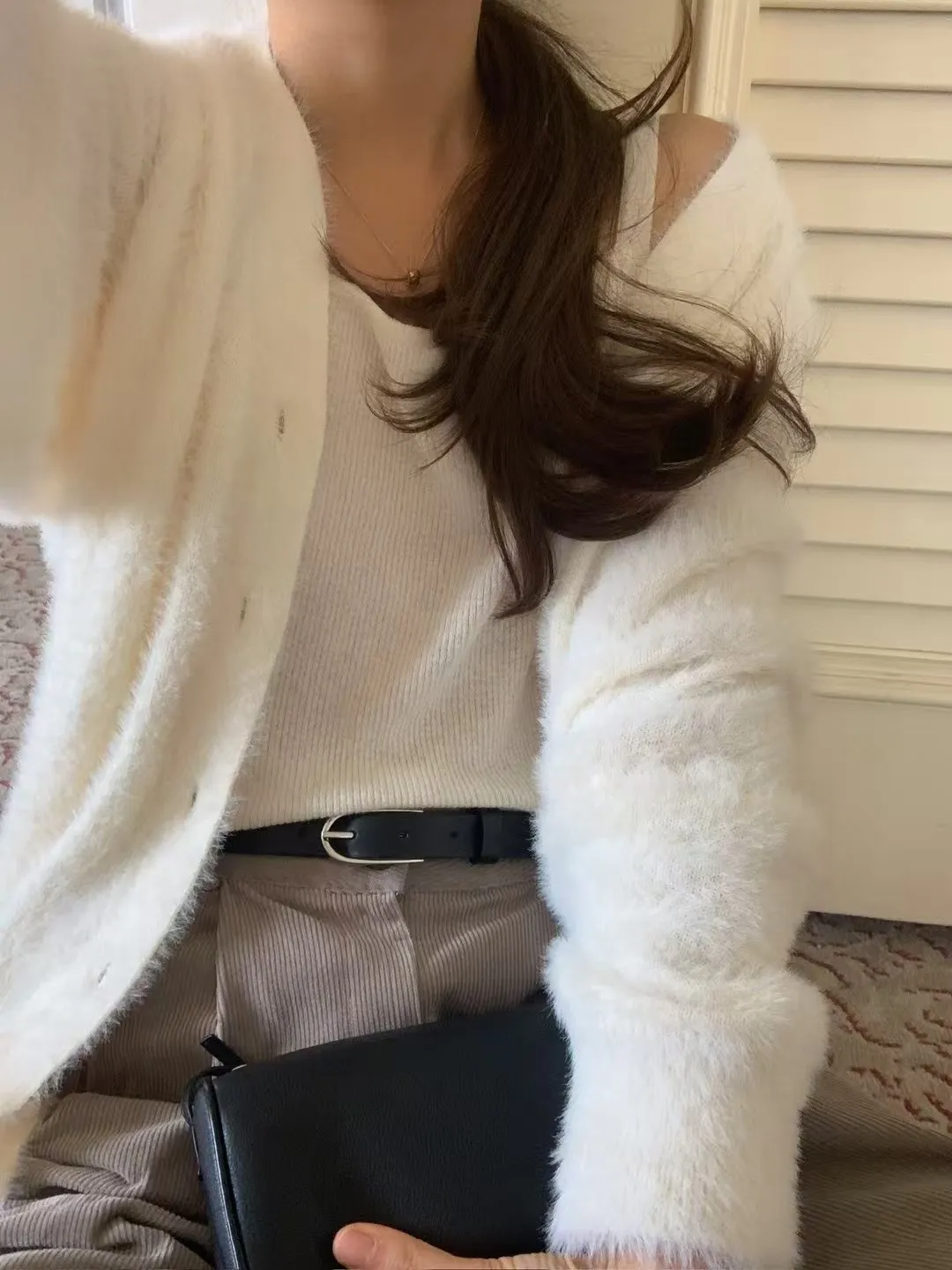 柔柔的天鵝毛混紡在針織裡,一穿上就像被雲抱住♡