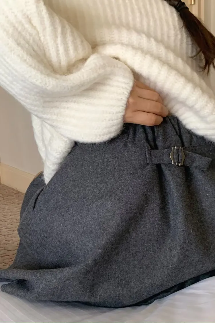 高腰鬆緊設計好穿又修飾,軟軟羊毛質地配上傘狀剪裁