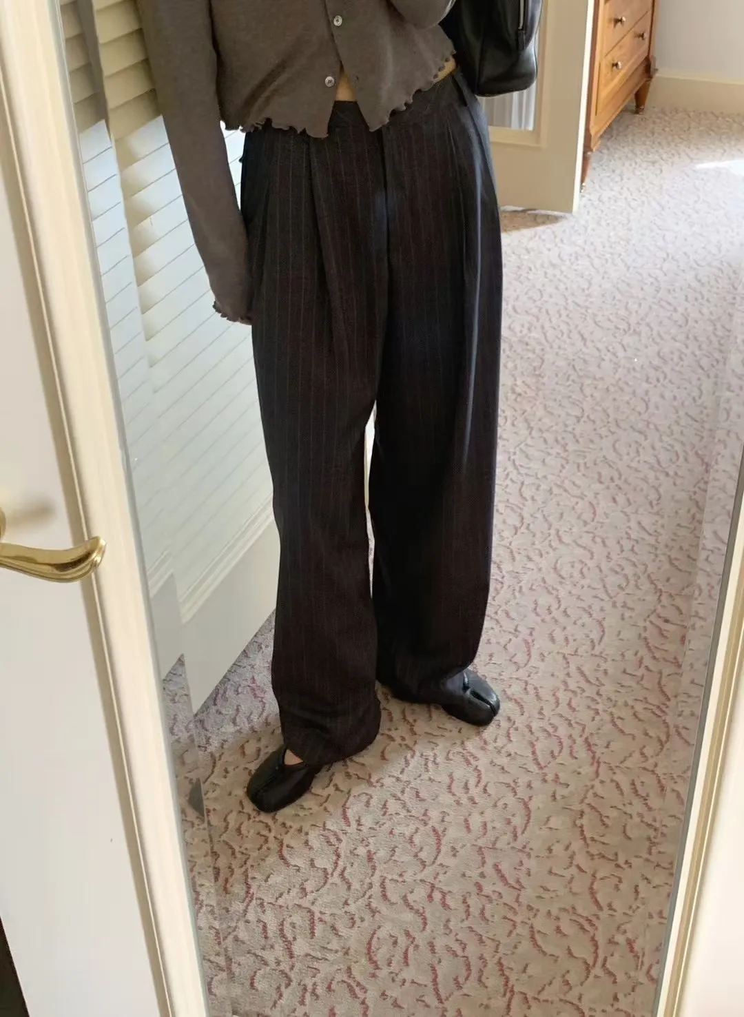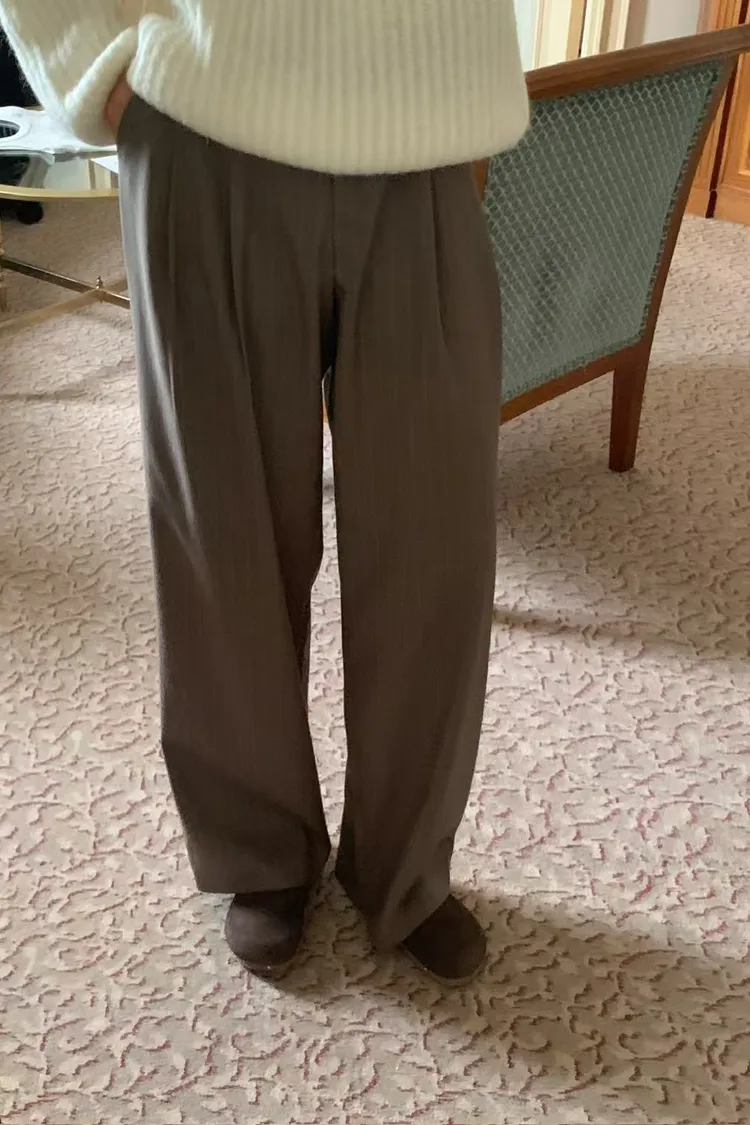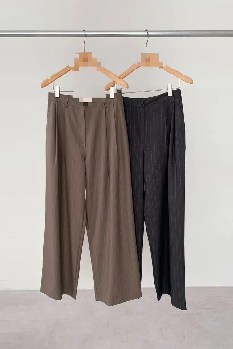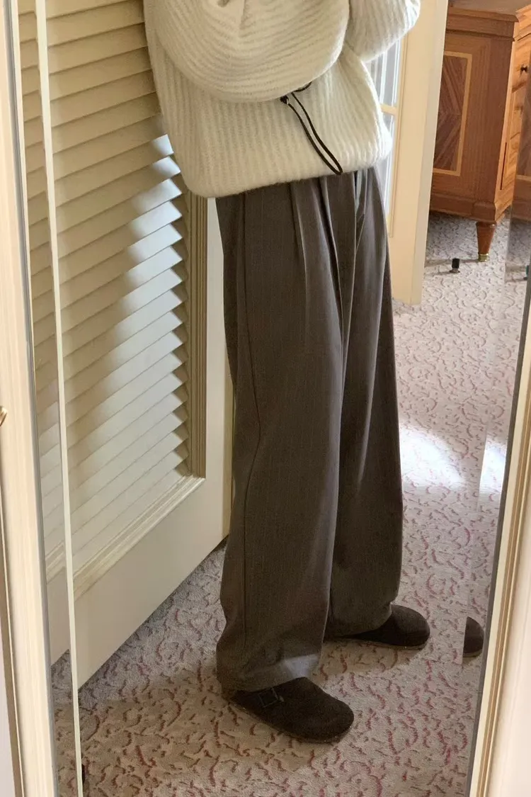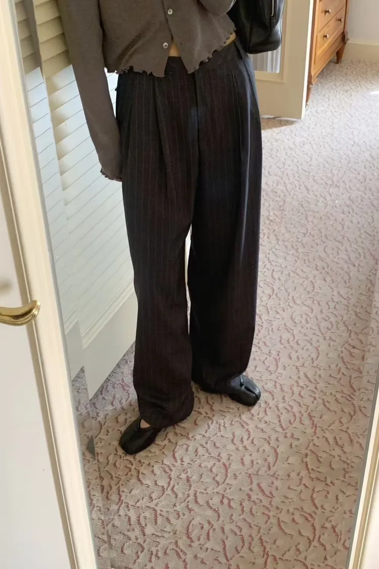 羊毛直條紋顯瘦長褲