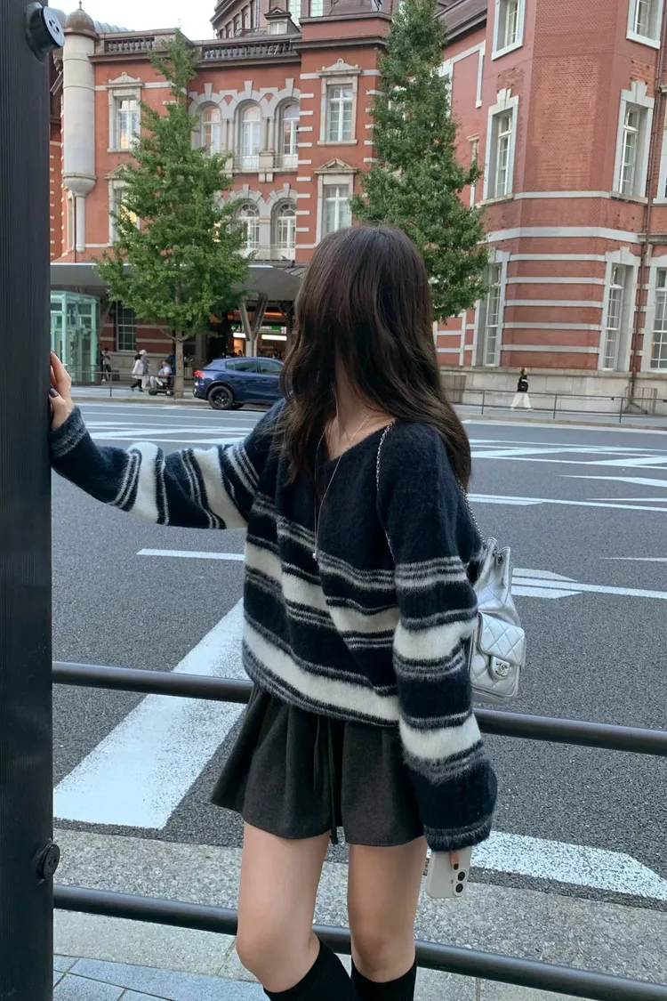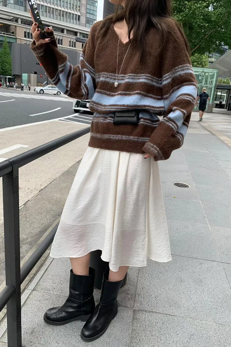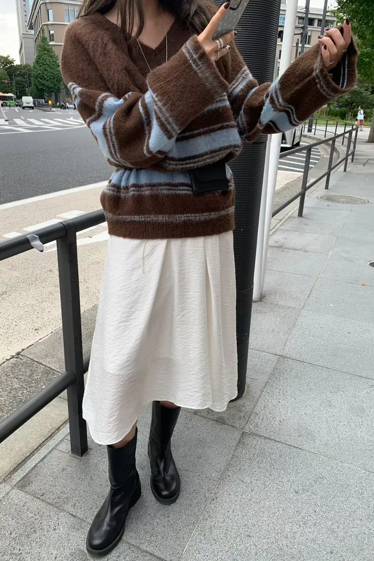 低調條紋拼接,像走進了雪地童話𓂃𓈒◌
