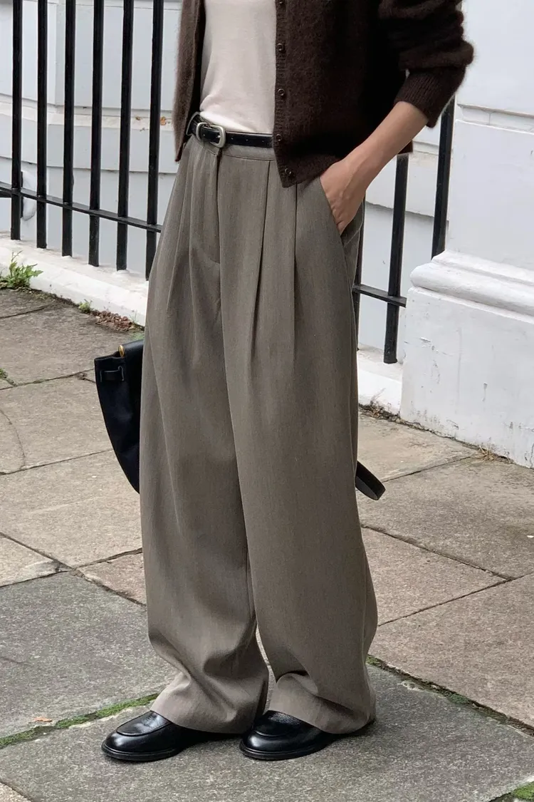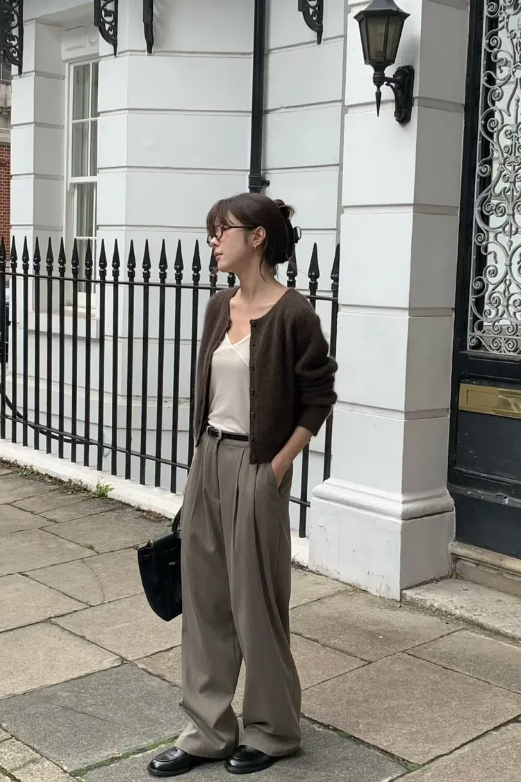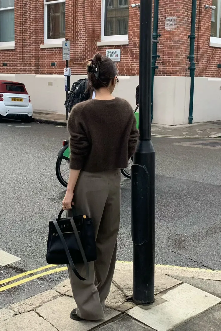 有點慵懶卻很有氣勢,搭配短版上衣直接很時尚
