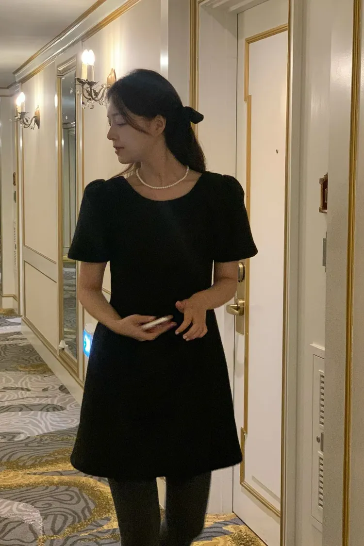 千金風小澎袖質感短洋裝