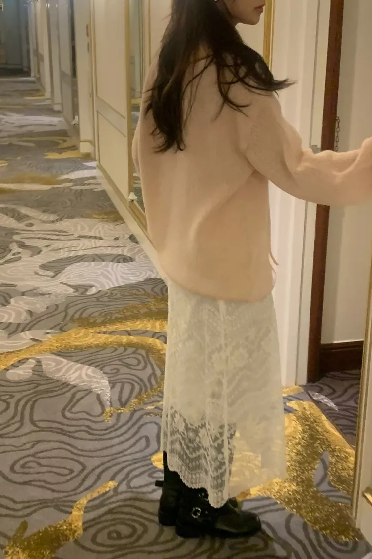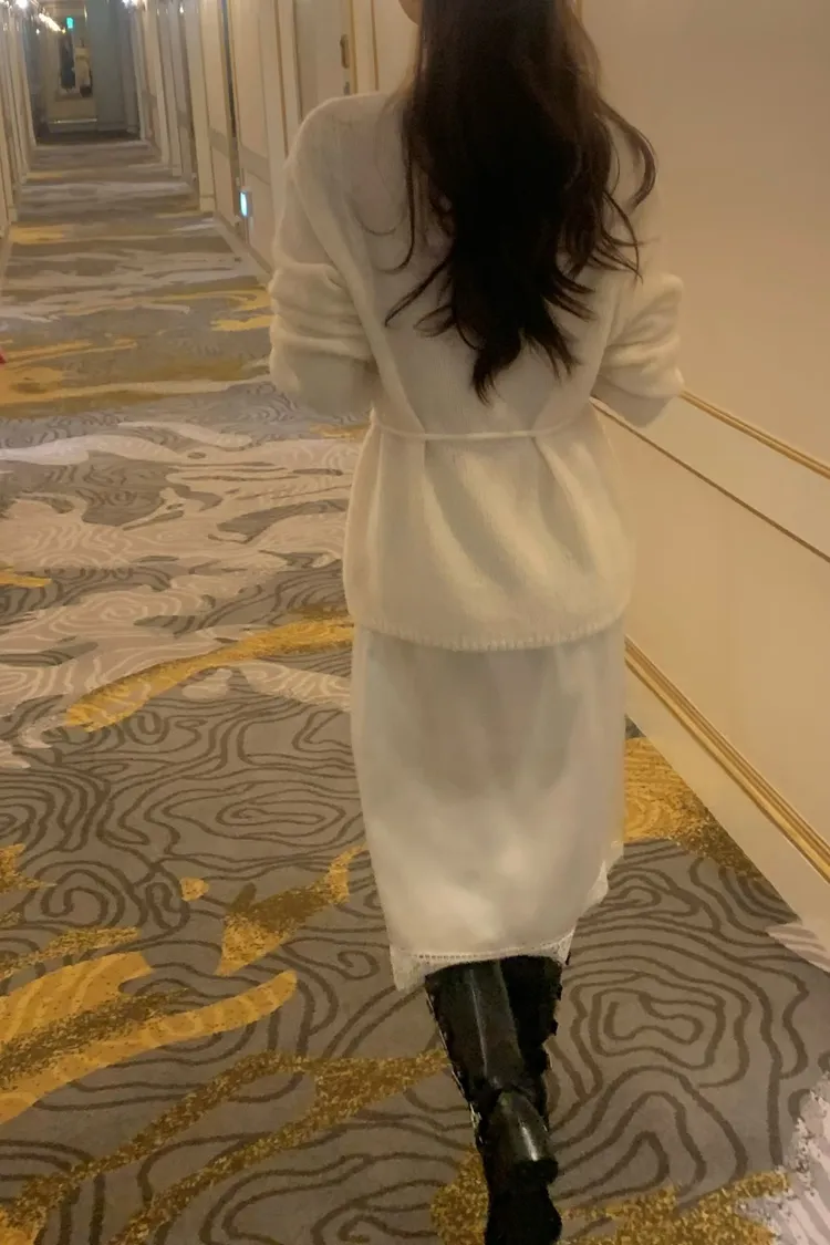 長版針織版型可以當洋裝穿,搭靴子超有氣氛~