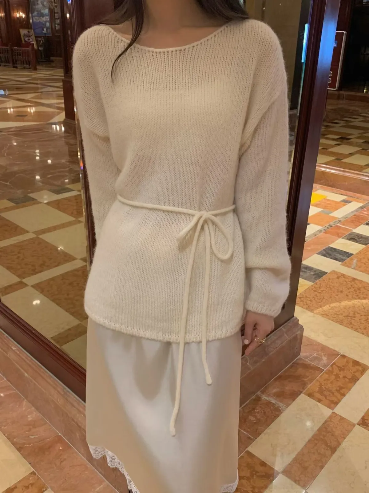 小領巾西西里長版針織毛衣