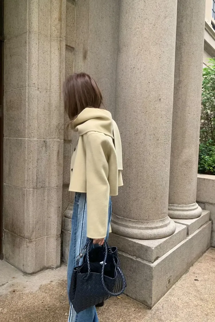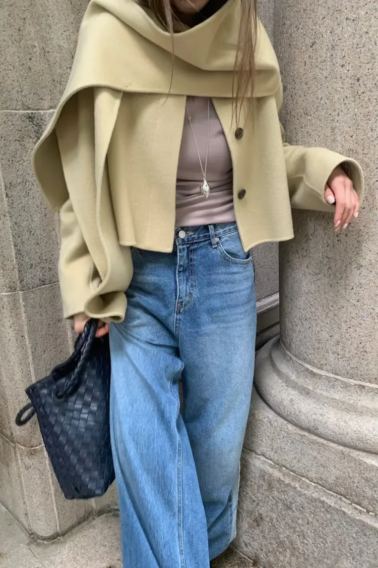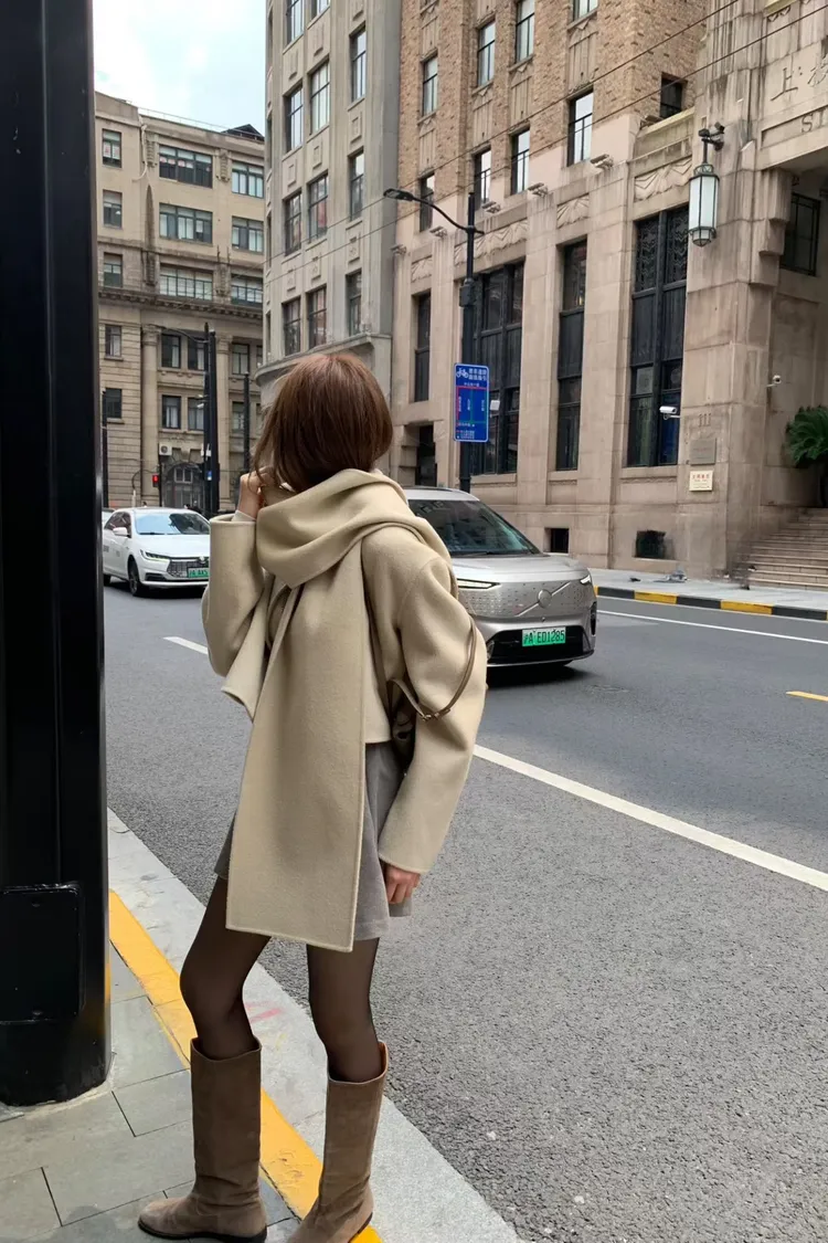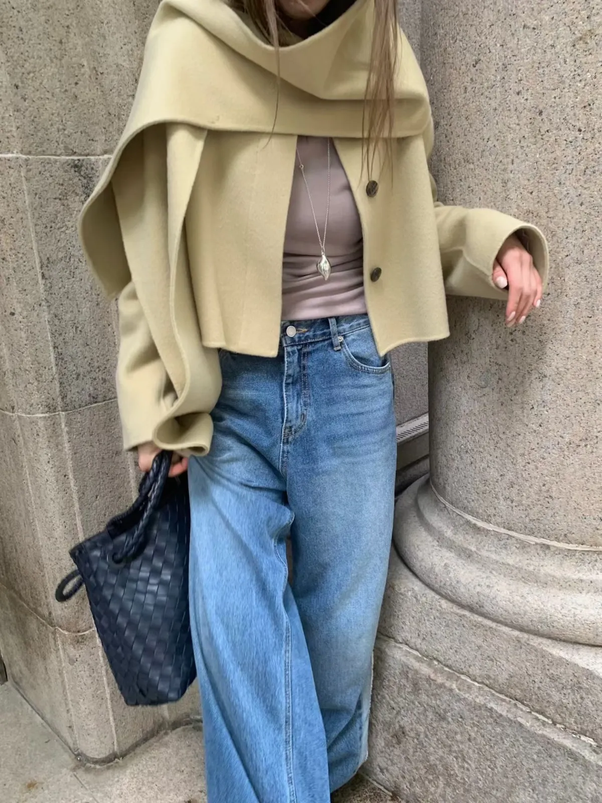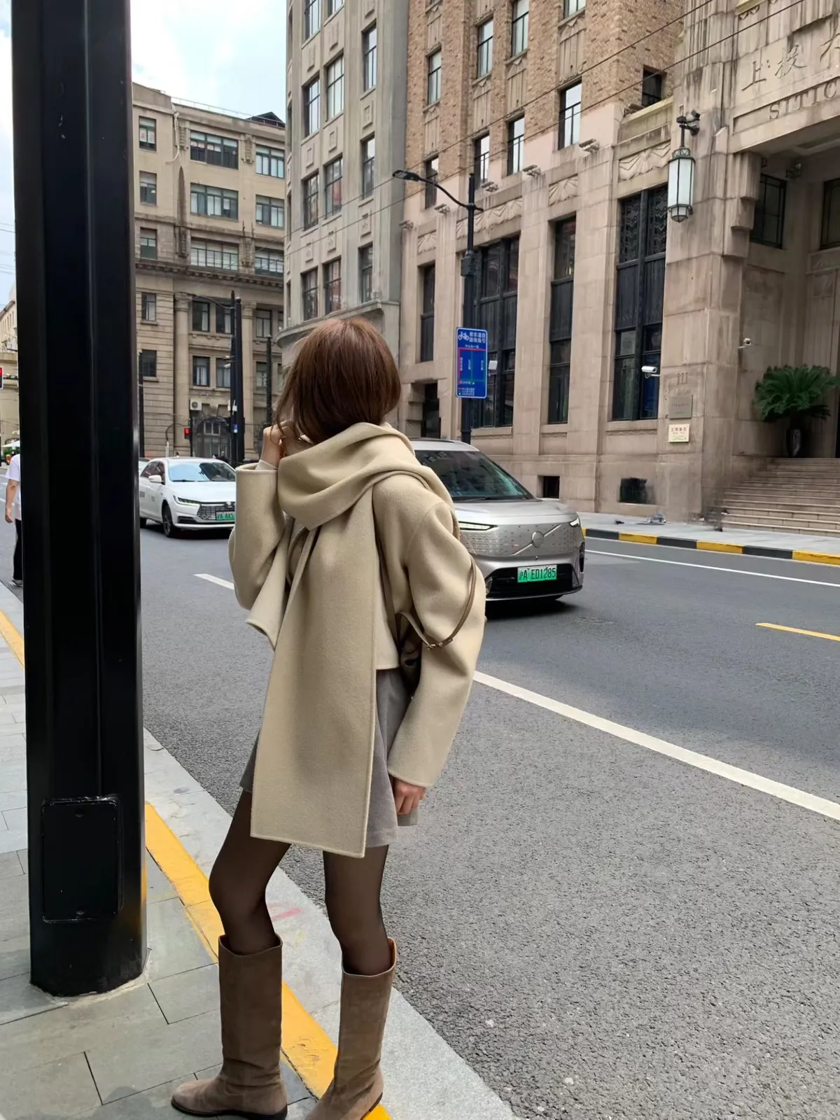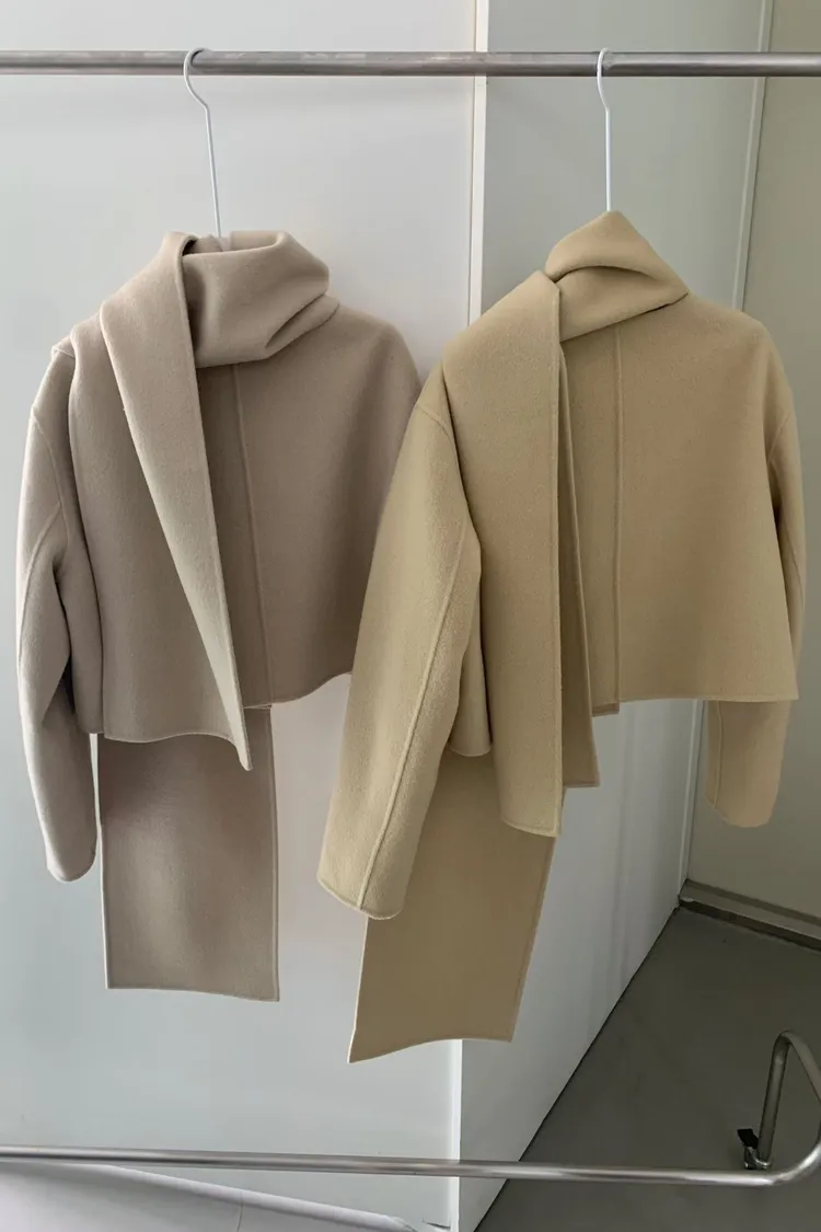 自帶圍巾設計,一體成型就有法式優雅感🧣