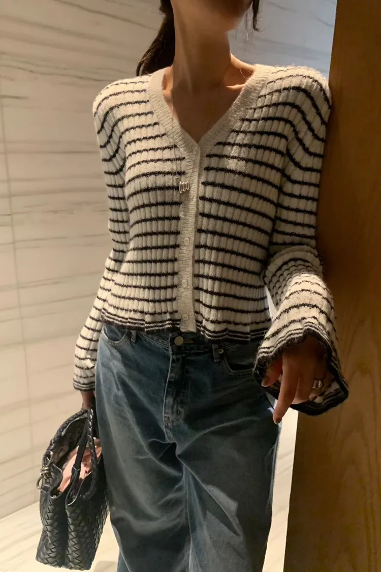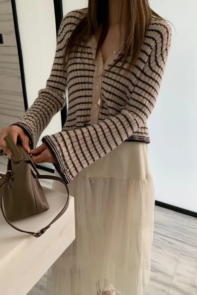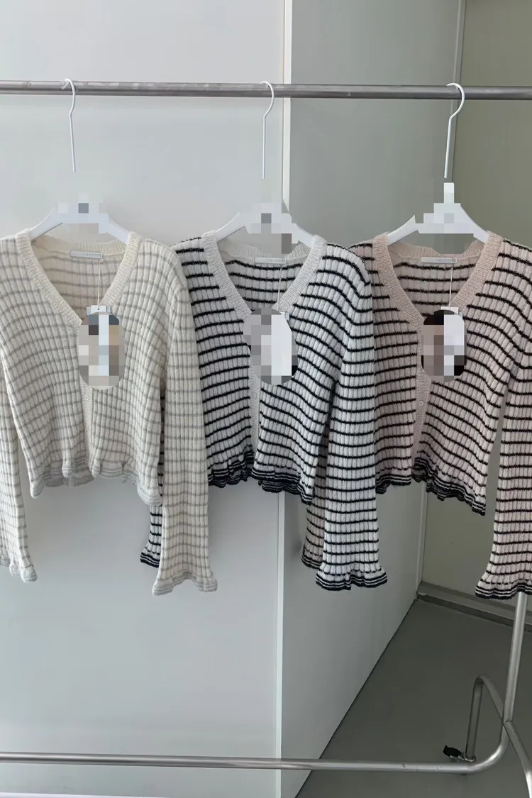 簡單卻藏不住小心機!🎀 這件條紋針織上衣版型順身但不貼肉,穿起來真的顯瘦到不行~ 領口和袖口的花邊設計超可愛,細節滿滿又不浮誇🌼 單穿、內搭洋裝都OK,真的會想包色的百搭款!🛒 肩38/胸46-60/長50