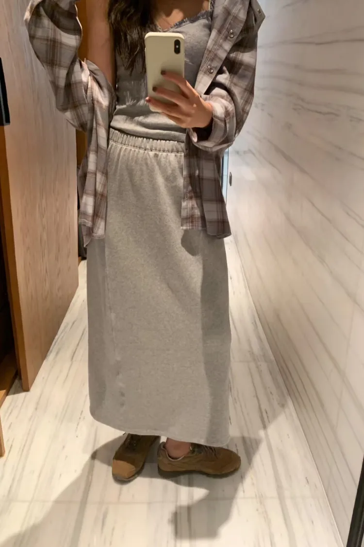 肚子吃太飽?沒事!我們有藏肉神器🤭🍰 這件鬆緊腰長裙真的超~級~舒服,布料垂墜感很美,走起路來飄飄的✨ 裙擺份量夠,搭毛衣or襯衫都優雅得剛剛好~💃 是不退流行的氣質單品,日常到上班都能穿! 腰33-48/臀52/長85