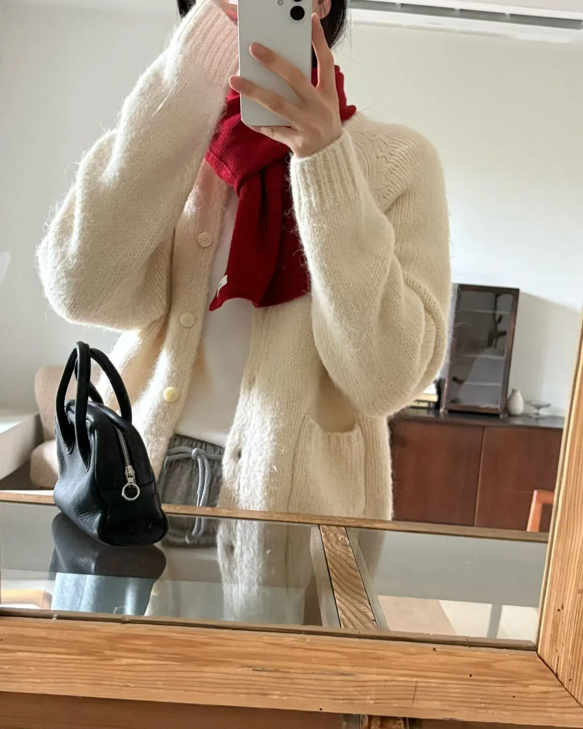 秋冬必備的溫柔氛圍款🧶 羊毛混紡材質穿起來超柔暖~