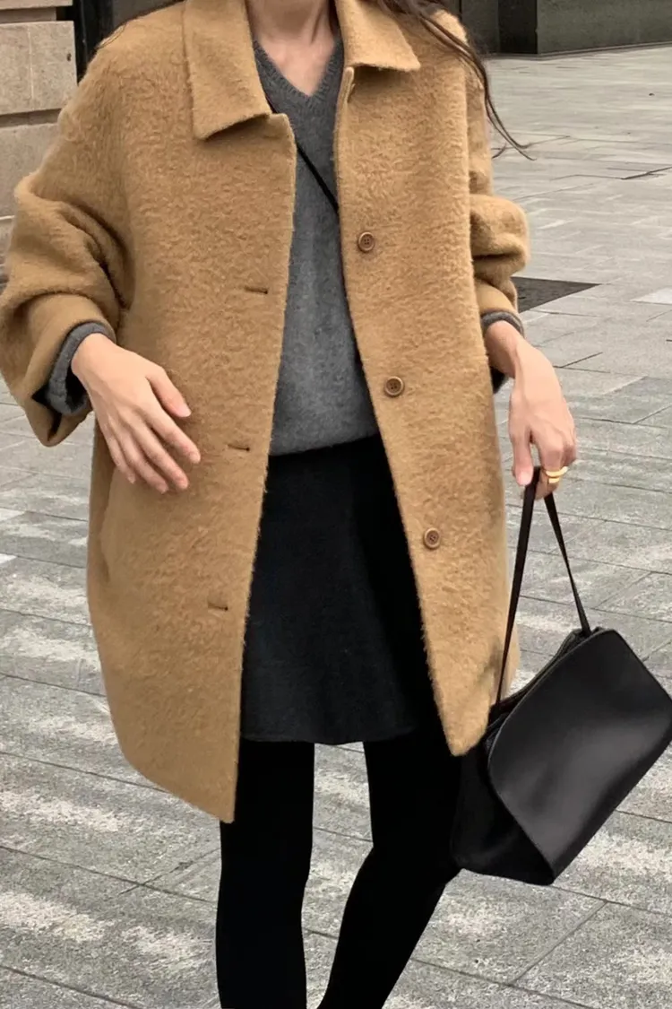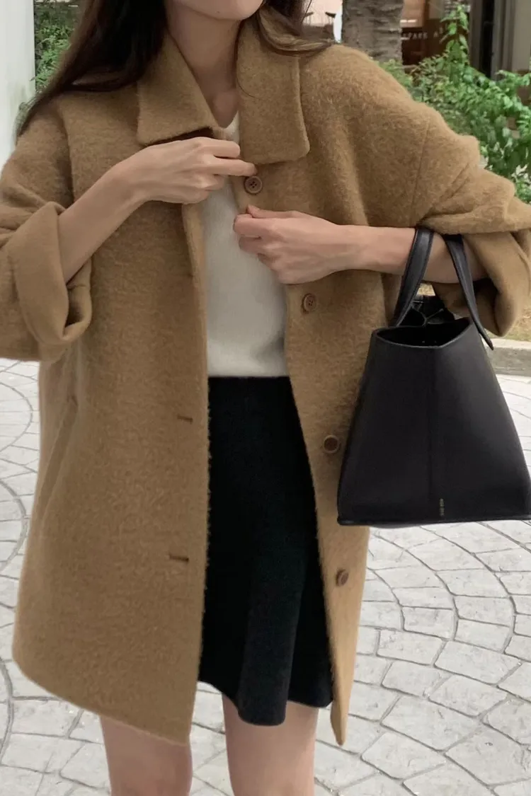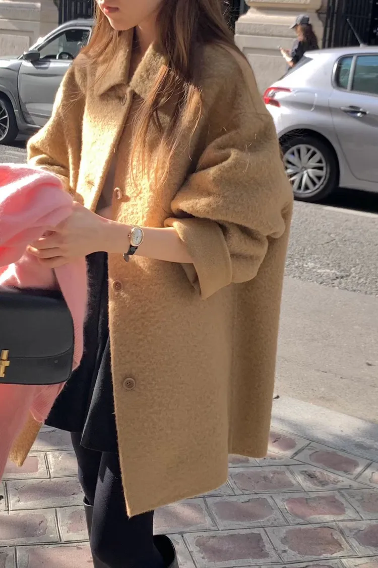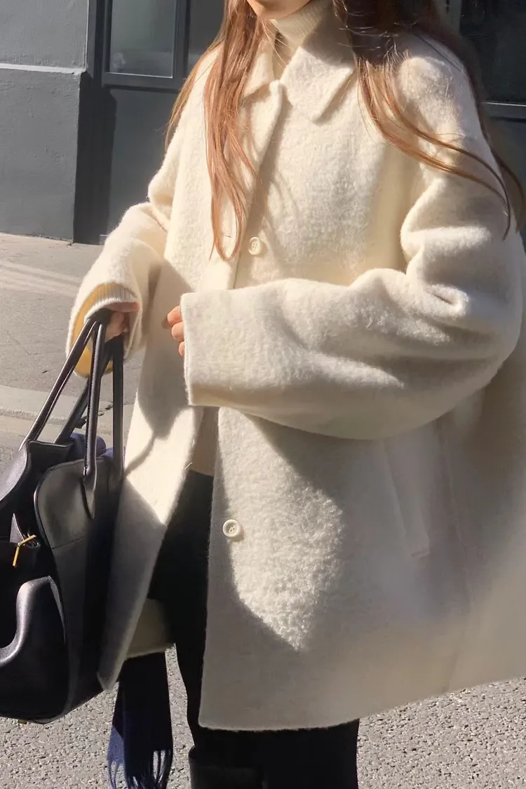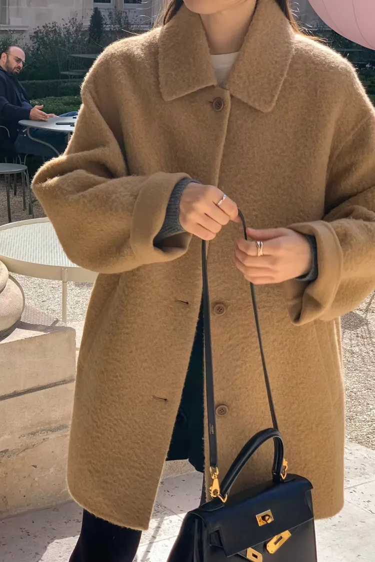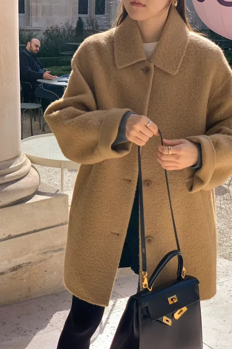單排釦+微收腰設計好顯瘦! 布料是輕盈的羊毛混紡,保暖但不厚重☁️ 長度剛好蓋臀,修飾比例又不拖身形~ 是一件溫柔又有氣場的日常大衣🤍 肩寬45 /胸寬56/ 袖長62/ 全長79重量 700g羊駝毛24%+羊毛73%+尼龍3%