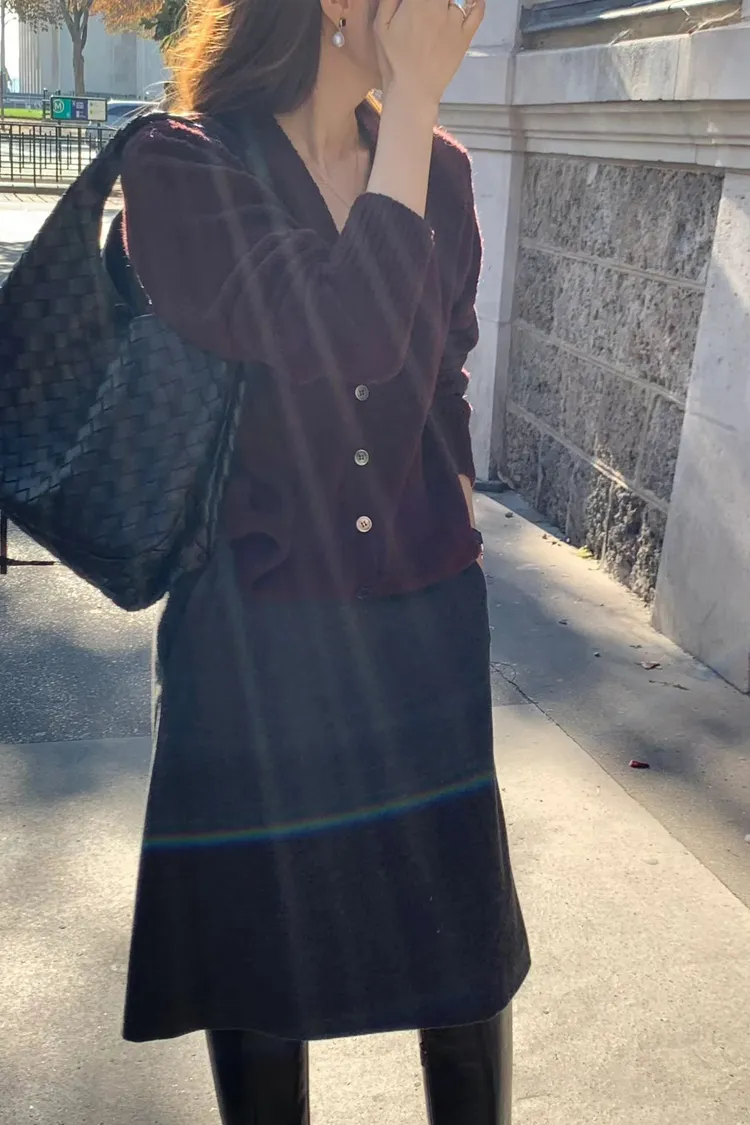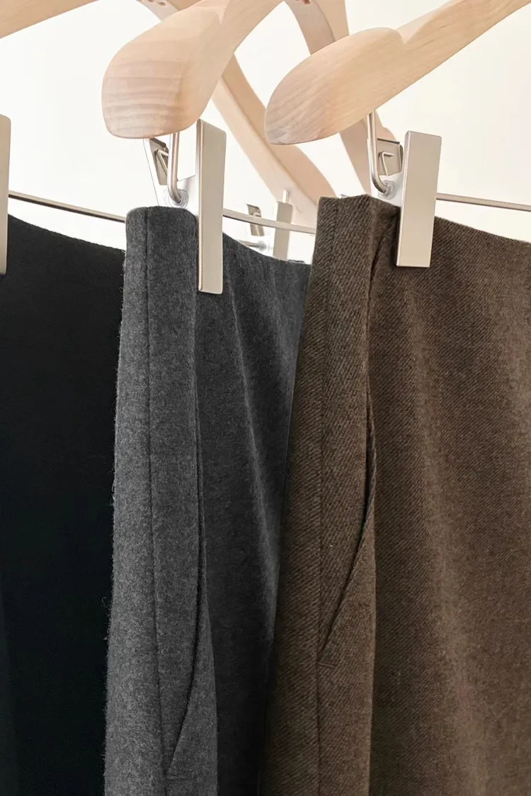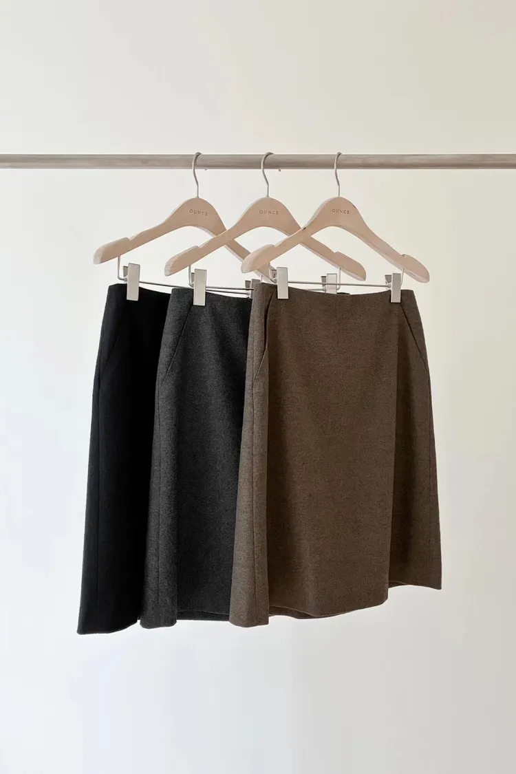 OUNCE 隱形拉鍊口袋中長羊毛裙