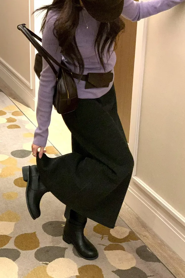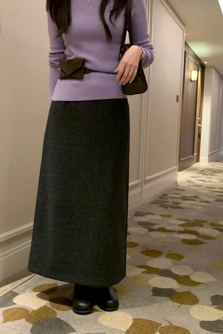 優雅仙女必備鬆緊羊毛長裙