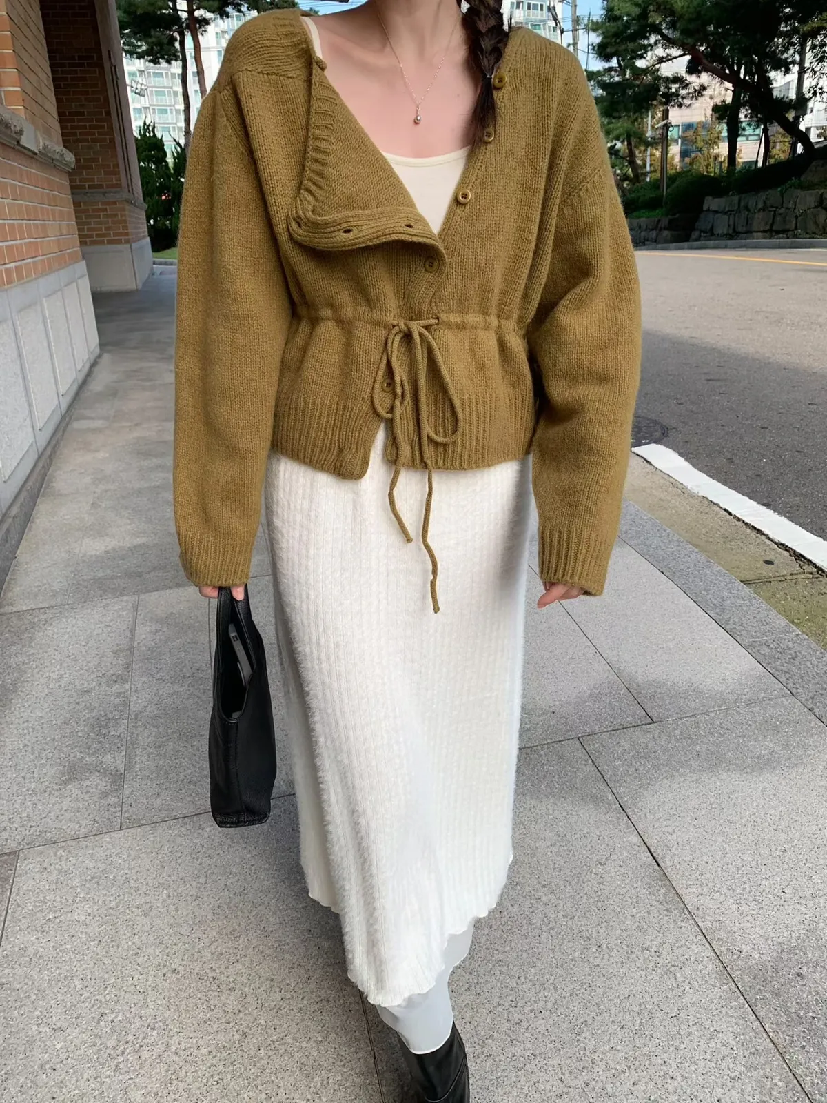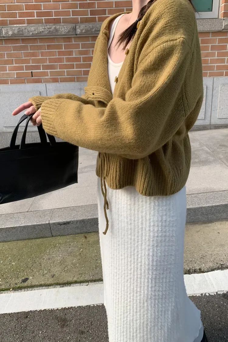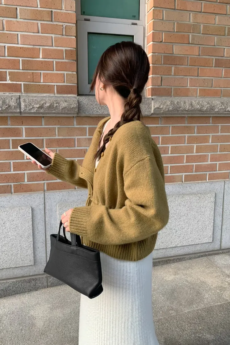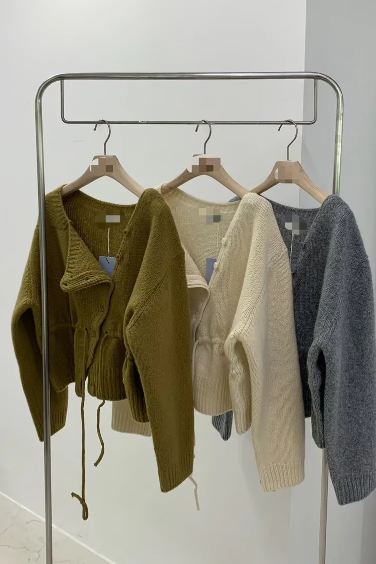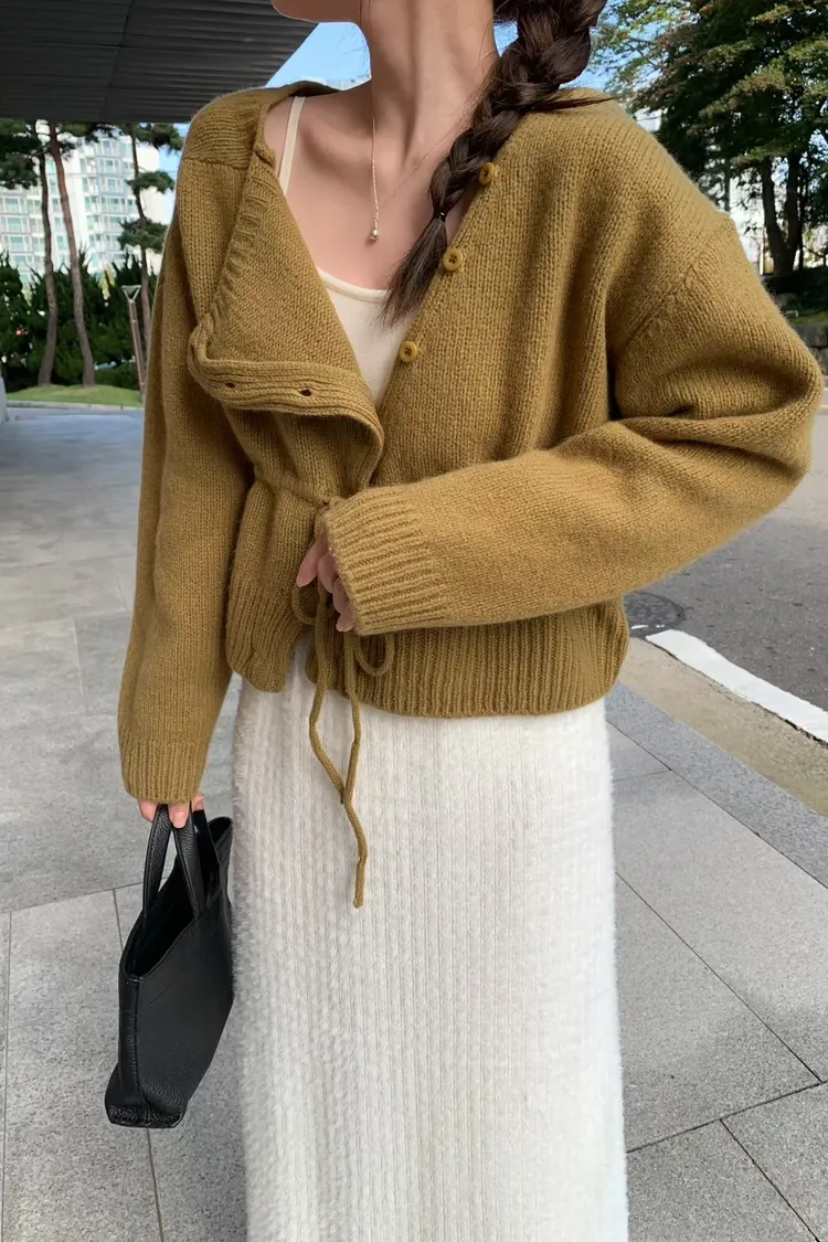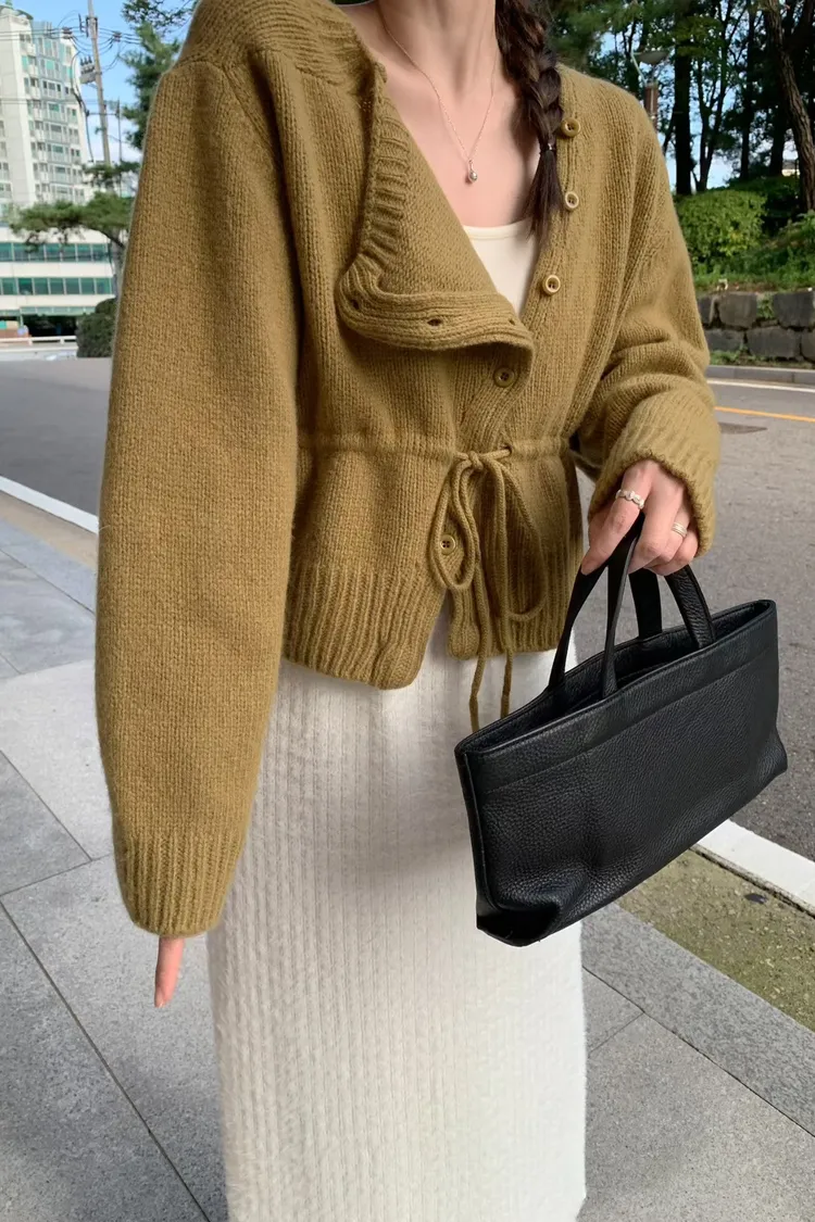 綁帶收腰俐落感排釦毛衣