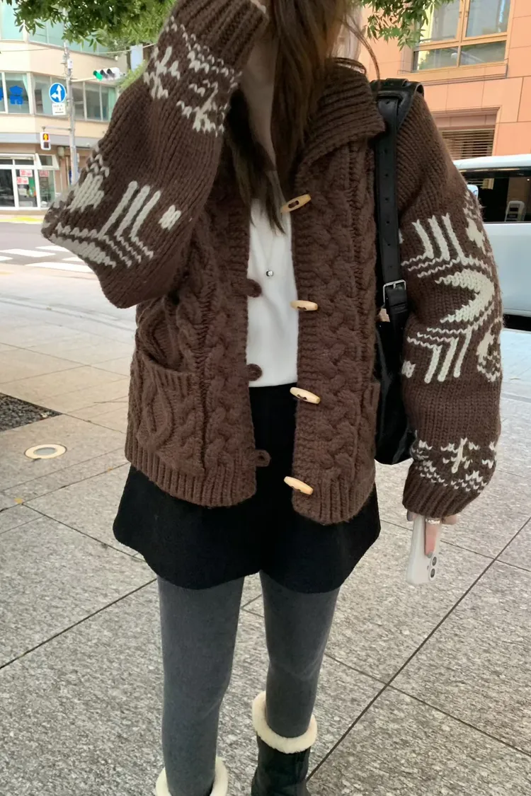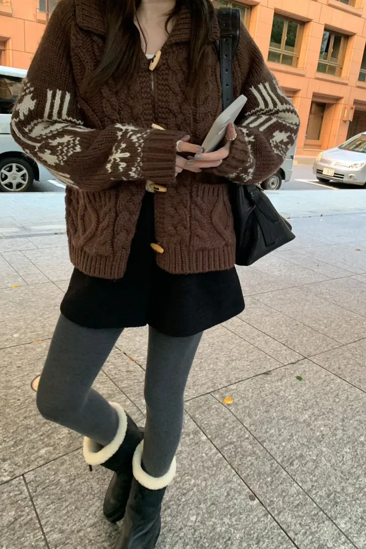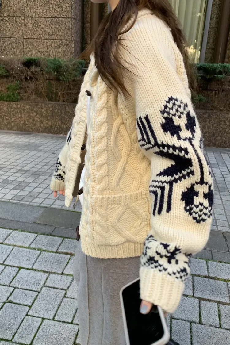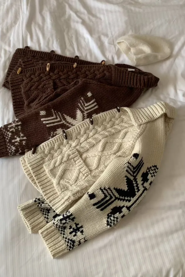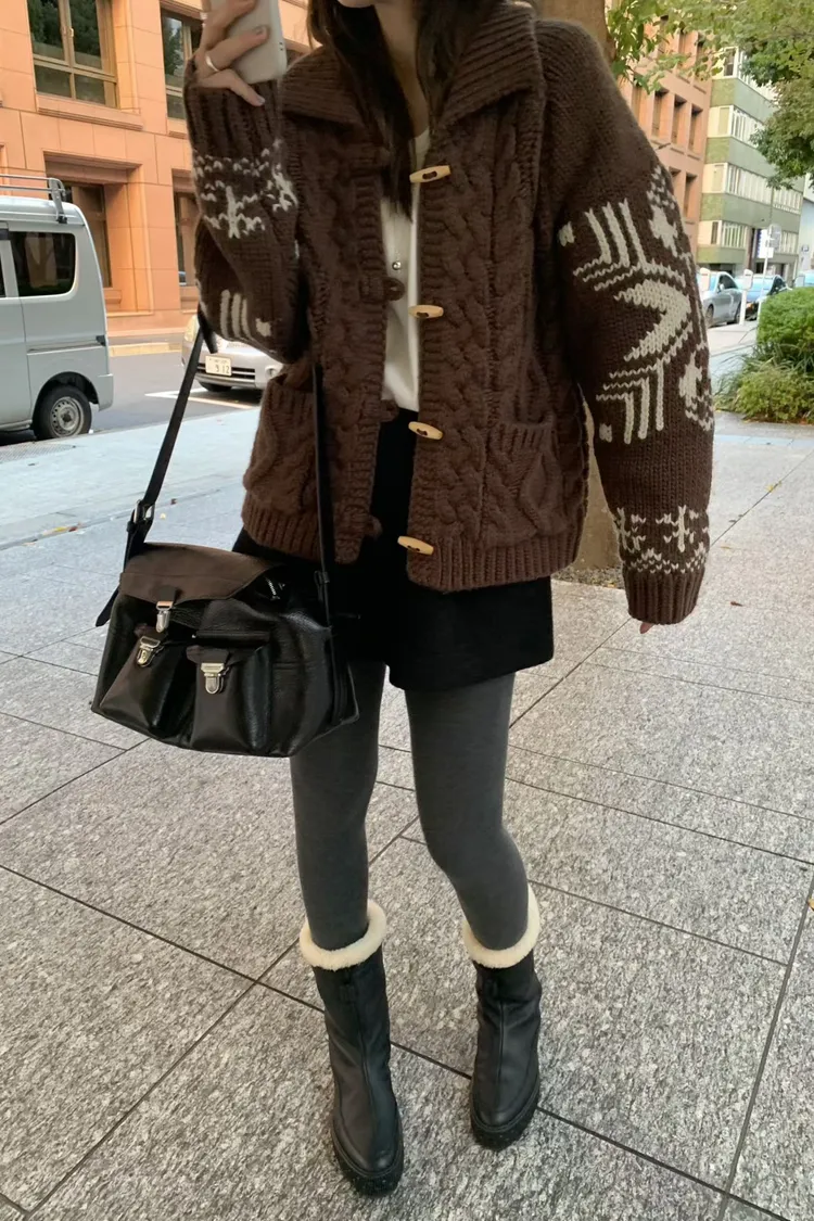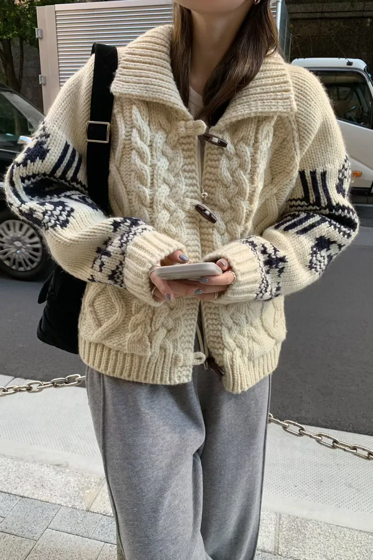 尺寸 胸55/長57 重量 1.4kg 材質 羊毛50% 「咖啡牛奶麻花圖騰羊毛外套」 咖啡牛奶色真的太療癒🤎🤍 有口袋、麻花與圖騰交錯超精緻,厚度剛剛好又不會顯胖 穿起來是那種「很會穿但又不故意」的法式慵懶感
