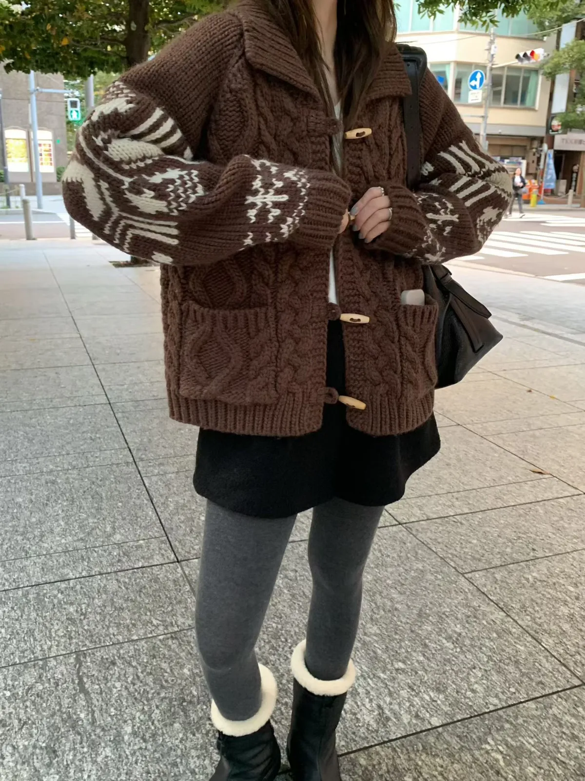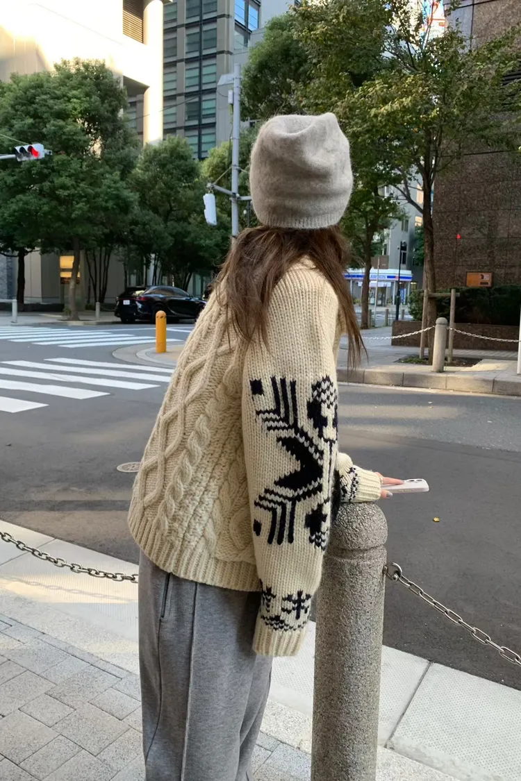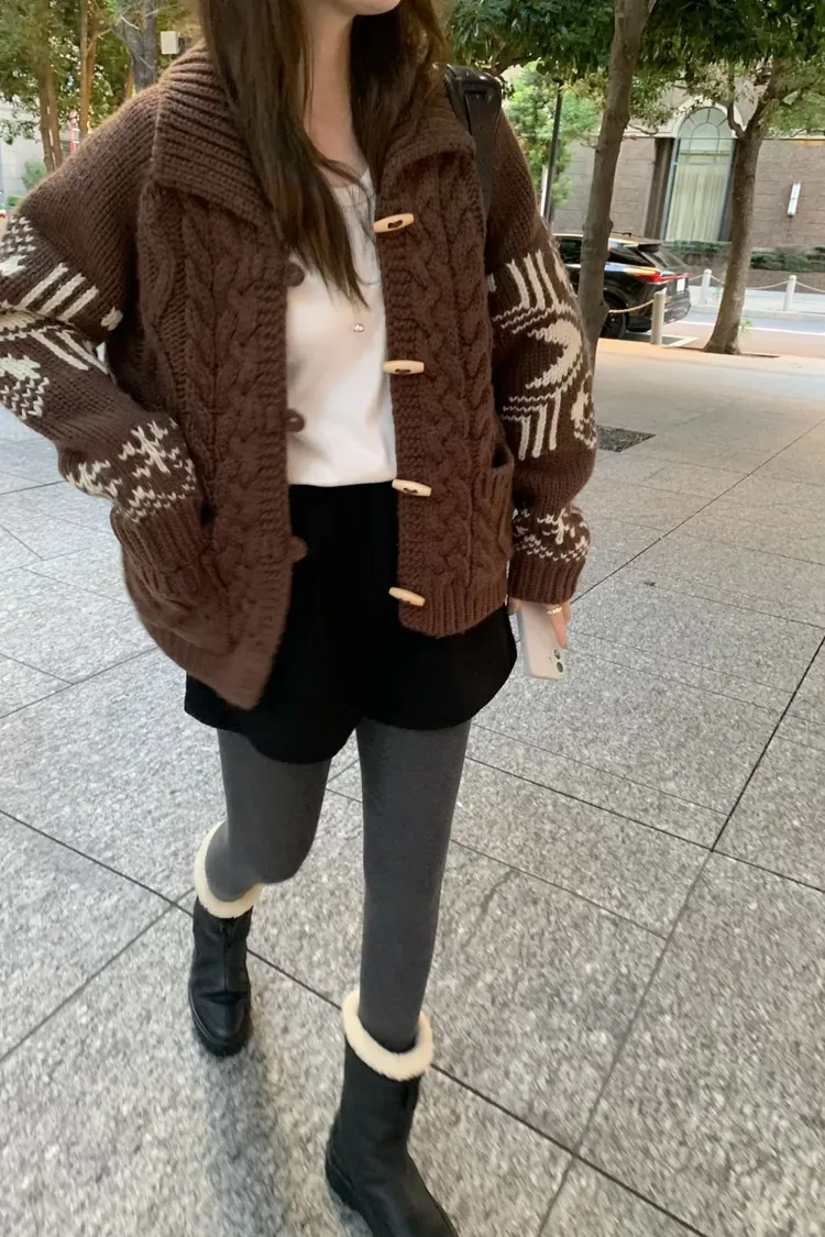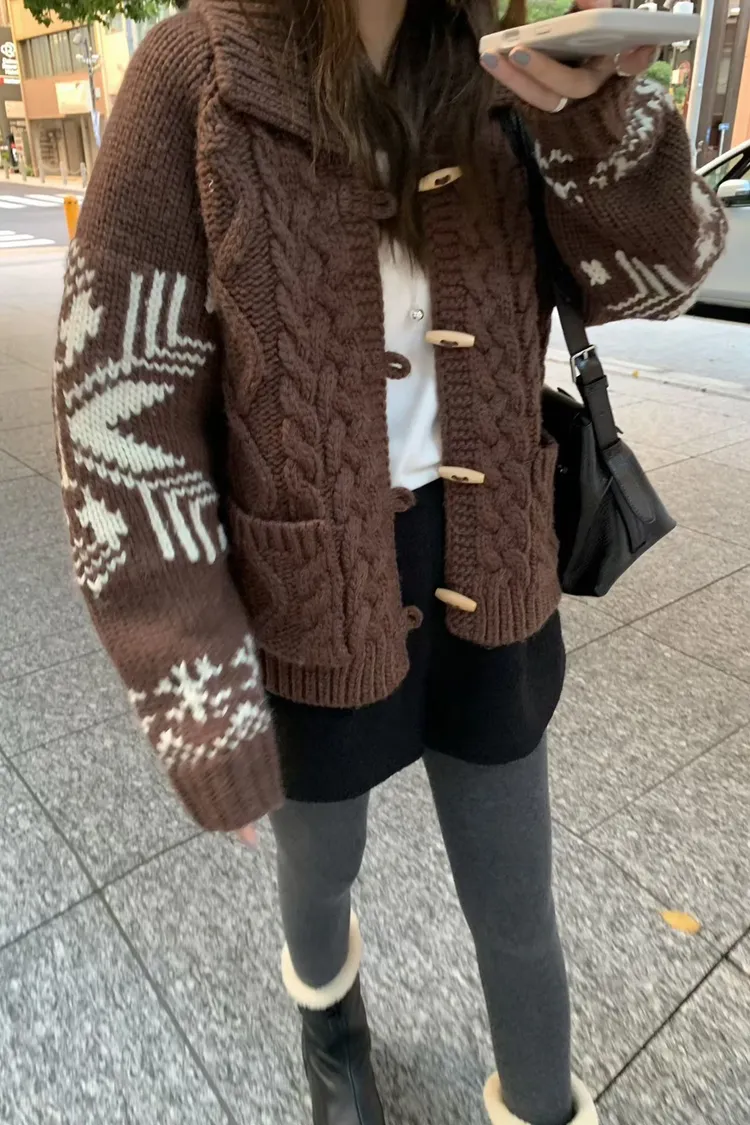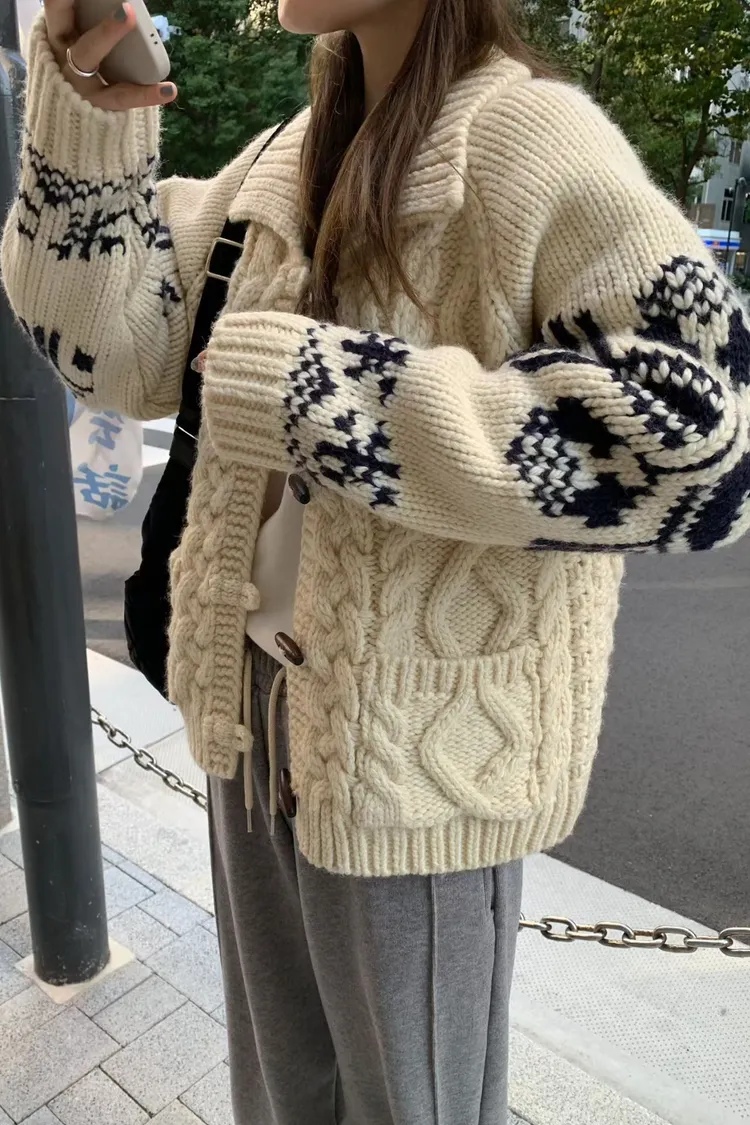 尺寸 胸55/長57 重量 1.4kg 材質 羊毛50% 「咖啡牛奶麻花圖騰羊毛外套」 咖啡牛奶色真的太療癒🤎🤍 有口袋、麻花與圖騰交錯超精緻,厚度剛剛好又不會顯胖 穿起來是那種「很會穿但又不故意」的法式慵懶感
