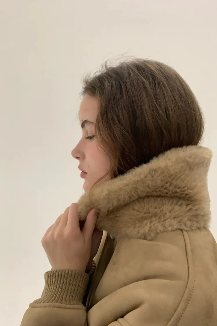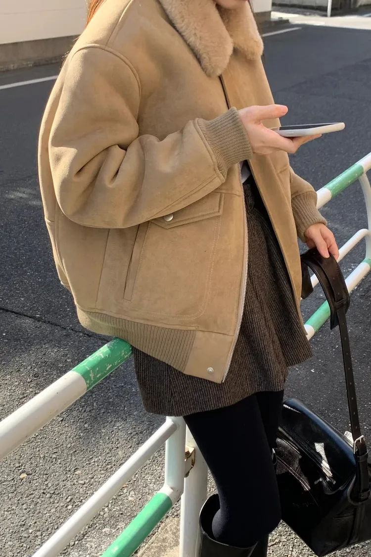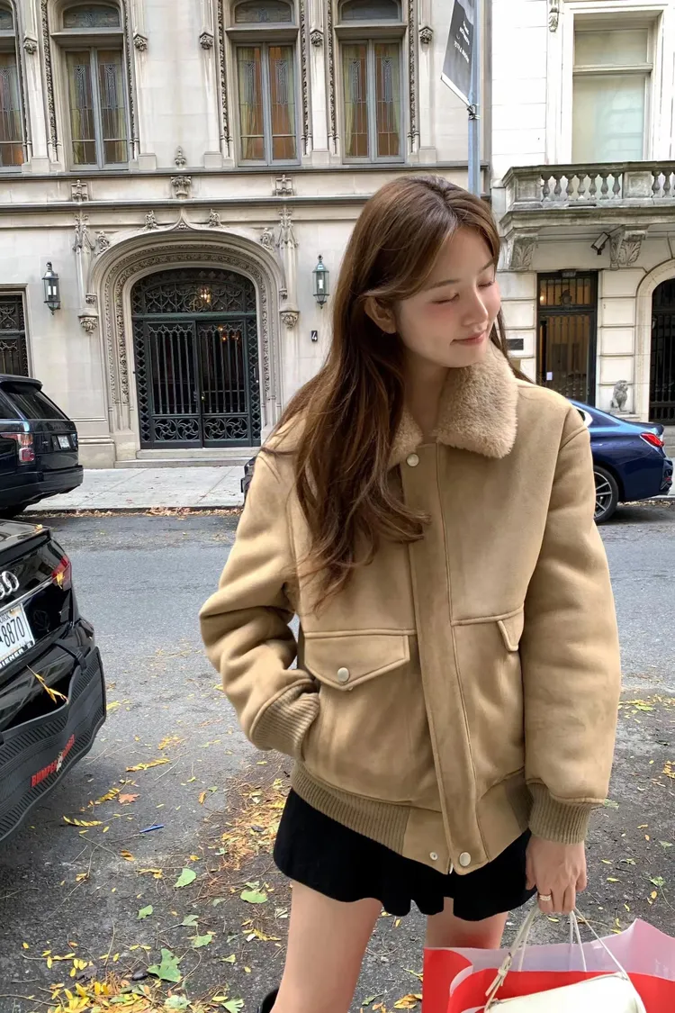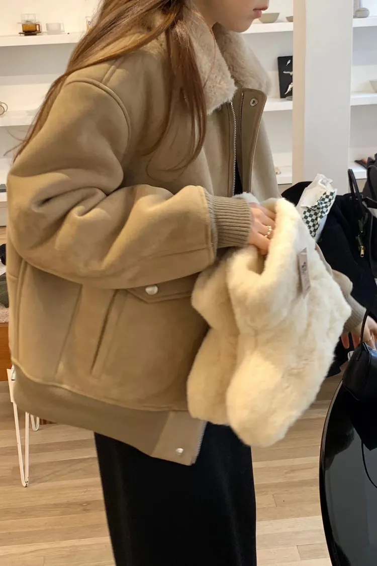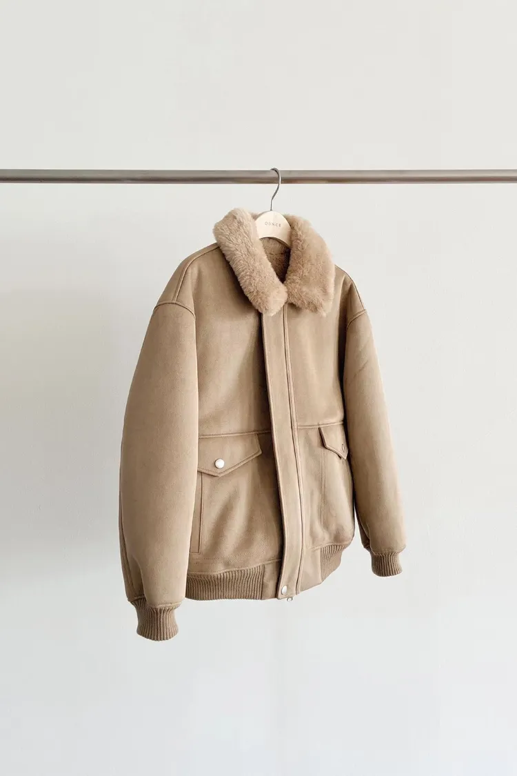 OUNCE 拉鍊翻領暖暖泰迪熊外套