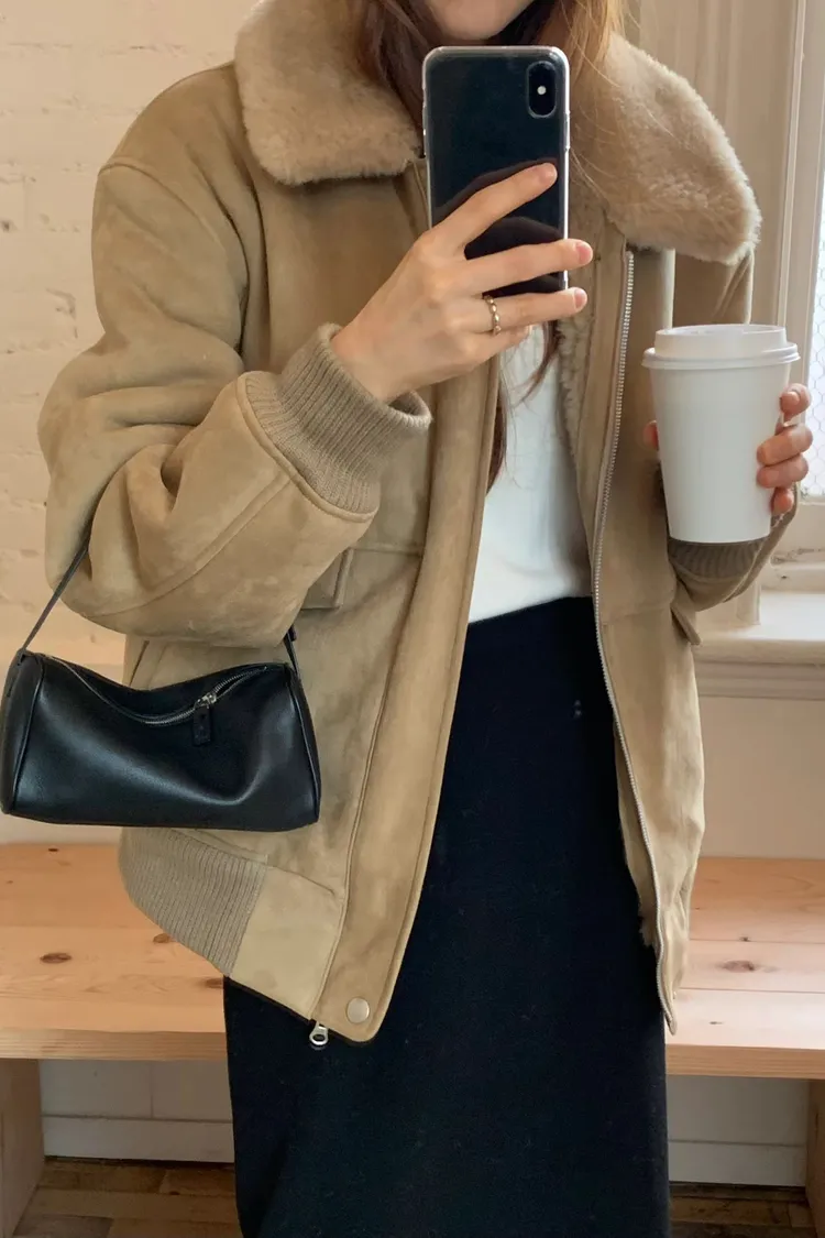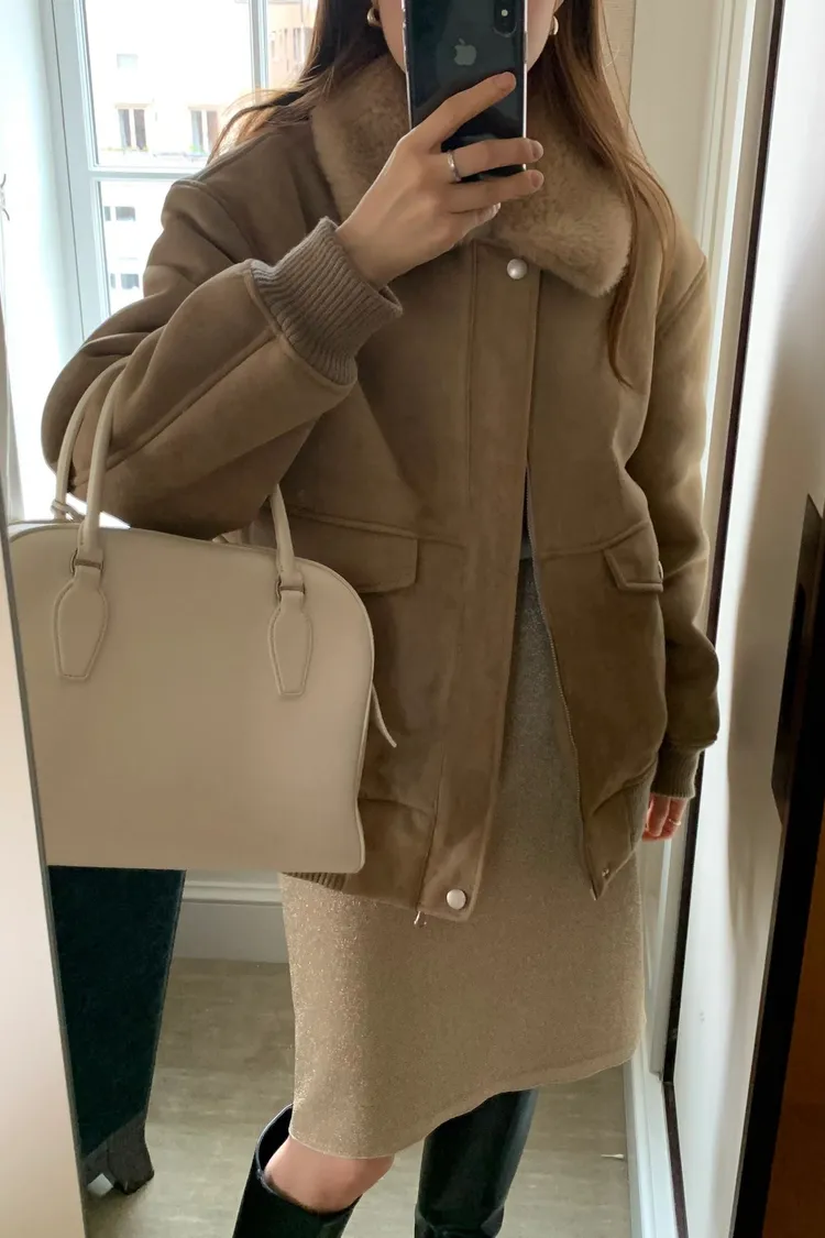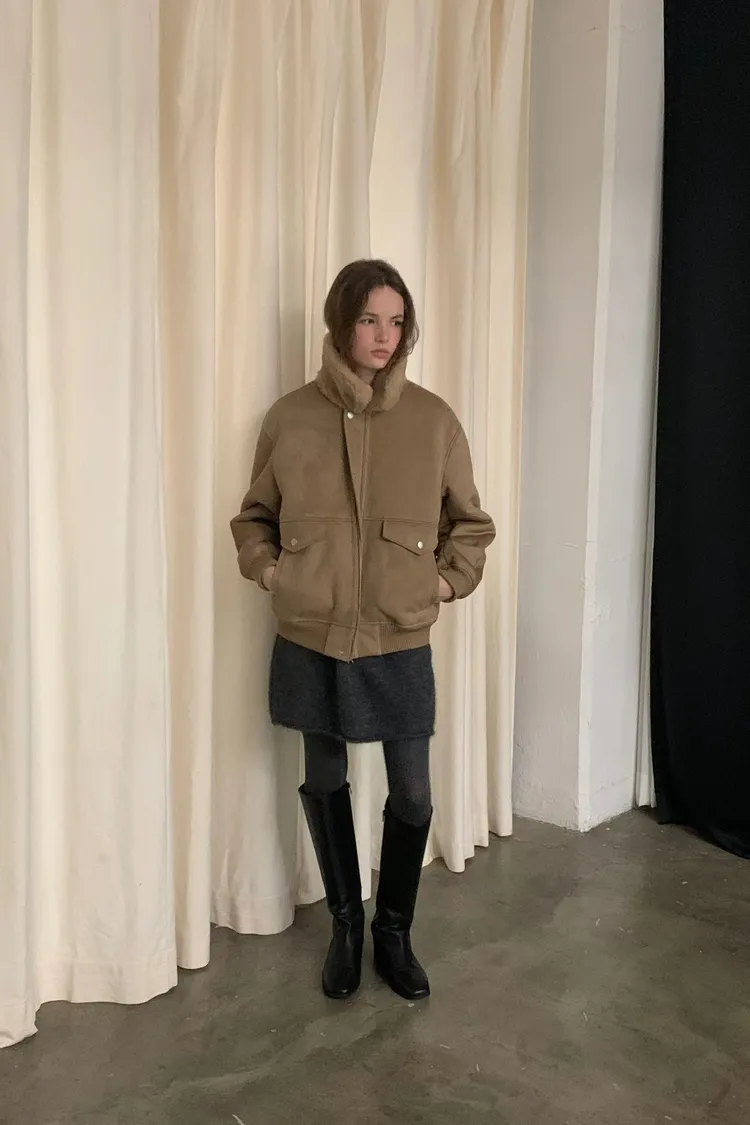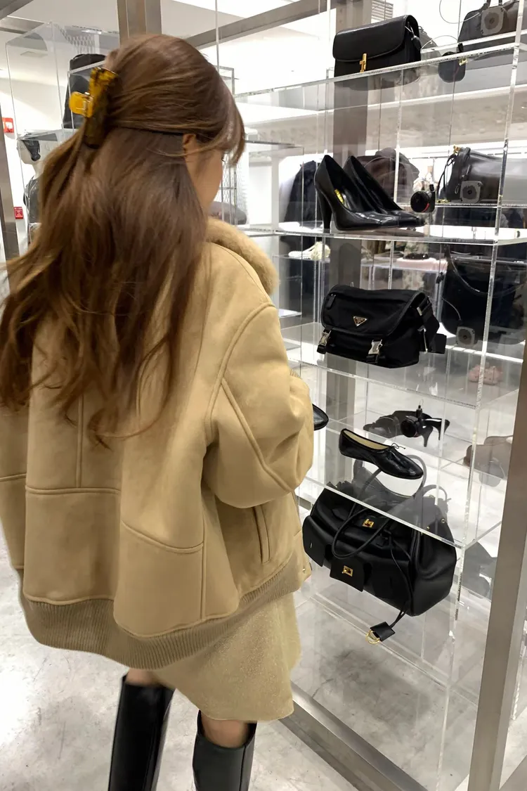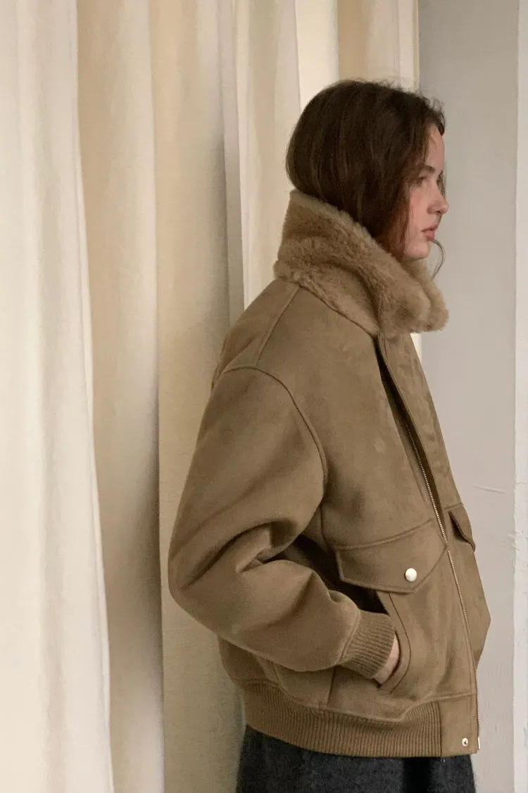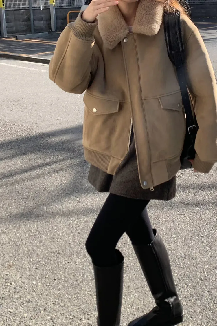 OUNCE 拉鍊翻領暖暖泰迪熊外套