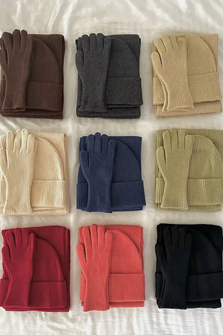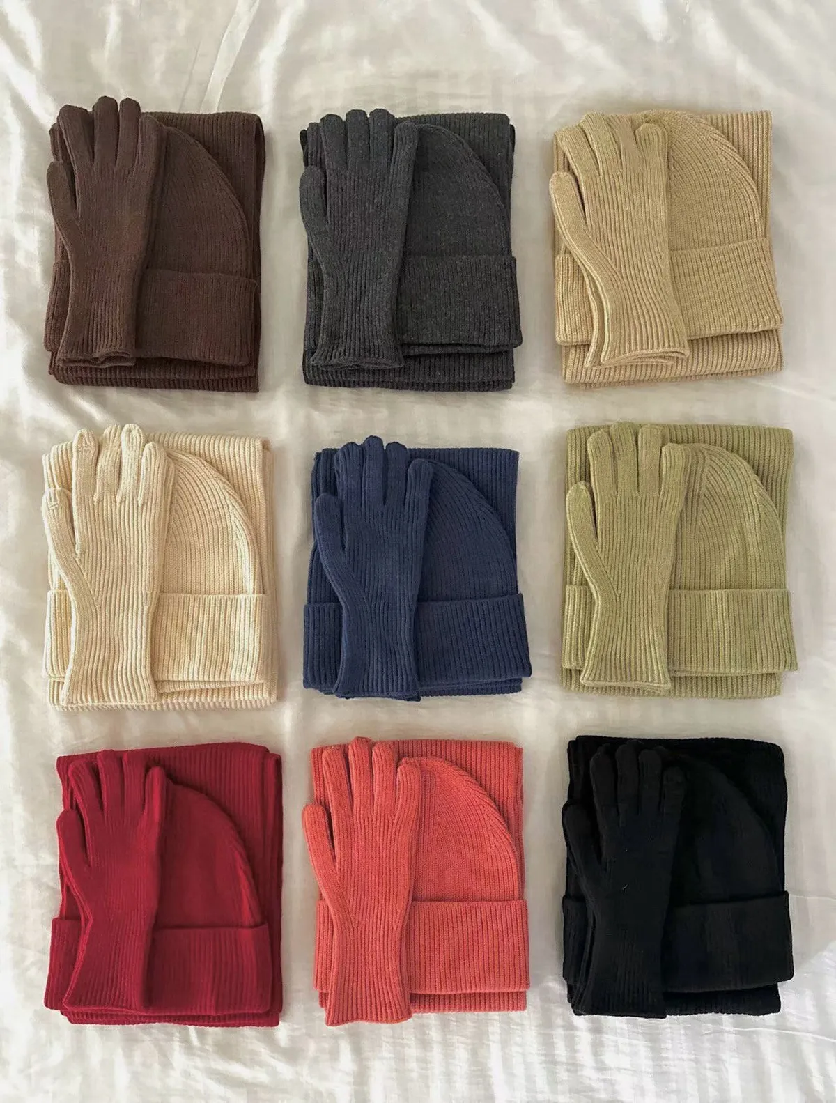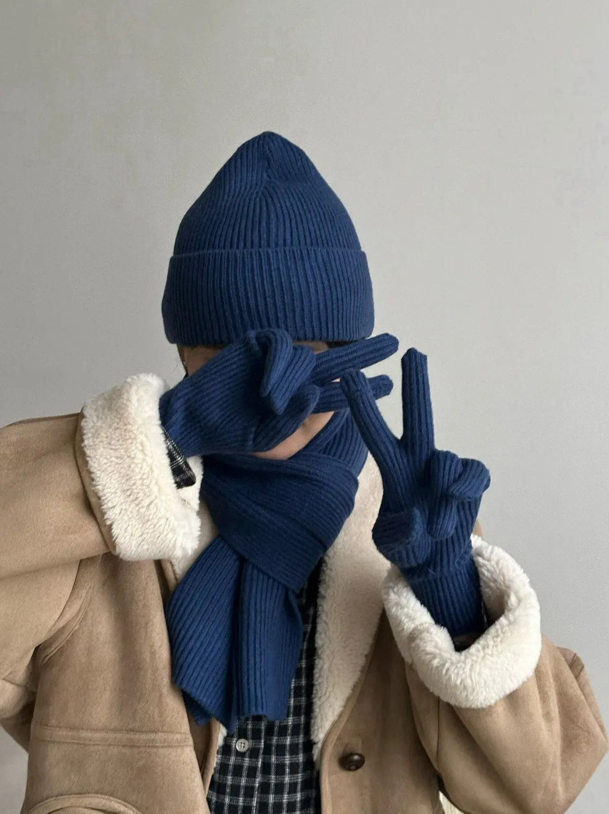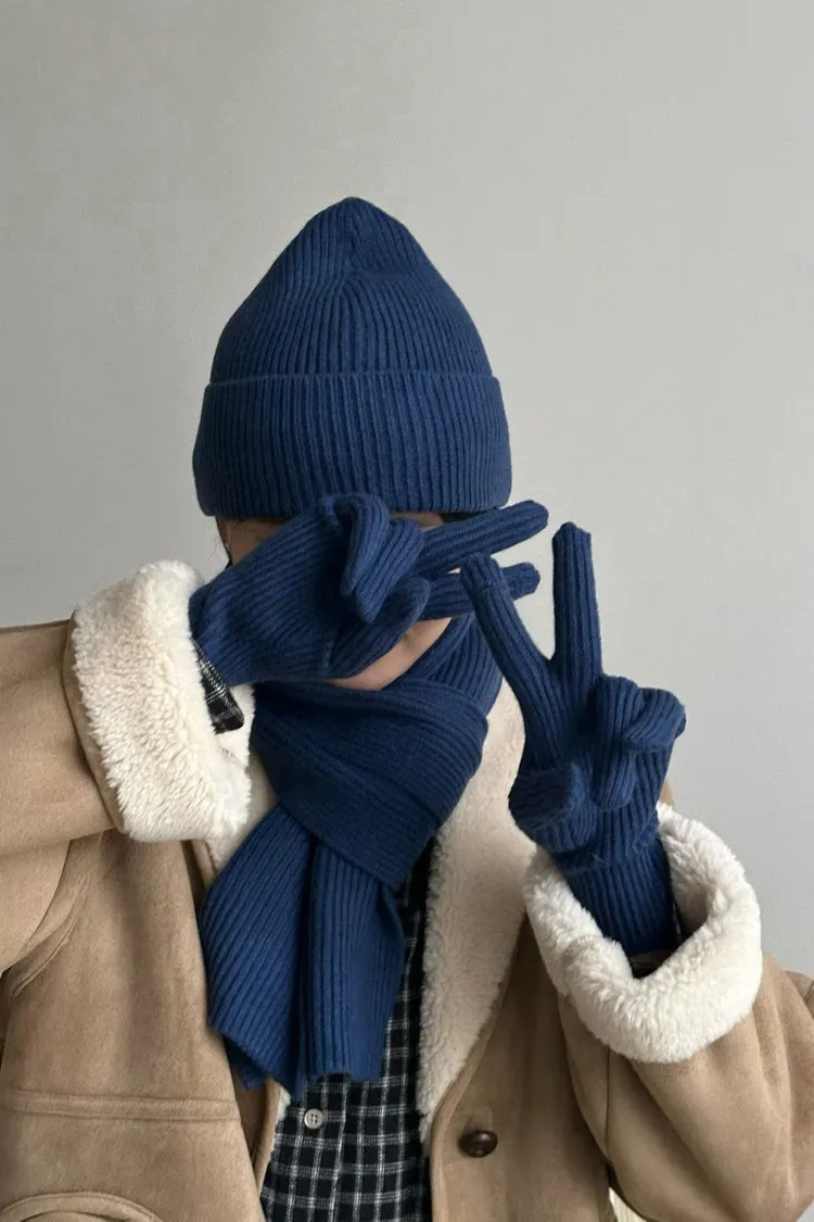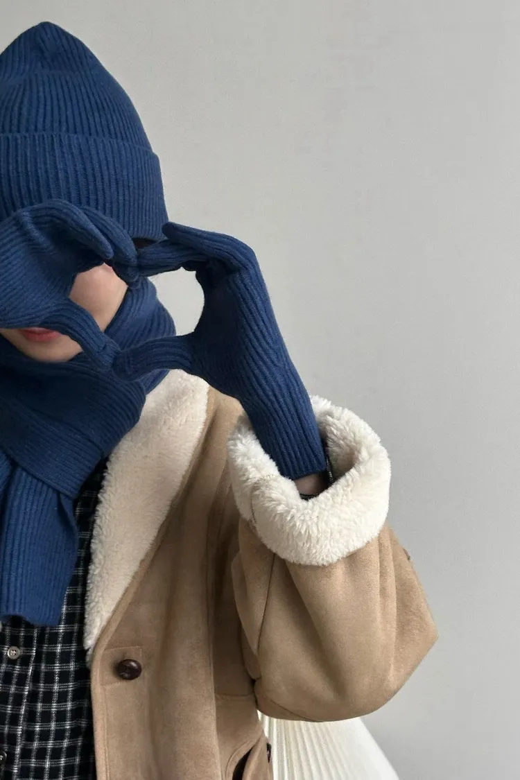 毛帽+圍巾+手套一次搞定,保暖又成套超好看