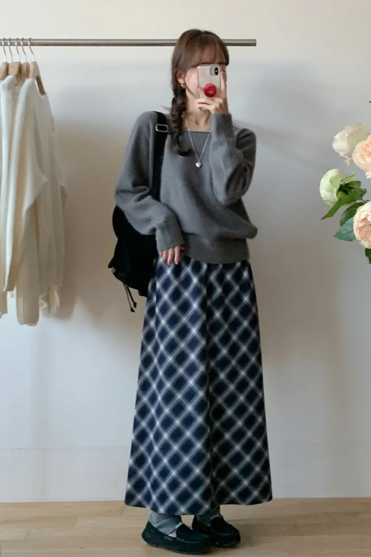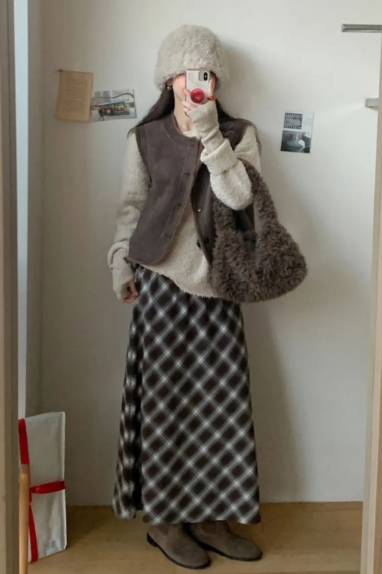 氣質款時髦菱格紋長裙