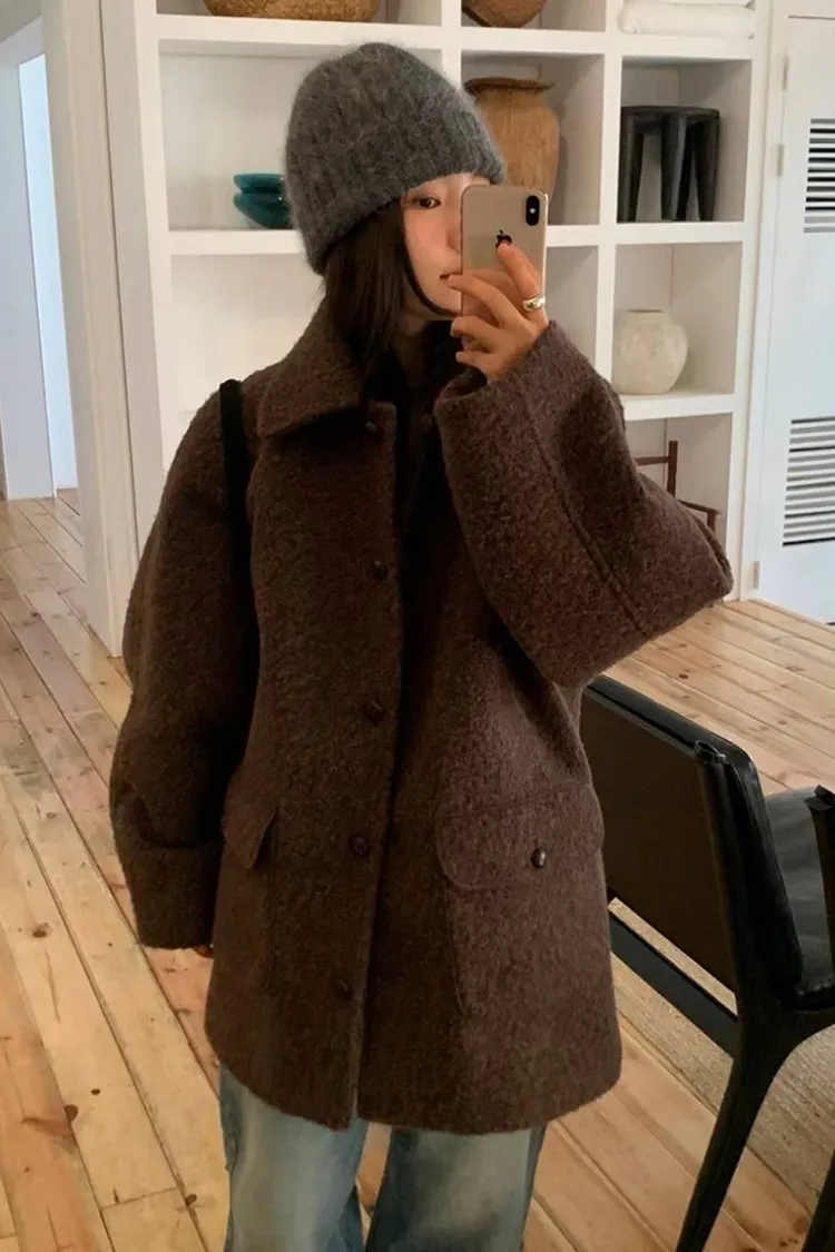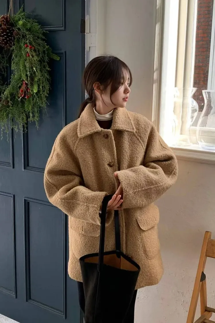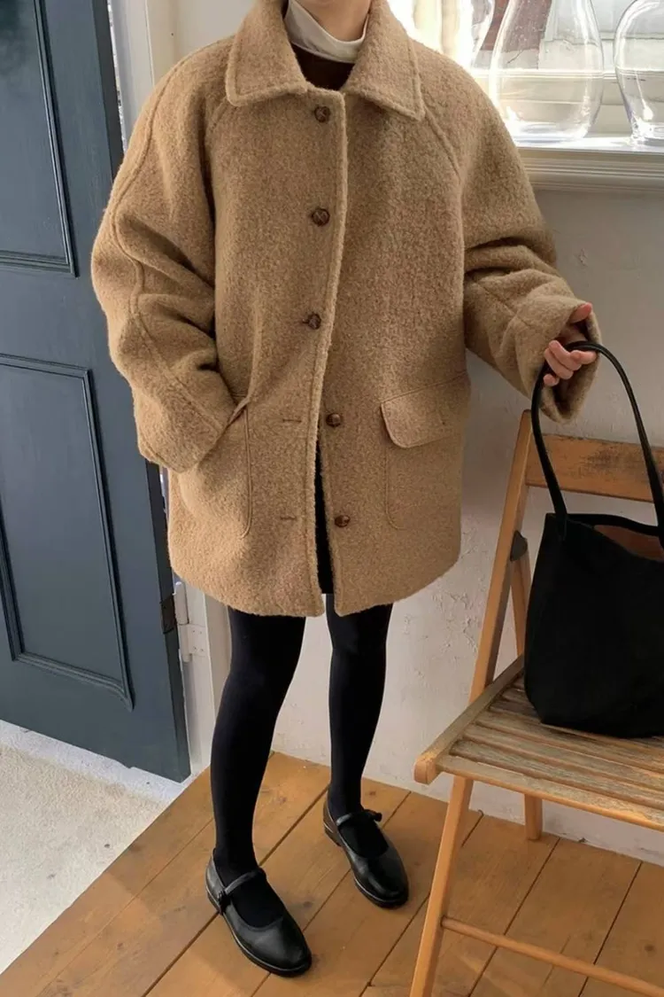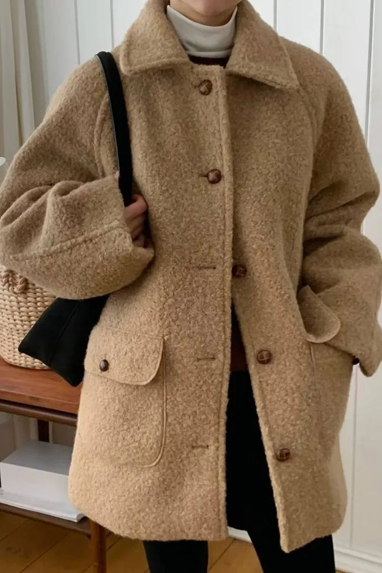 奶油沙灘中長版羊毛大衣
