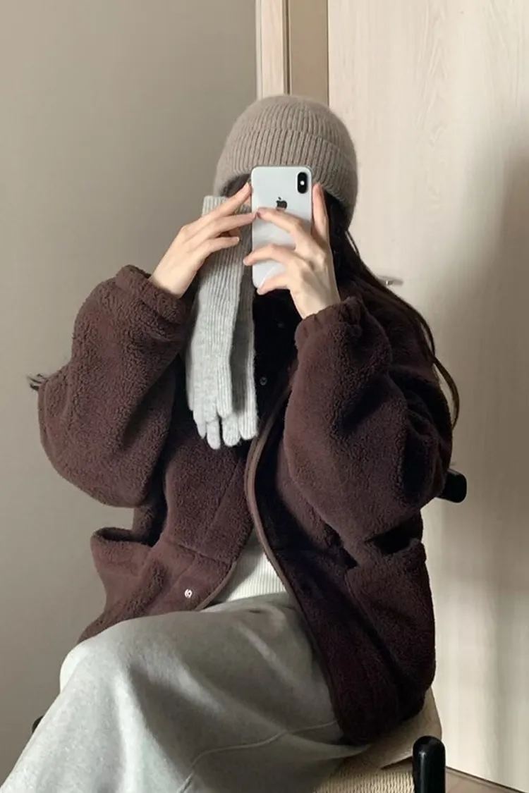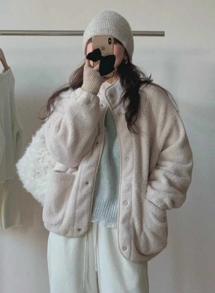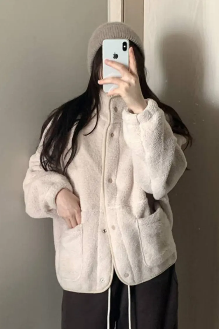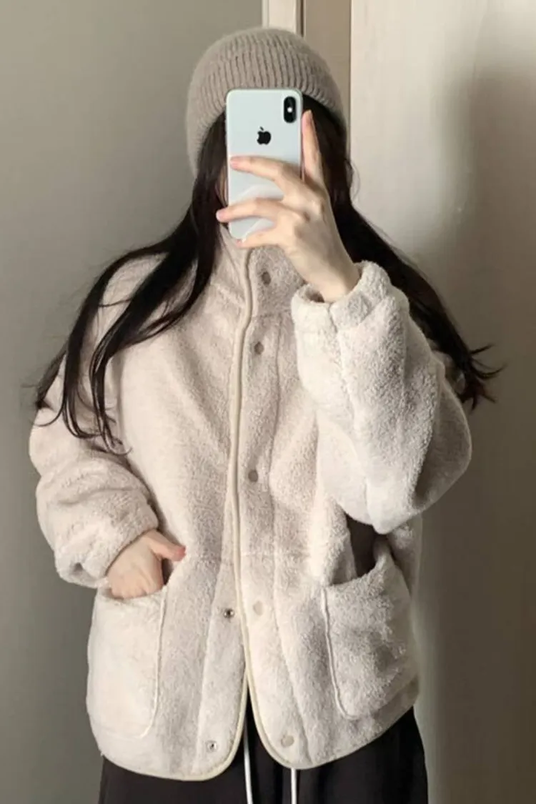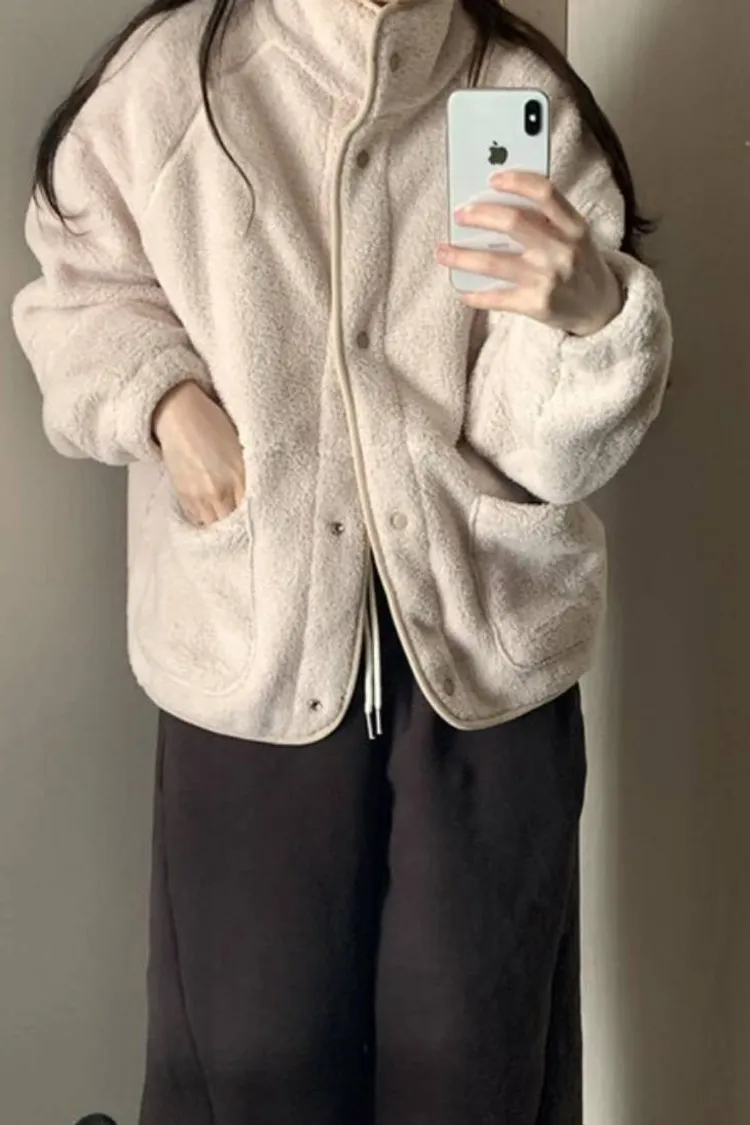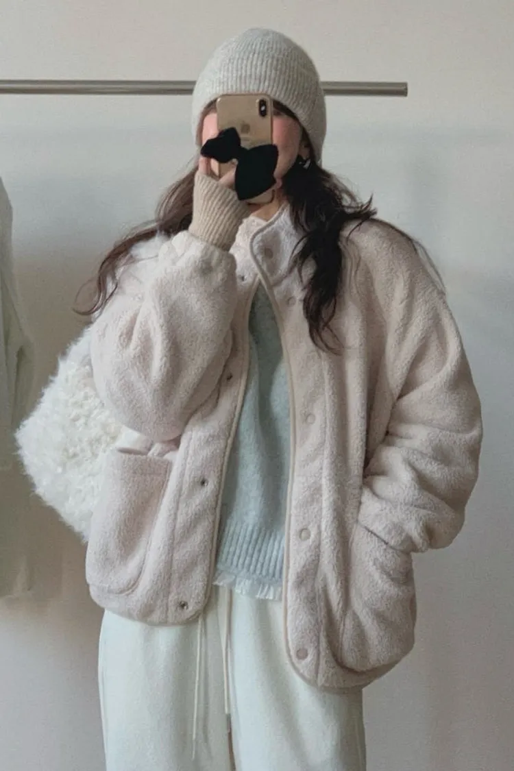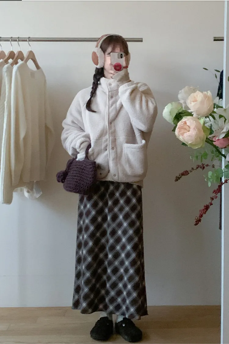 日系感毛絨暖中長版外套