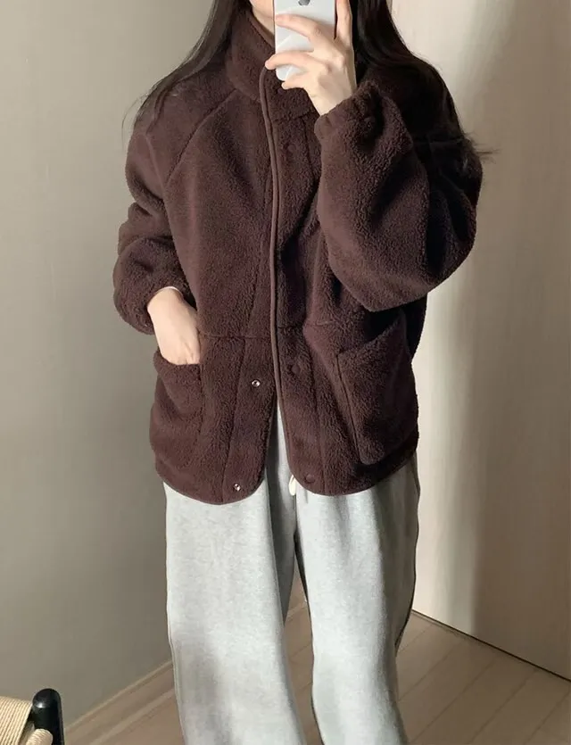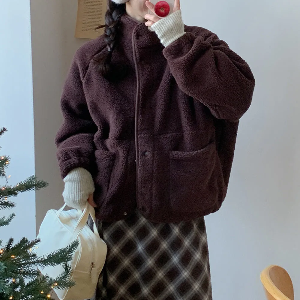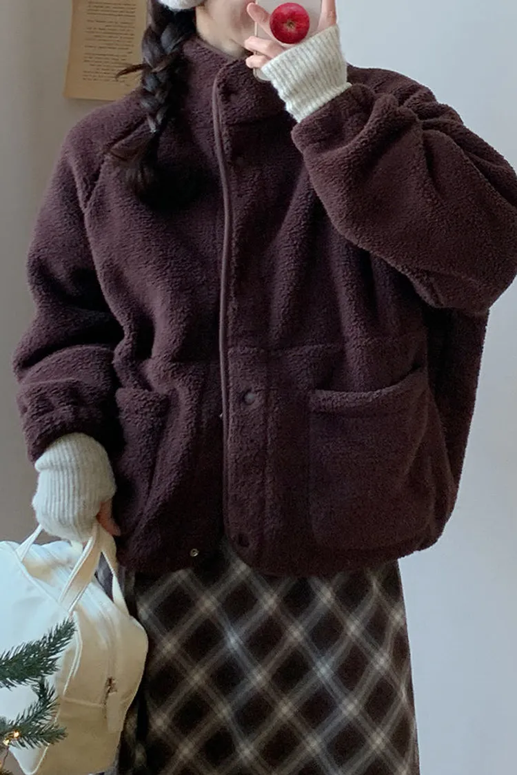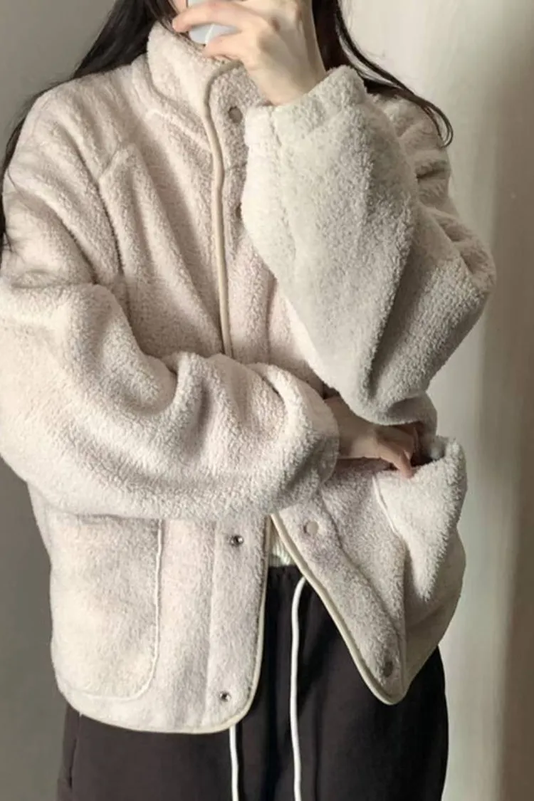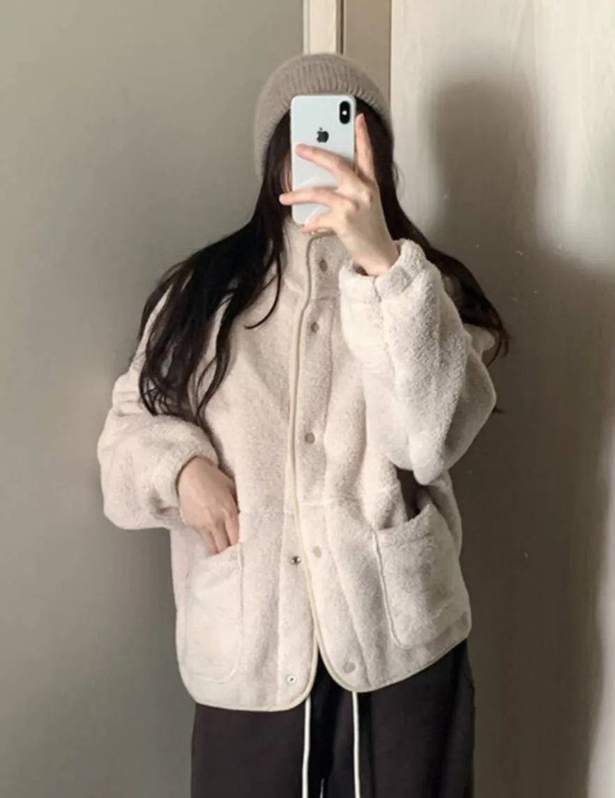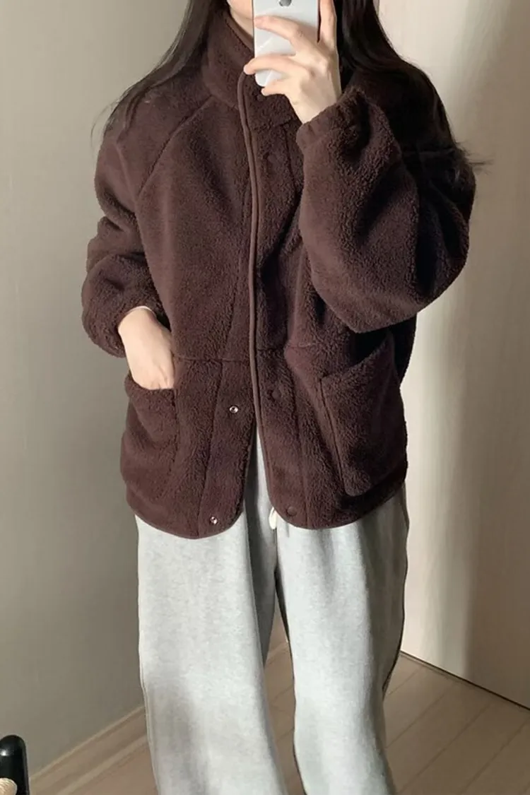 日系感毛絨暖中長版外套