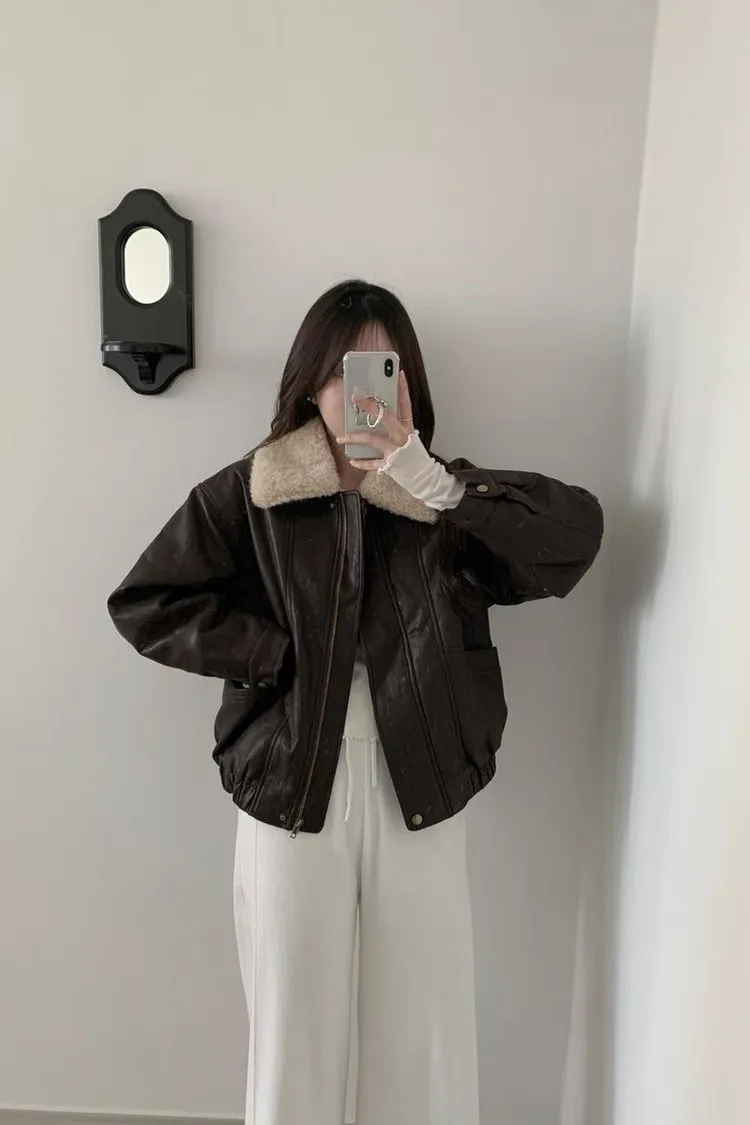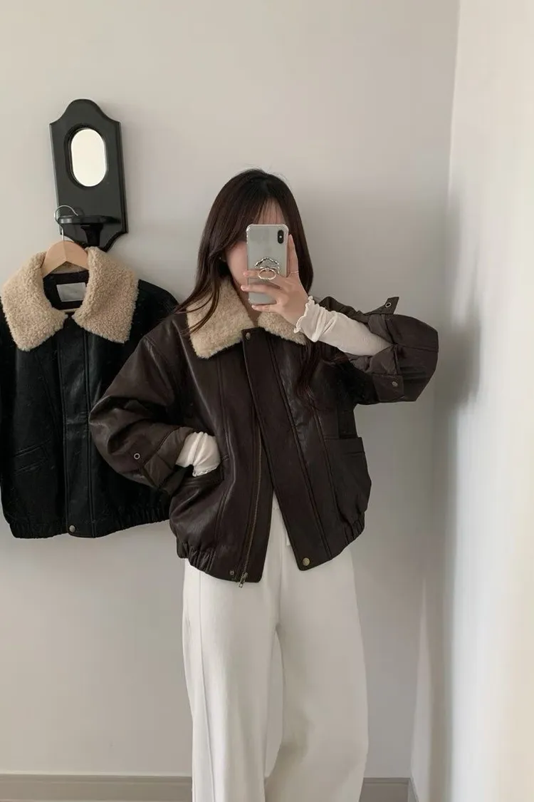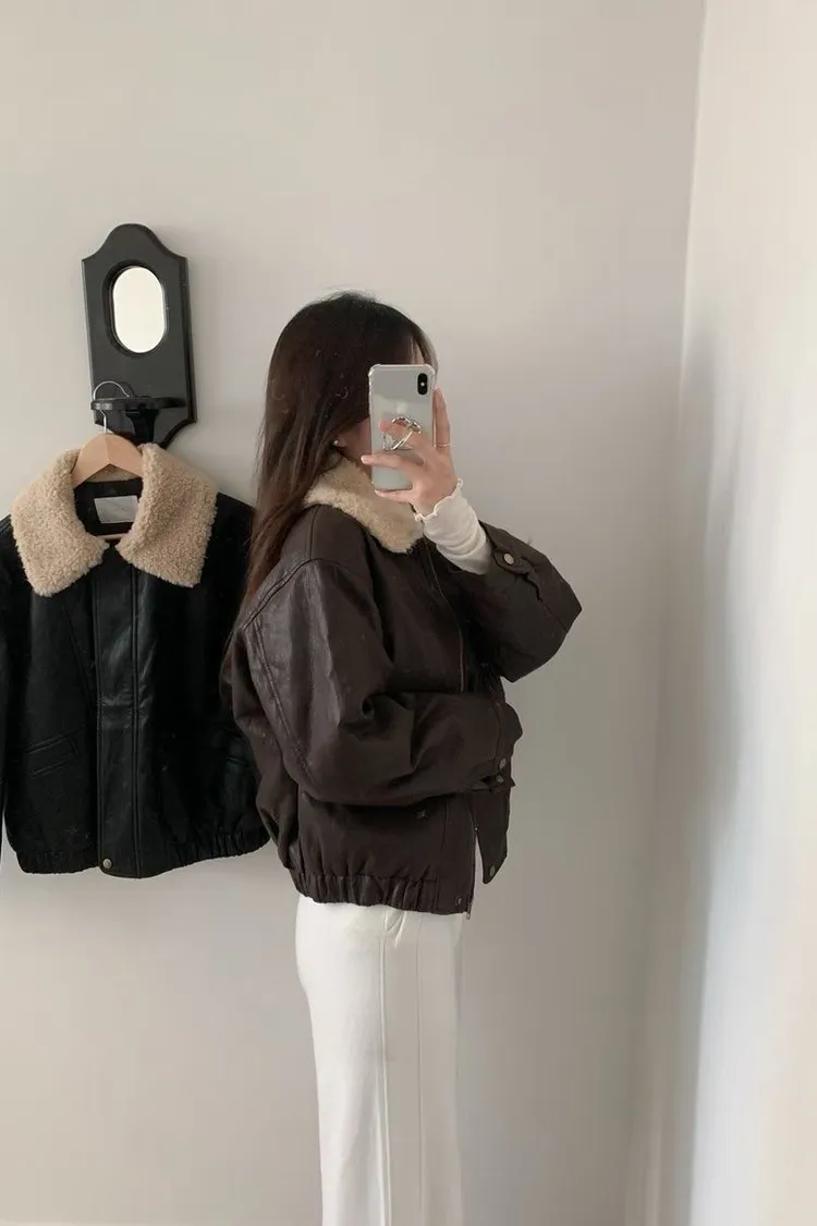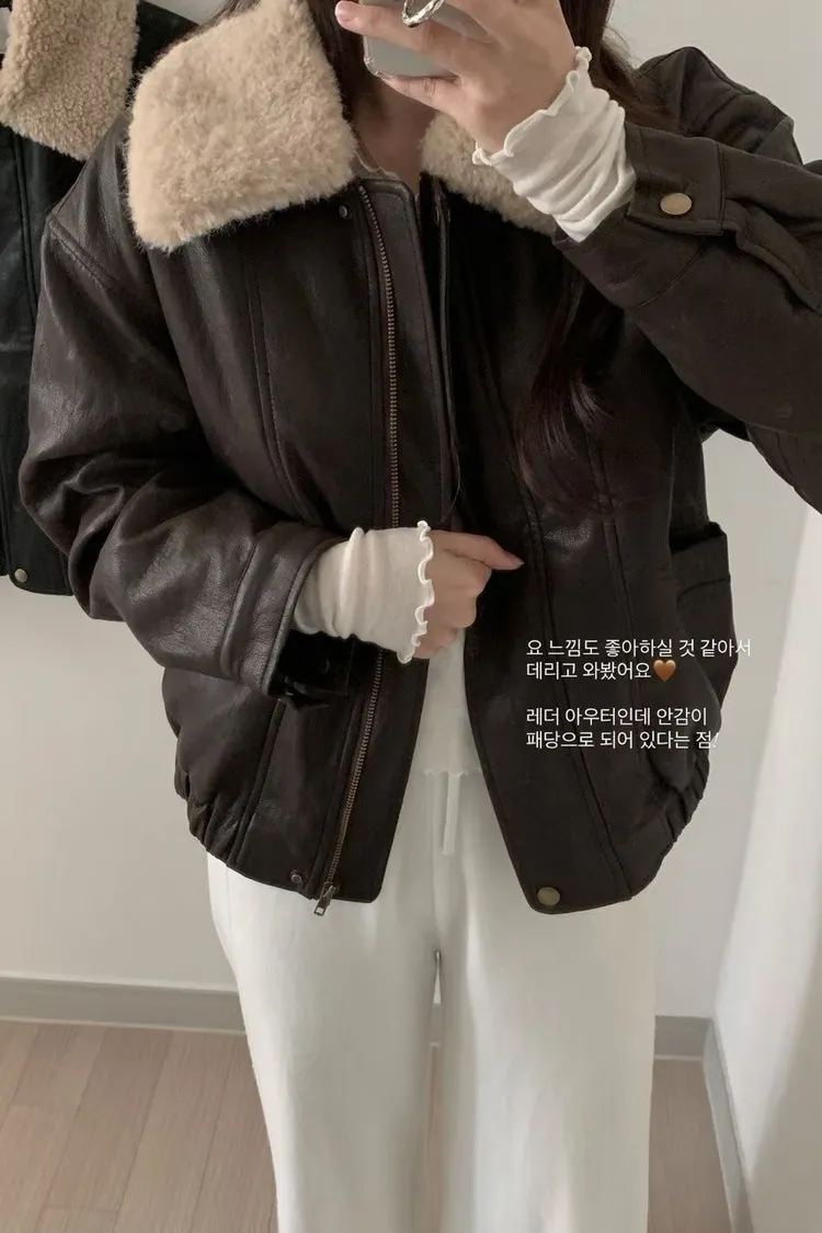 皮質挺度超好、拉鍊細節很俐落,穿起來時髦又保暖