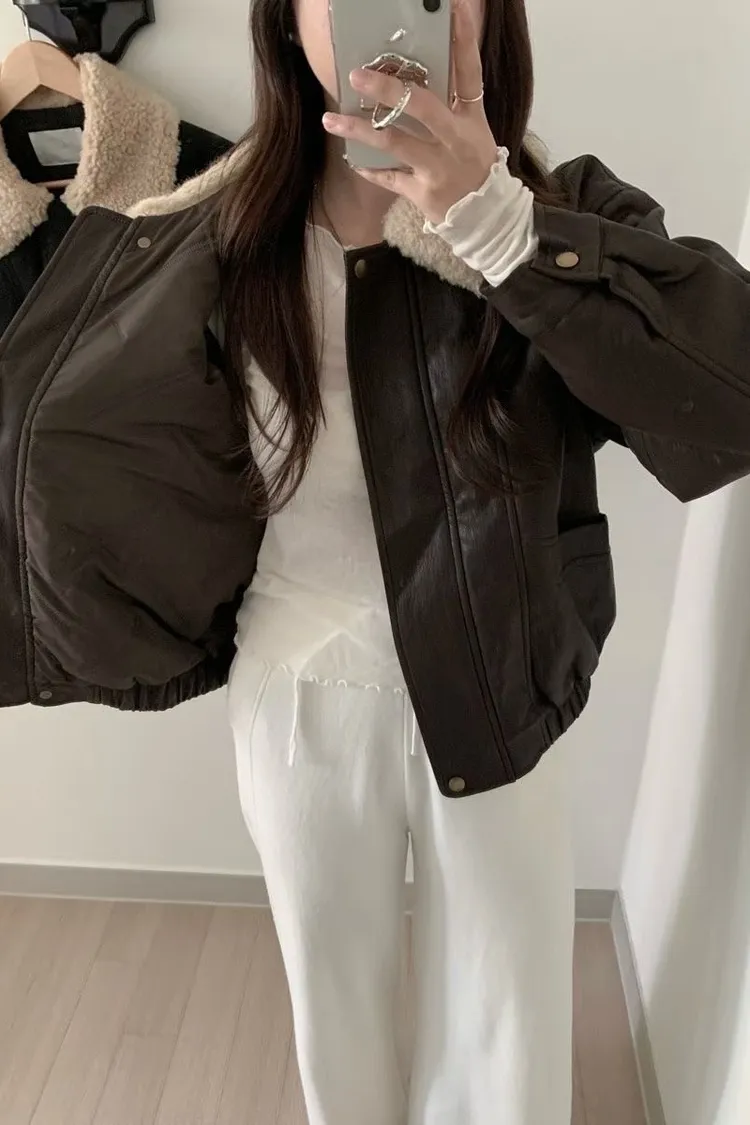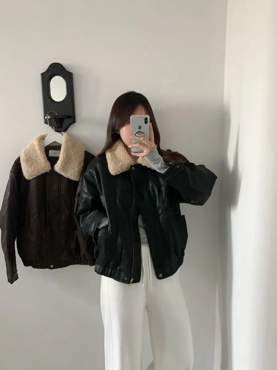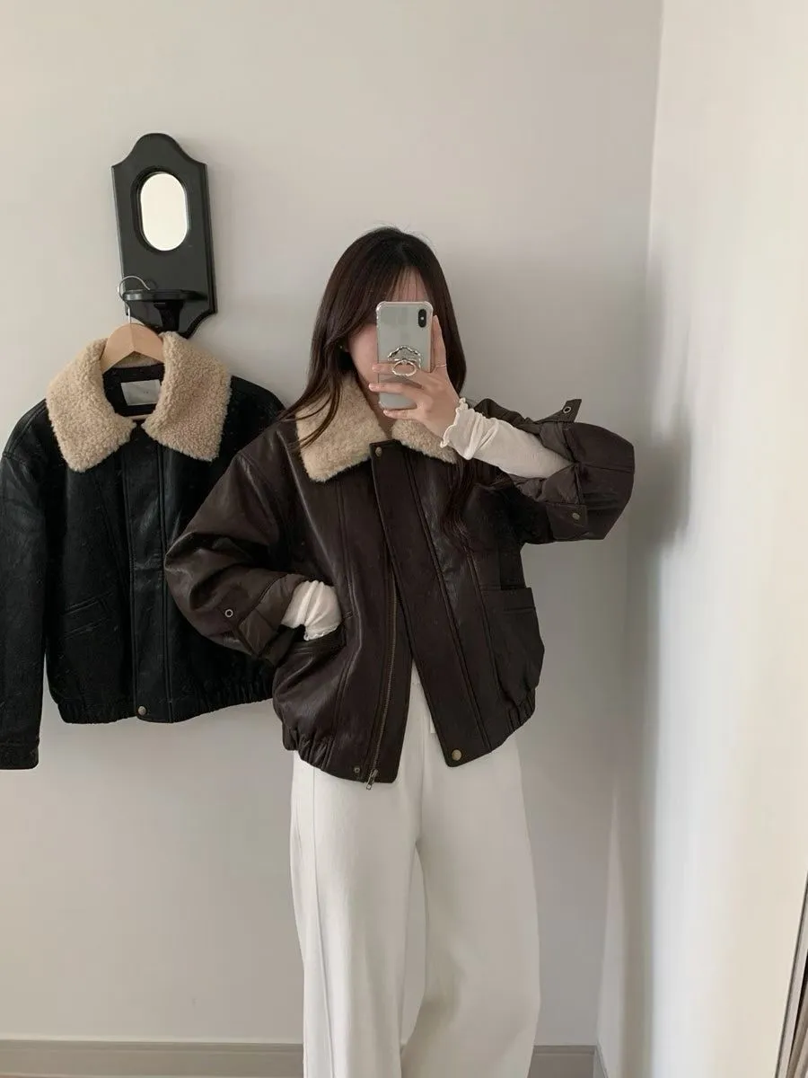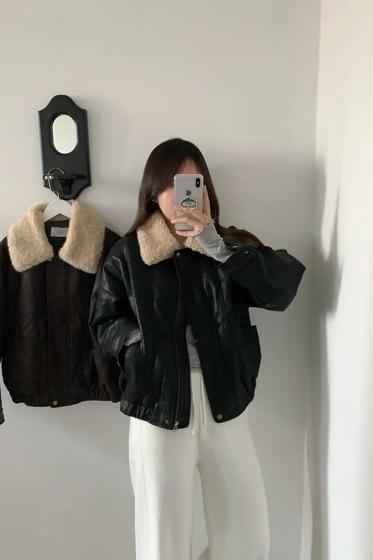 皮質挺度超好、拉鍊細節很俐落,穿起來時髦又保暖